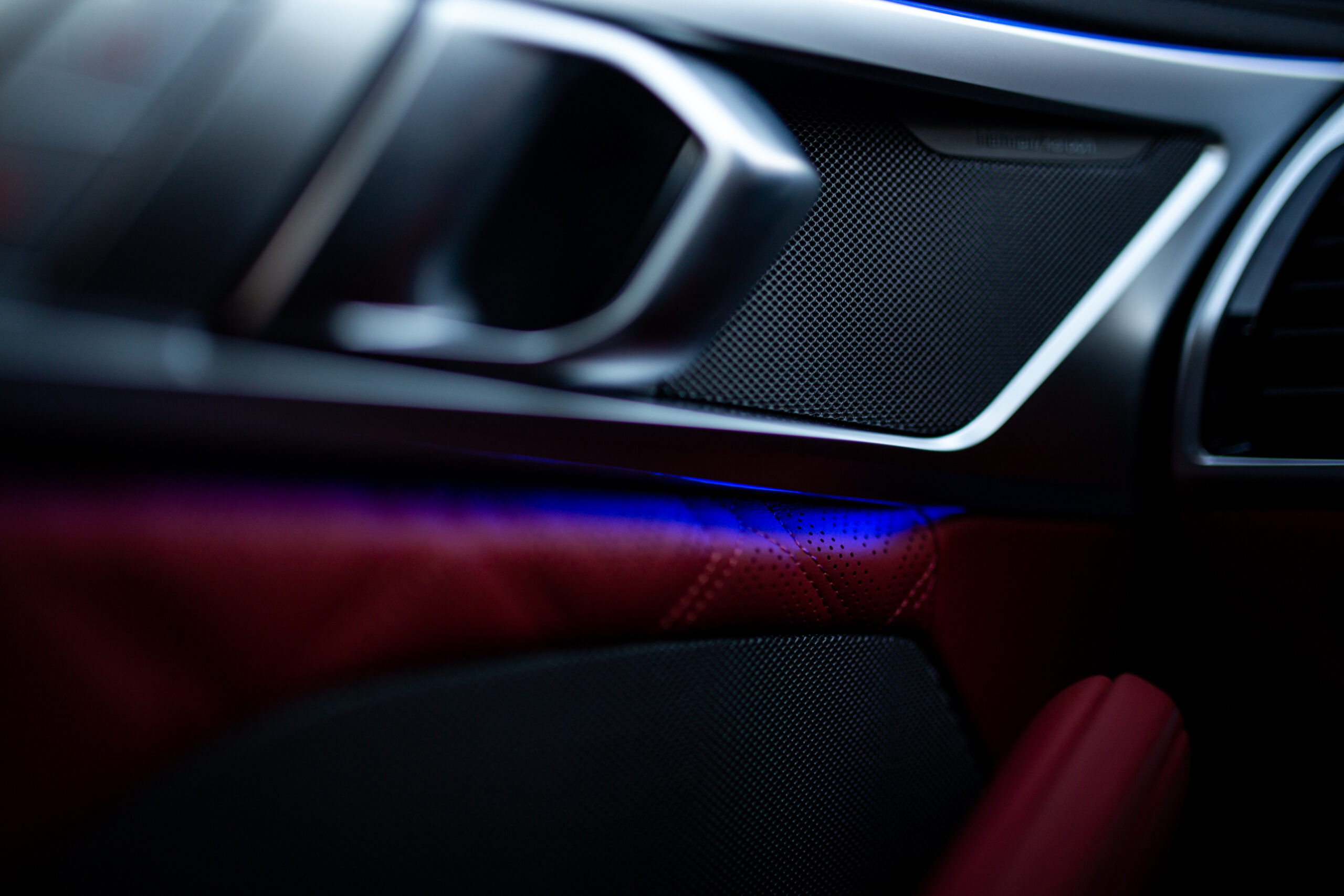 It comes with a lot of good standard gear, like the admirably good Harmon Kardon stereo, the huge and configurable head-up display, heated front seats (heated rear seats are a $350 option), four-zone climate control, wireless charging, a 12.3-inch infotainment touchscreen, 12.3-inch gauge cluster, and well-integrated wireless Apple CarPlay.
