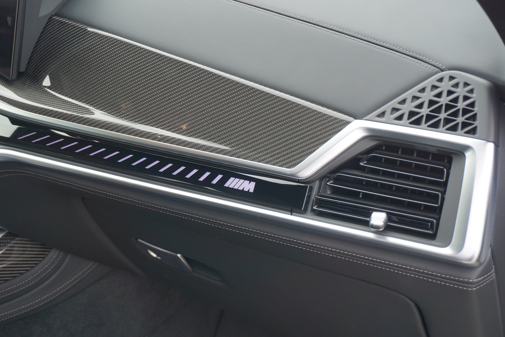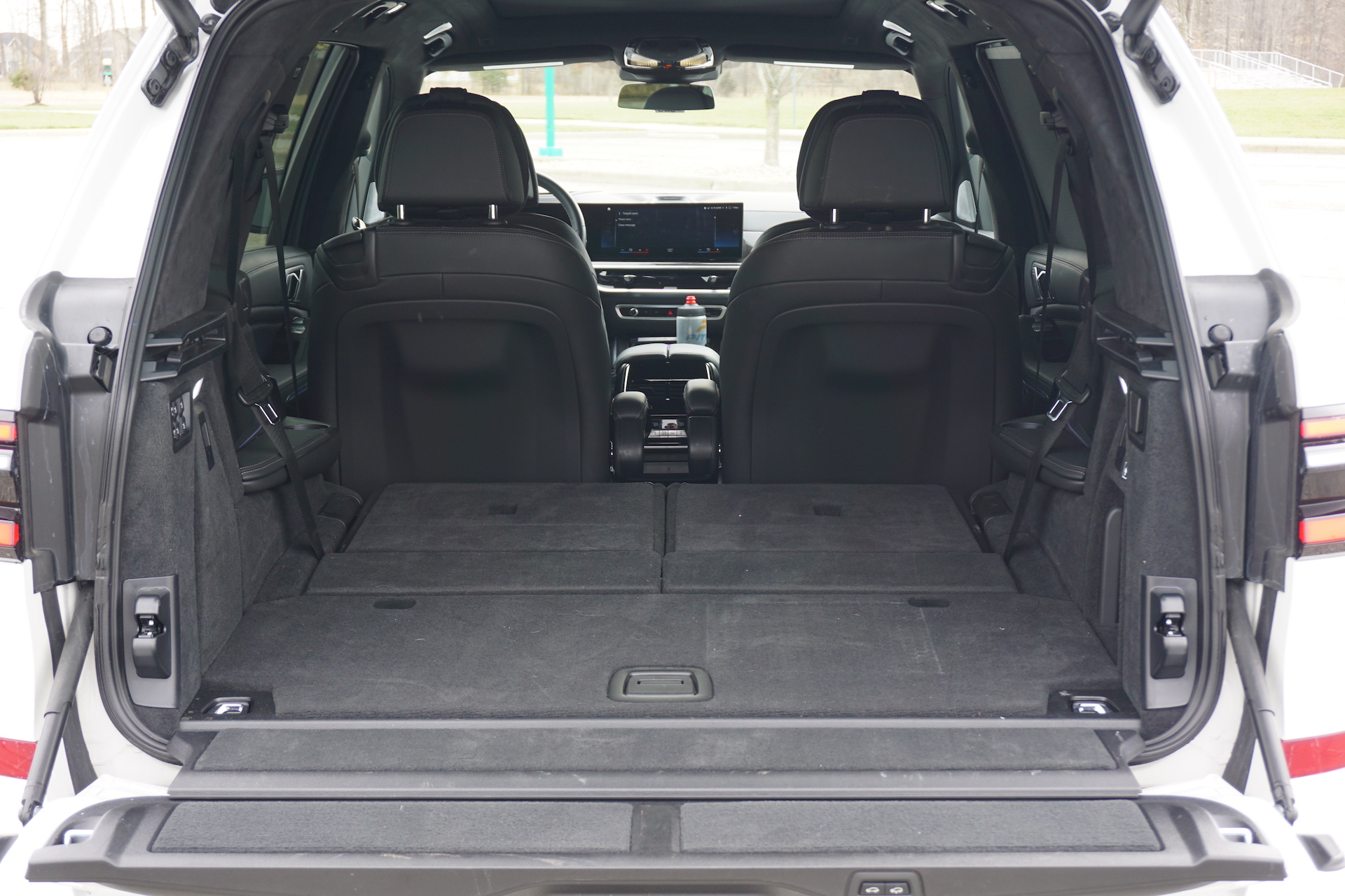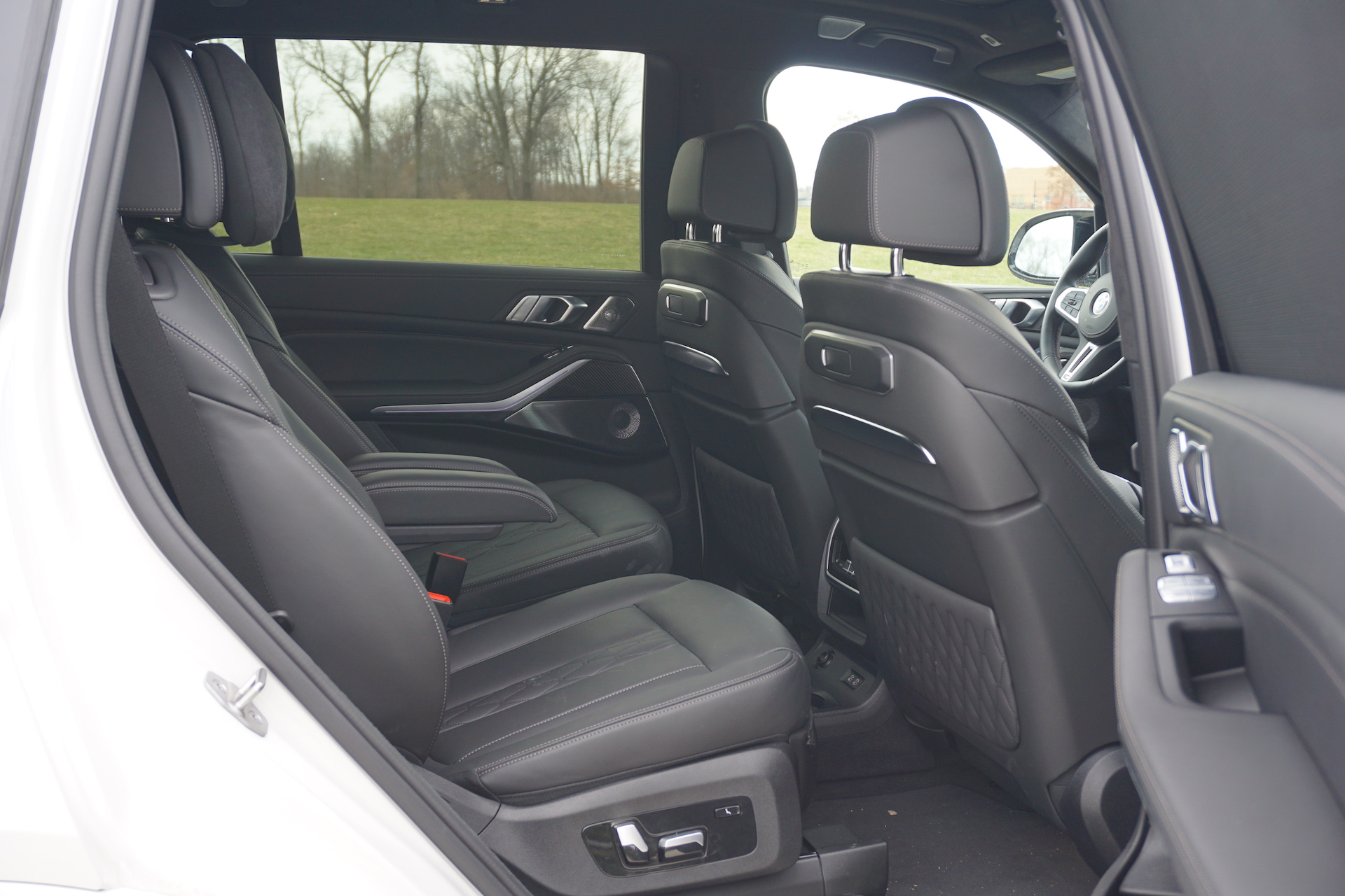 The interior follows the exterior’s design ethos. Large swaths of carbon fiber encased in aluminum surrounds the cabin, giving off a very sporty but cold vibe. As is the case with all new BMWs, there are buttons, knobs, switches, paddles, and dials everywhere. A massive curved display houses two screens, one that serves as a gauge cluster and another that functions as the infotainment screen. The former measures 12.3 inches while the latter is 14.9. Unlike some of the Mercedes cabins I’ve been in recently, I noticed that if it’s not carbon fiber, metal, or a screen, then it’s black leather. I found very little use of plastics throughout, making the space feel first-class. If you want to spend your carpooling hours in a cabin reminiscent of a luxury sports car, the X7 is your ticket. The second-row seats featured powered adjustments while both the second and third rows enjoyed their own climate zones, power outlets, and cupholders.
