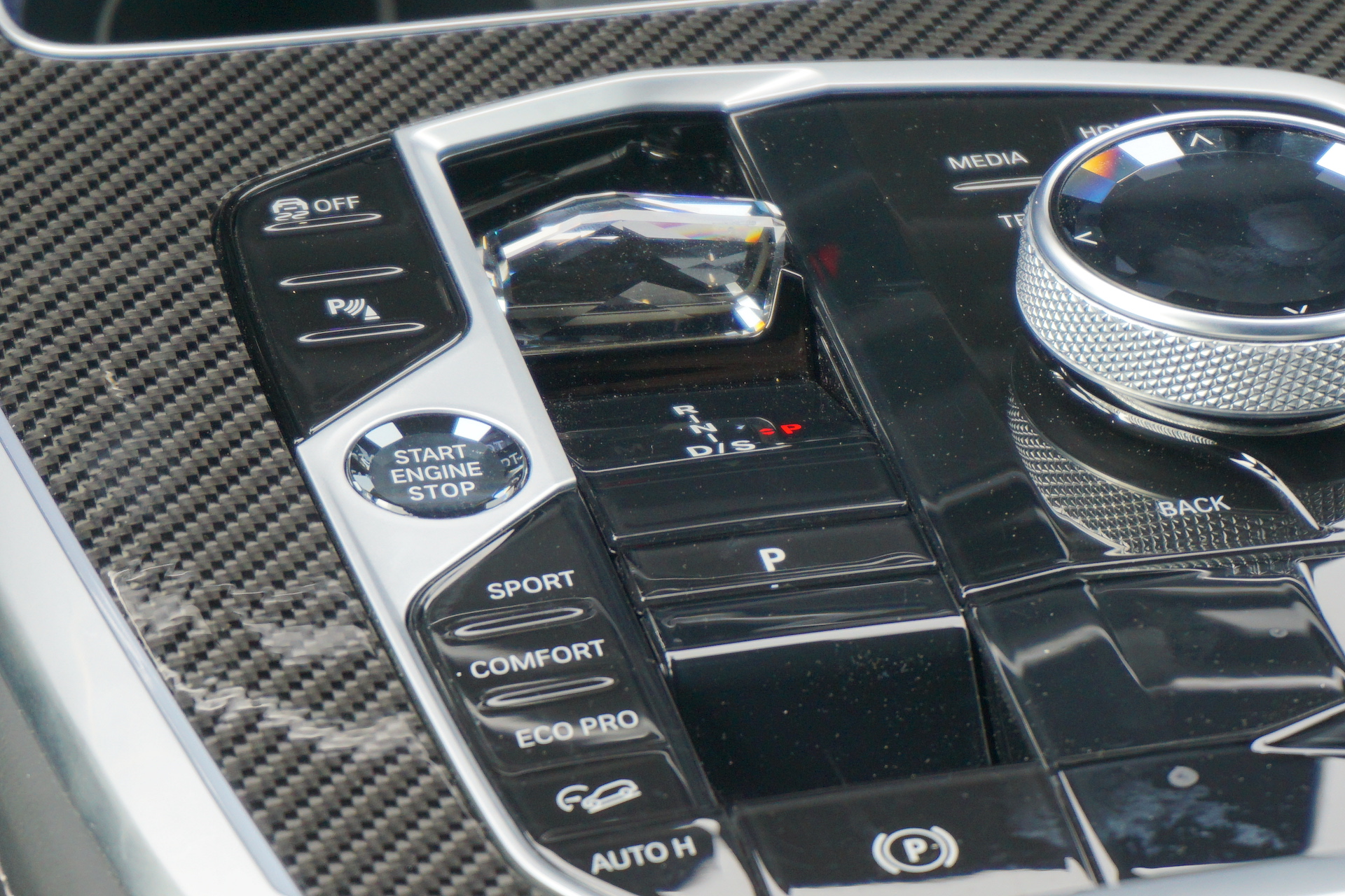 My tester’s starting price was $104,095 but packed nearly $13,000 in optional equipment, bringing the total to $117,045. This included the $2,700 Black Full Merino Leather, $1,700 Active Driving Assistant Pro, heated/cooled cupholders, glass shifter, and front massaging seats as part of the $1,700 Executive Package, $300 M Sport Professional Package, heated front and rear seats and five-zone climate control of the $1,600 Climate Comfort Package, $300 carbon fiber seat trim, $850 rear captain’s chairs, and the $3,400 upgraded sound system.