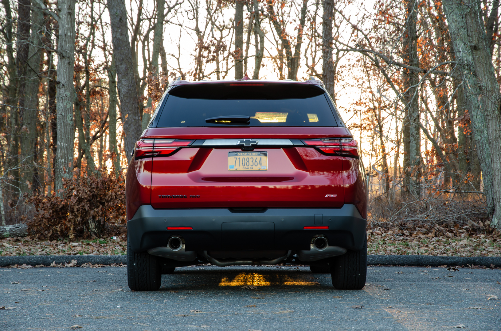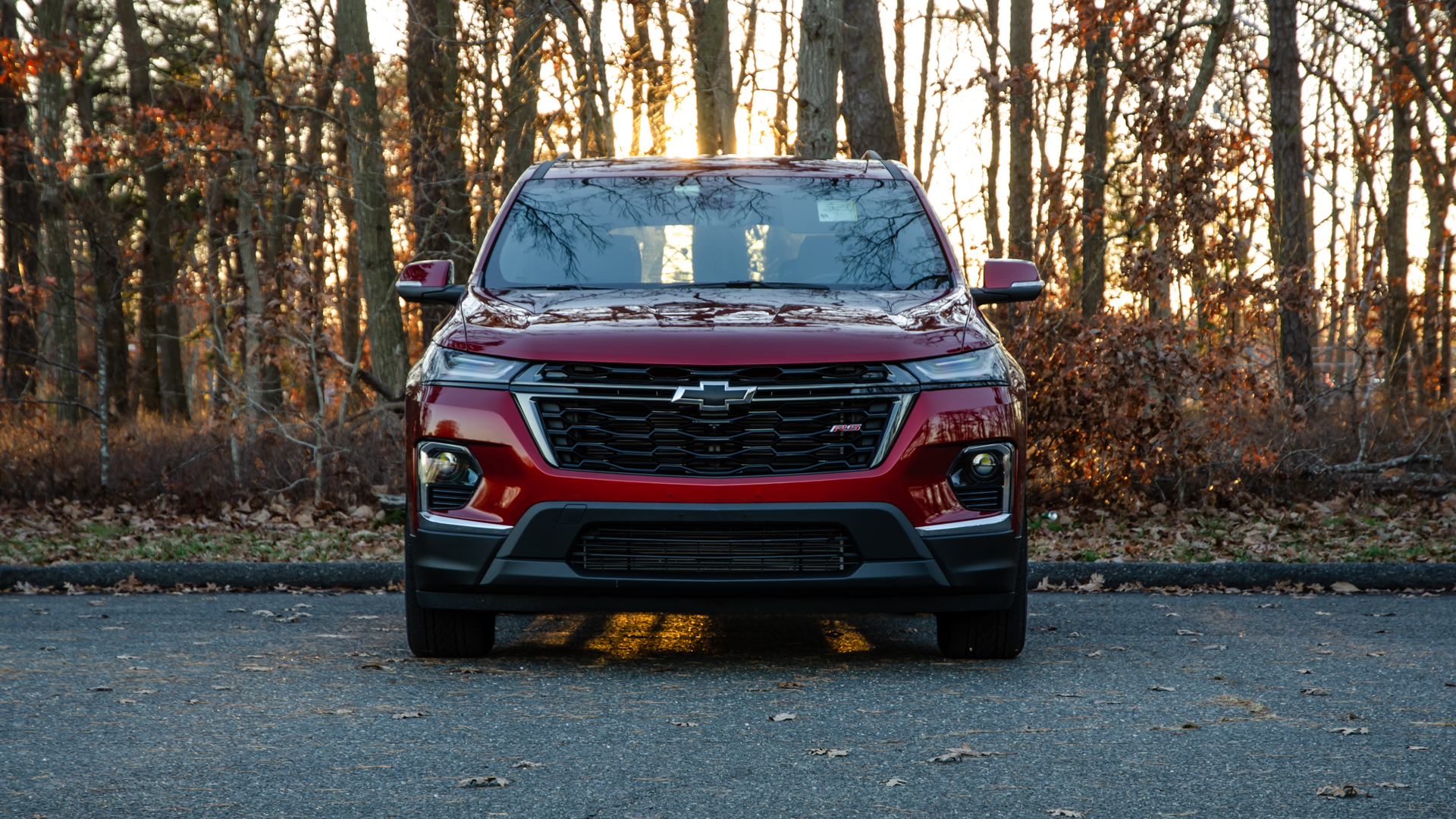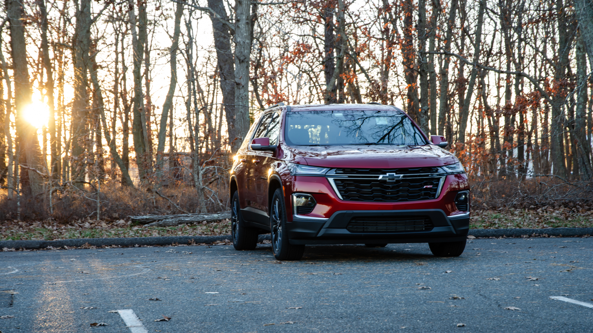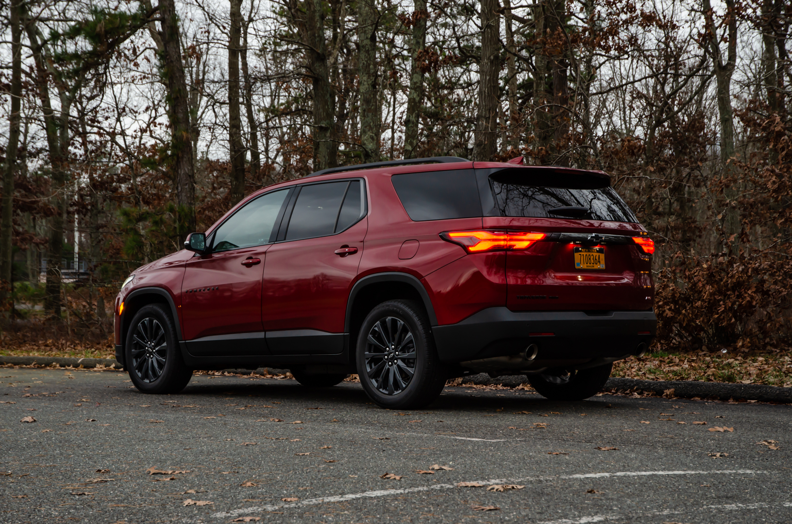 The Traverse is Chevy’s full-size, three-row SUV. The first generation debuted in 2008 for the 2009 model year and this current second generation launched in 2017 as a 2018 model year. Riding on General Motors’ C1XX platform, it shares underpinnings with the GMC Acadia and Cadillac XT6. The Traverse RS tester might have a sporty badge, reminiscent of ‘60s Camaros, but it’s the furthest thing from sporty. All the “RS” badge does is bring black exterior accents—the front badge and window trim—20-inch black wheels, and a black interior with red accents. Mechanically, the Traverse RS is identical to every other trim level.