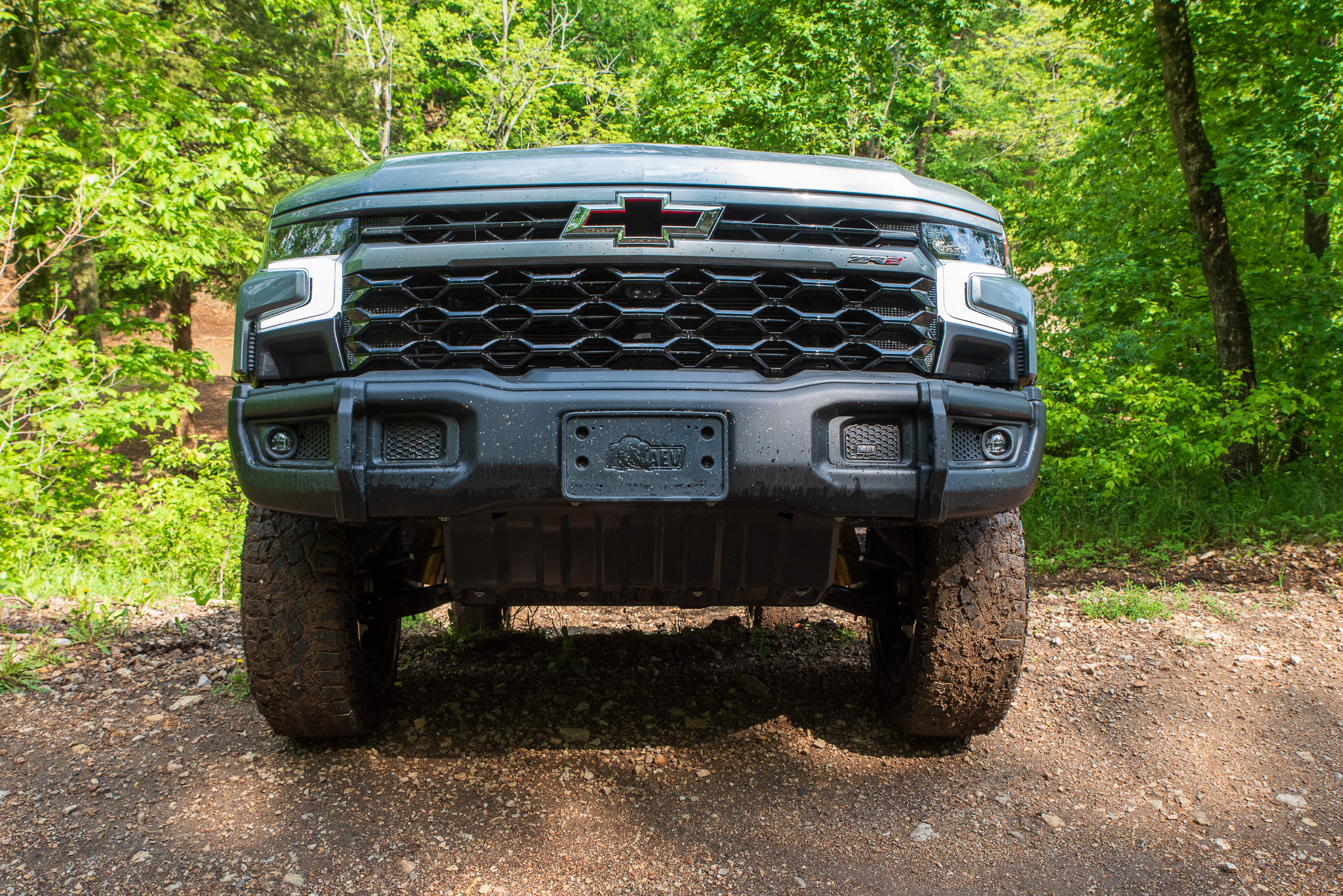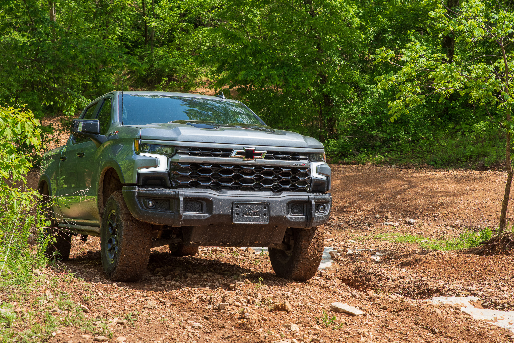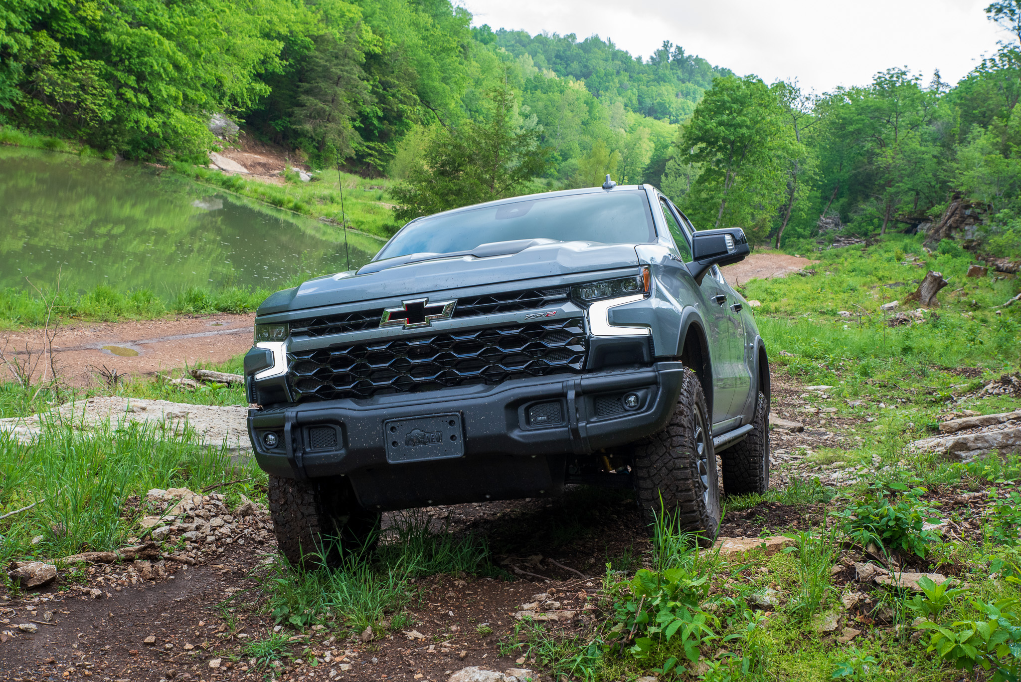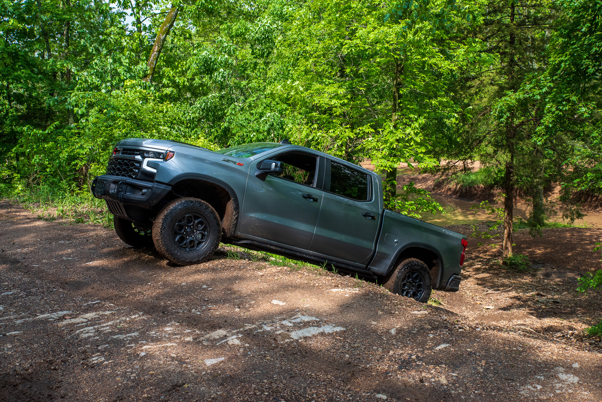 I quickly found a mud pit about 100 feet long. If you’re from the middle of the country like I am, this is the type of wheeling you grew up around. That said, you probably weren’t raised with a truck this fancy with cooled seats and a TV screen capable of running OnX Offroad. Still, the Silverado ZR2 Bison plunged right in and never struggled for grip, even as I forged through water that reached the bottom of the doors.