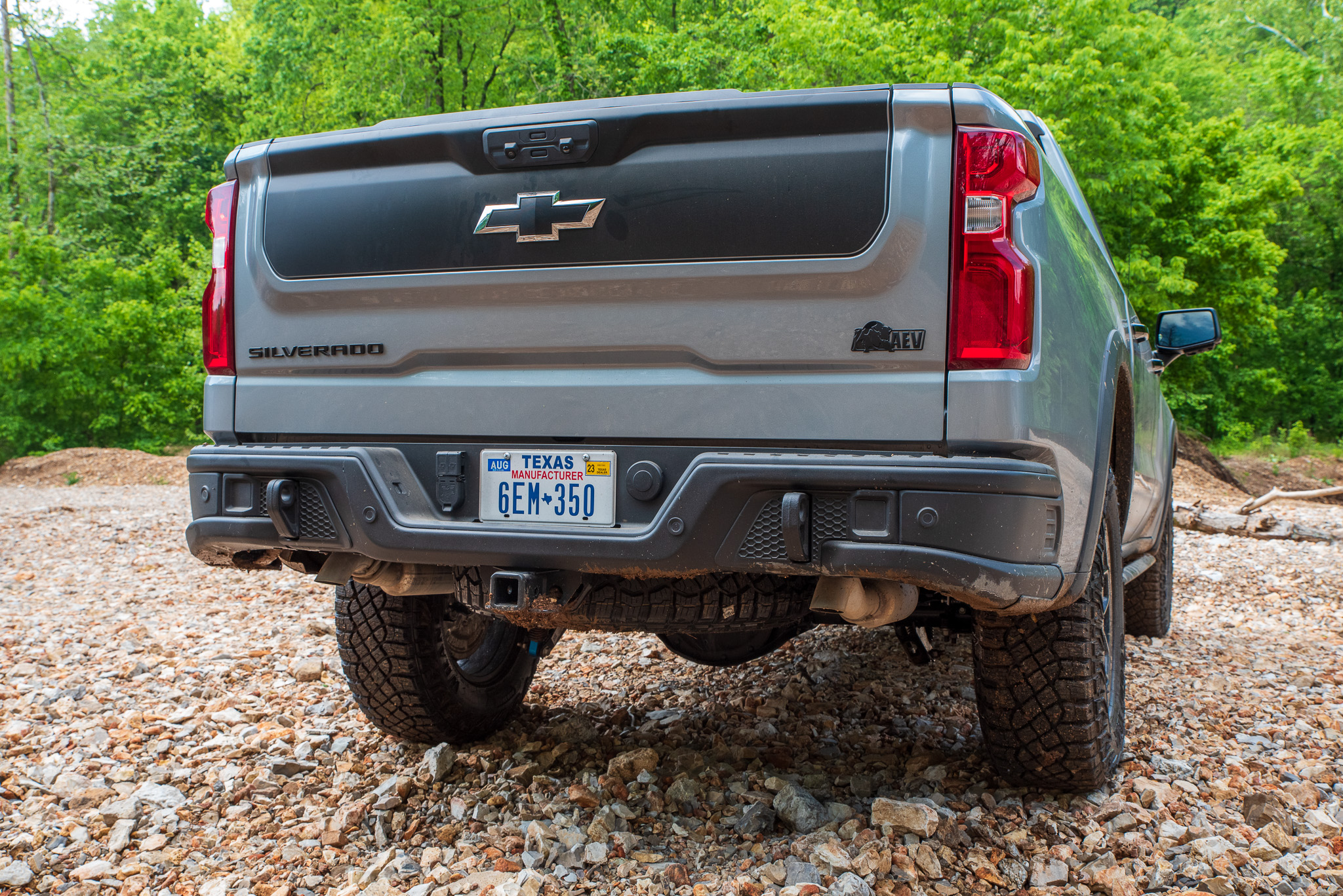 It takes a trained eye to spot the Bison’s exterior design differences. There are no corner cutouts on the front bumper like you find on the normal ZR2, as it now houses LED fog lights there. Out back, there are super solid tow hooks that encourage you to use the truck as intended, as well as turn-down exhaust pipes which sit nearly flush with the rear bumper. Those come in handy—I’ll explain why later.