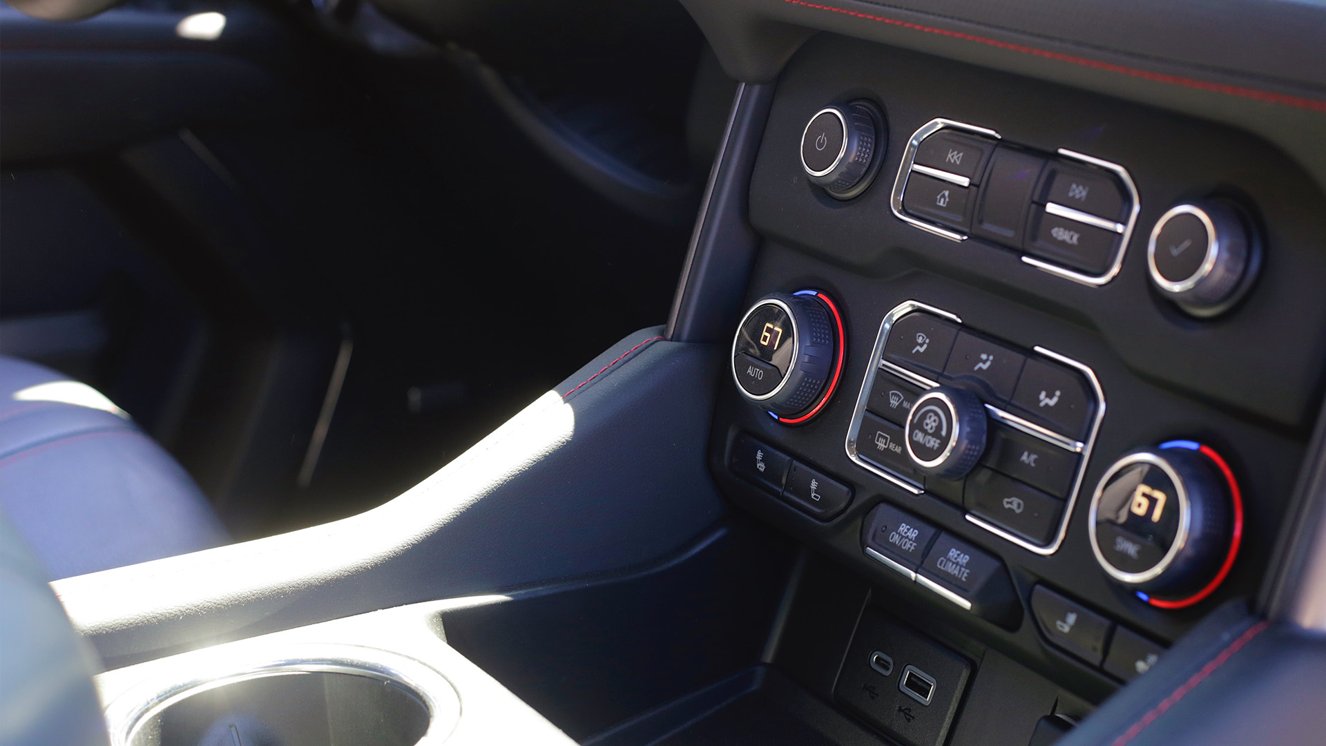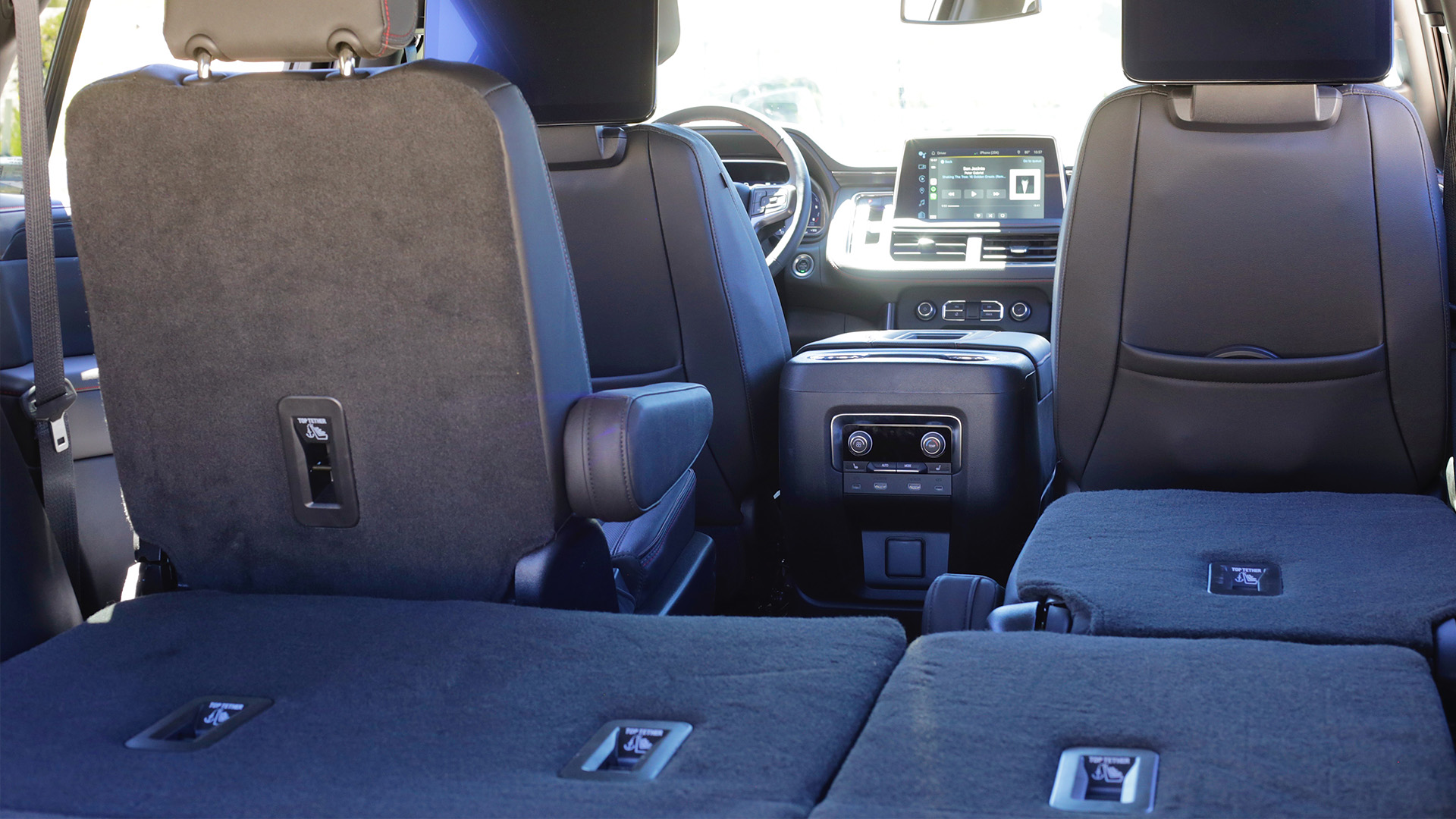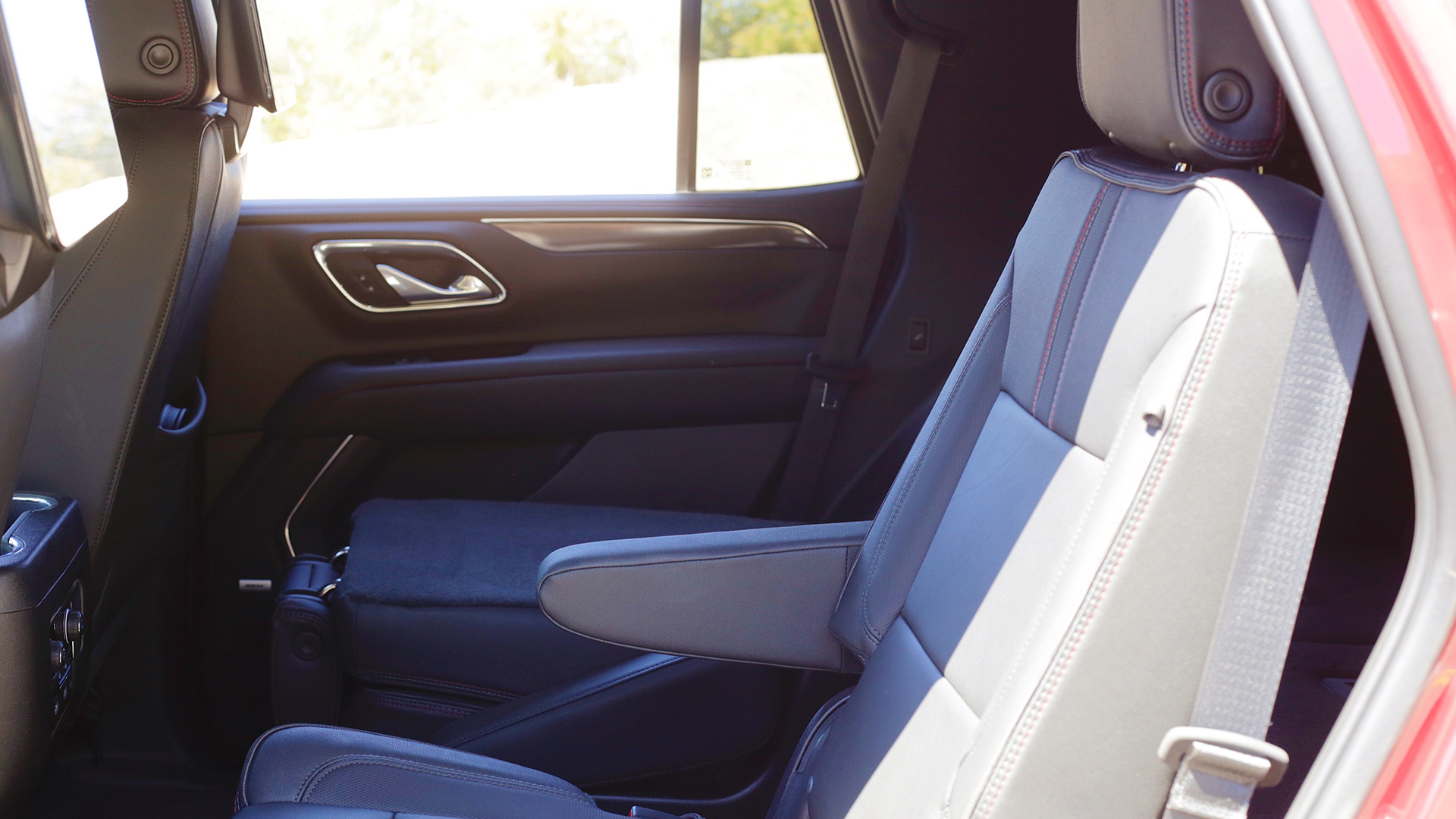 When it came to interior materials, Chevy outfitted the Tahoe with upscale-feeling buttons and switches, particularly for transmission controls, and red stitching across the dash and center armrest. It’s not quite Caddy-level (it ought to not be, after all), but I doubt most folks throwing down $80,000 on a surprisingly fun-to-drive, spec’d-out Tahoe would have much to complain about. The instrument cluster is all digital, quite easy to read and navigate through, and was thankfully never affected by any degree of glare. Chevy’s latest infotainment system was same song, second verse: it was a snap to figure out and didn’t exhibit any annoying amount of lag.
