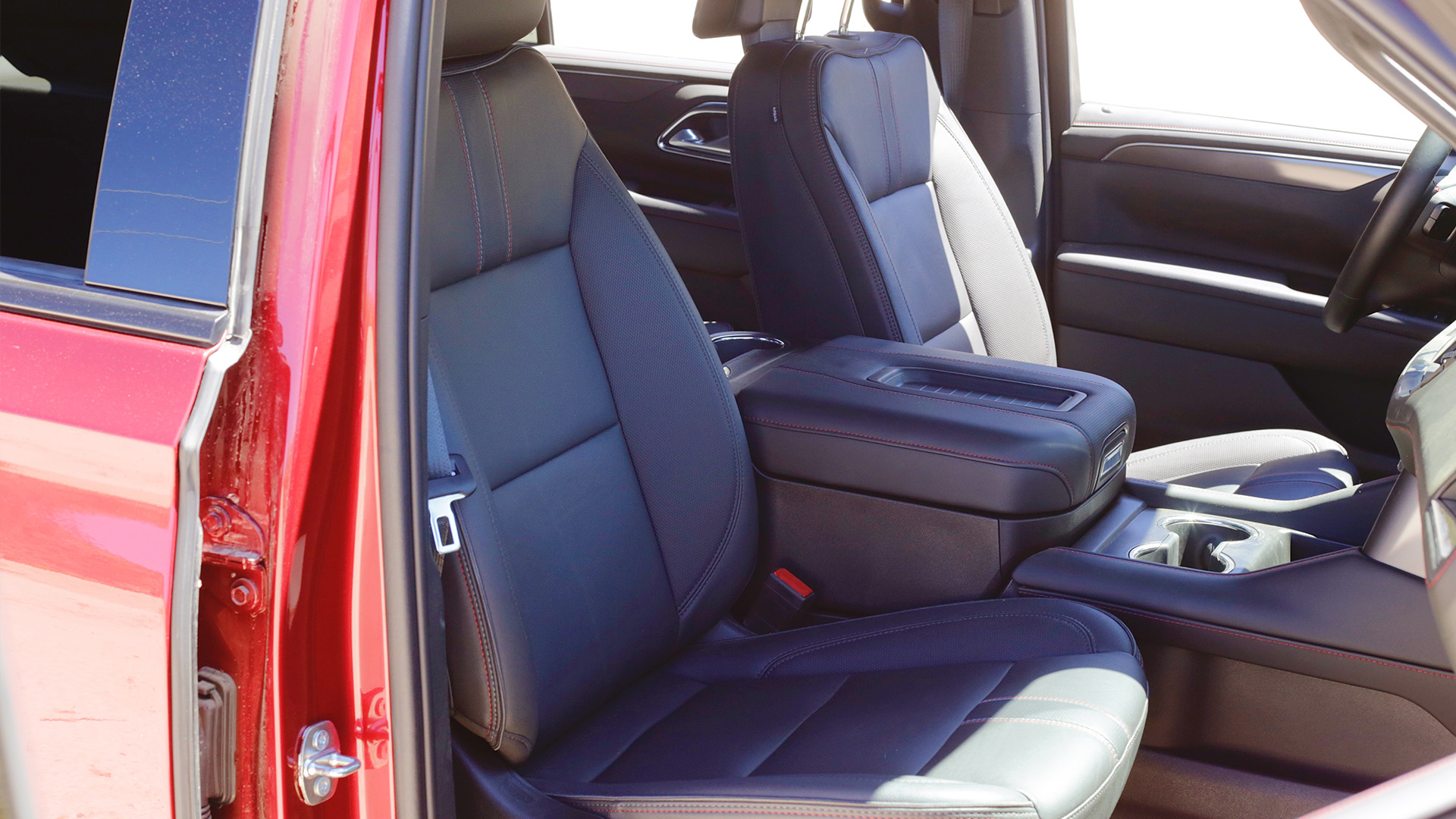 On the 2023 Tahoe, it’s a welcome addition: I dig its look in general, and giving it a darker grille and black wheels that are accented by black badges looks great on its deep, Radiant Red paint. Though, this is the RST Performance, which features a few more nice add-ons, particularly when it comes to power and handling—more on that later.