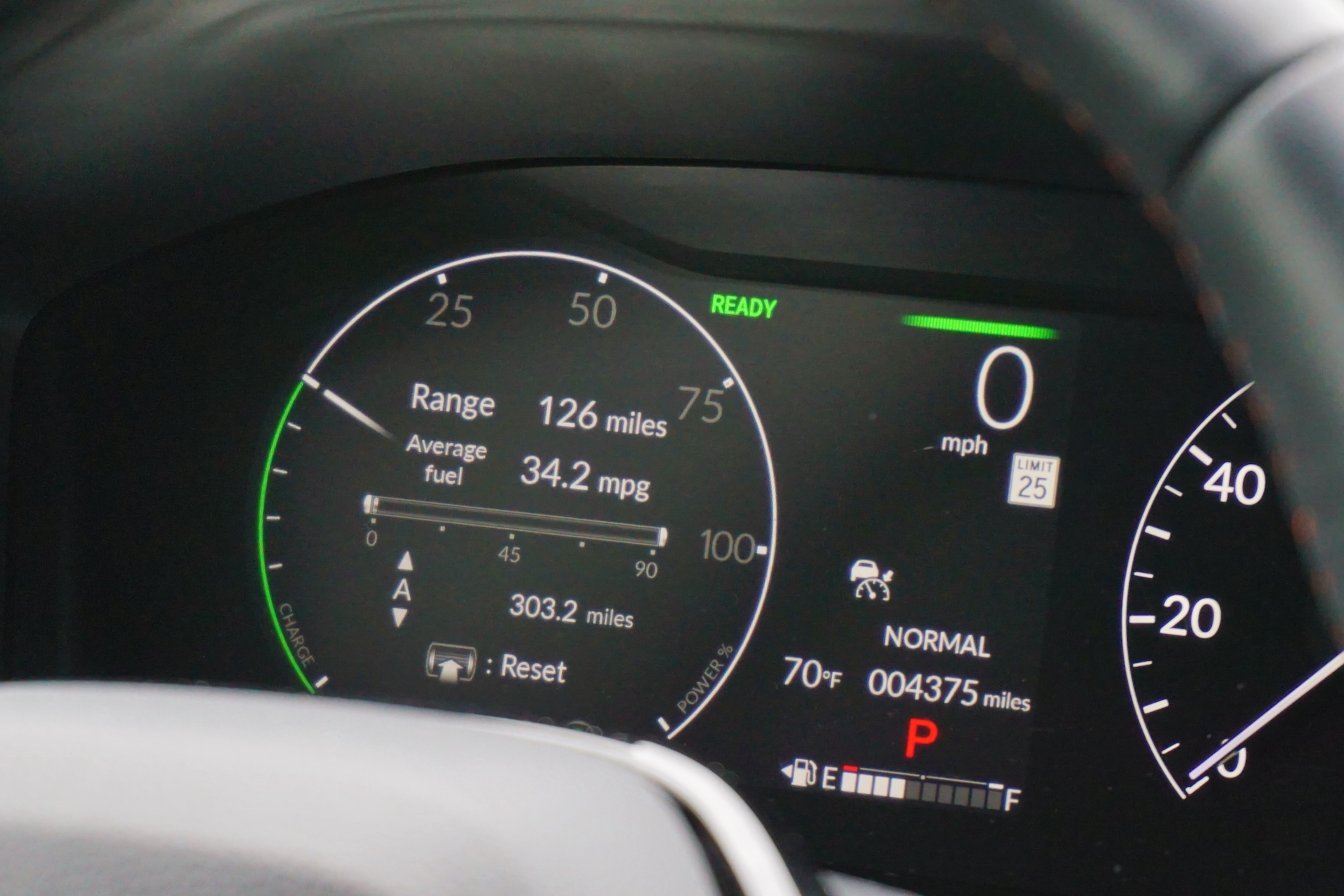 The shifter has a “B” setting. Shifting into B provides a hint of EV-style, one-pedal driving. It won’t bring the car to a complete stop, but it introduces additional drag to quickly slow down and recharge the battery. I found myself using this in the few miles leading up to my house (mostly curvy country roads), and then tricking the drivetrain into battery-only mode by keeping a modest speed once I entered my neighborhood. I enjoyed the experience.
