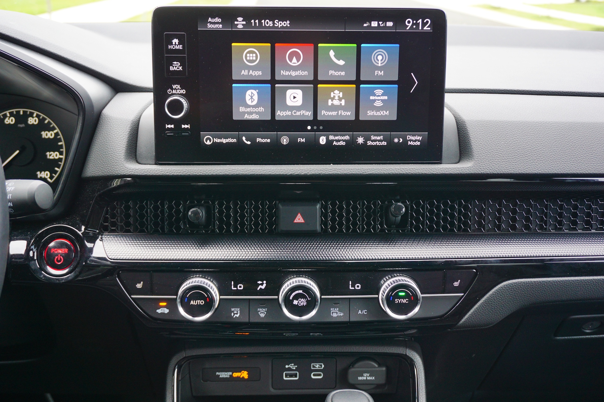 Optional equipment and packaging seem confusing in the new-gen CR-V. One must step to the top-of-the-line model to get features like a heated steering wheel, as they’re either not available or don’t make financial sense to add in lower trims. Also, features like ventilated front seats, heated rear seats, and a third climate zone aren’t available at all for the CR-V. It also would’ve been nice to see the Pilot’s door panel design here too, which accommodates larger/taller water battles in the door cupholders.