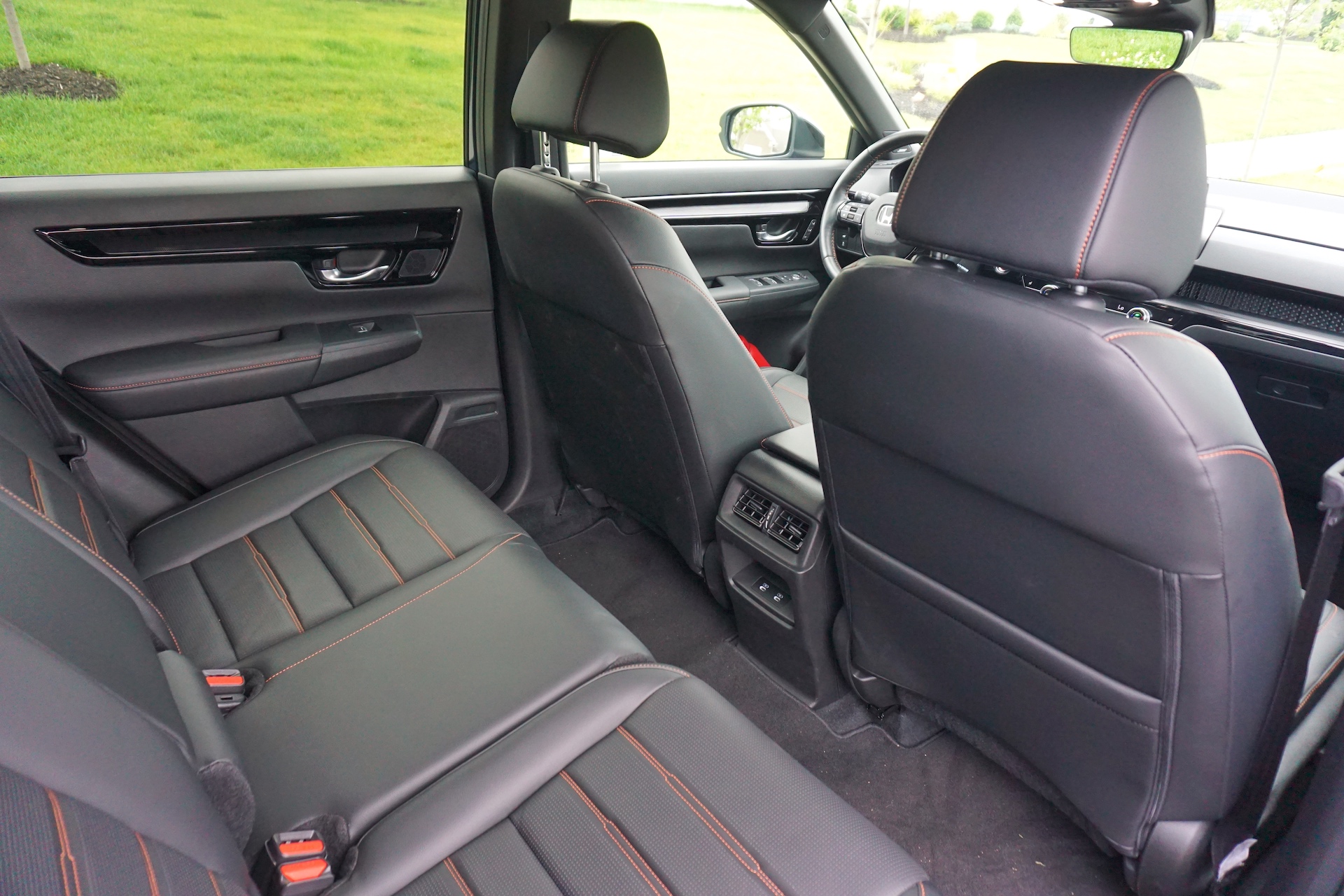 The CR-V is a fantastic way of transporting kids, dogs, and stuff. Comfort is paramount in this segment, and the CR-V delivers. My kids enjoyed the spacious rear seats, rear USB-C charge ports, air vents, and reclining backrests. Rear legroom is also fantastic at 41 inches (0.6 inches more than the previous model), as noted by my very tall teenage son, who was also a big fan of the CR-V’s sporty exterior and black wheels. At 36.3 cubic feet, cargo space is also ideal, with the crossover handling several suitcases and other gear for the kids’ weeklong summer camp. Lastly, the CR-V was awarded a Top Safety Pick+ rating by the Insurance Institute for Highway Safety, which is the highest rating it offers.