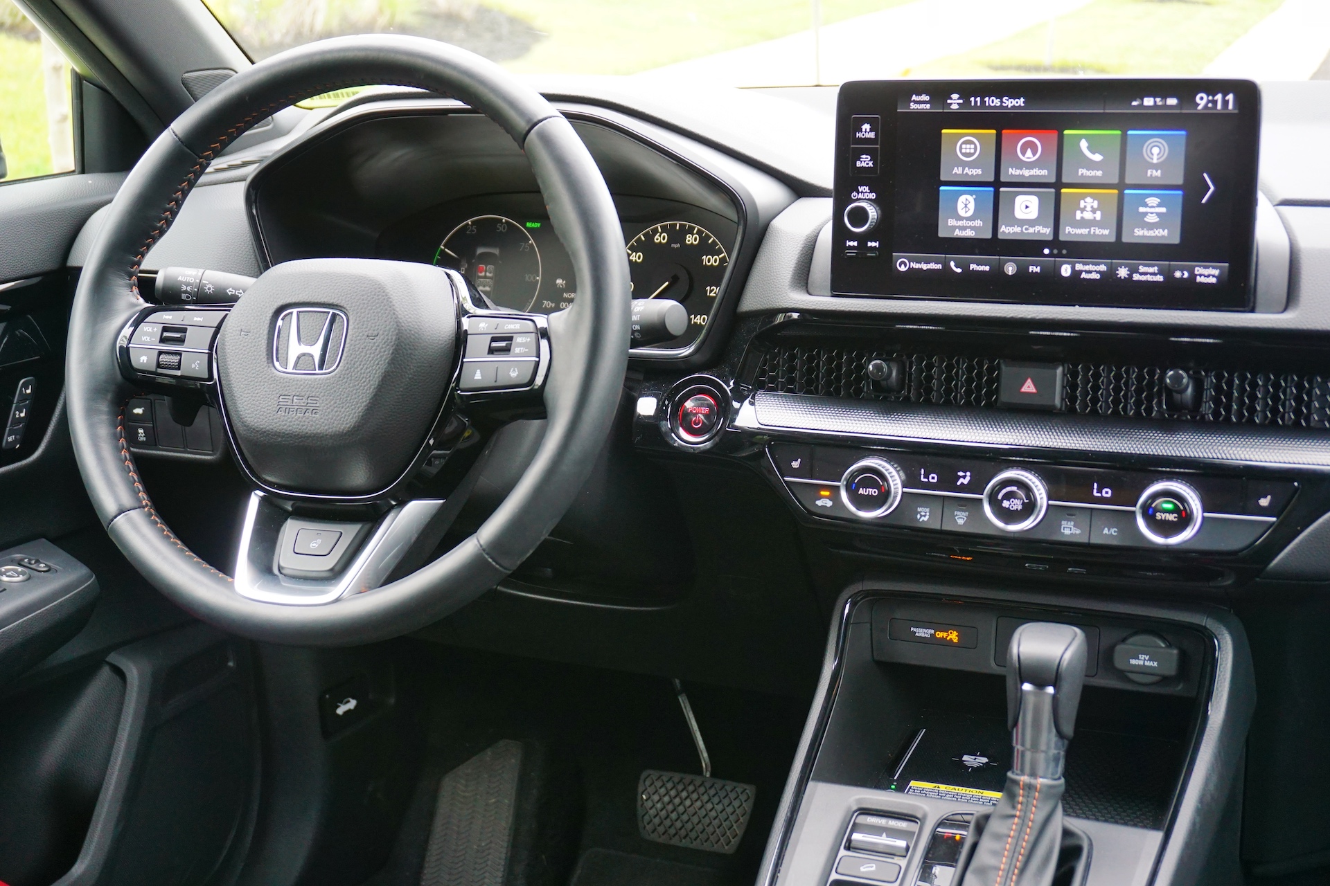 The CR-V Sport Touring is powered by a hybrid-electric drivetrain consisting of a 2.0-liter Atkinson-cycle inline-four aided by two electric motors and a small battery. Together, they produce 204 horsepower and 247 lb-ft of torque, which can be sent to all four wheels. Unlike previous CR-V Hybrids, this new generation allows towing up to 1,000 pounds. It’s not much, but it’s better than nothing.