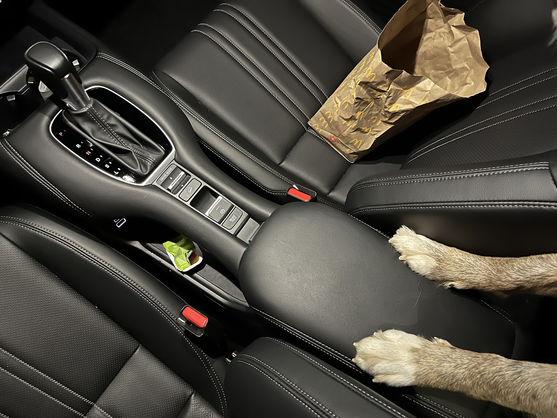 Bramble’s a truly spoiled bitch so she did get a few nugs of her own, but I was able to keep her snout away from my dipping sauce by stashing it in the HR-V’s cleverly designed center console. It’s also got a fully closing section for sashing treats (or leashes, poop bags, and other accessories you might not want in your dog’s mouth).