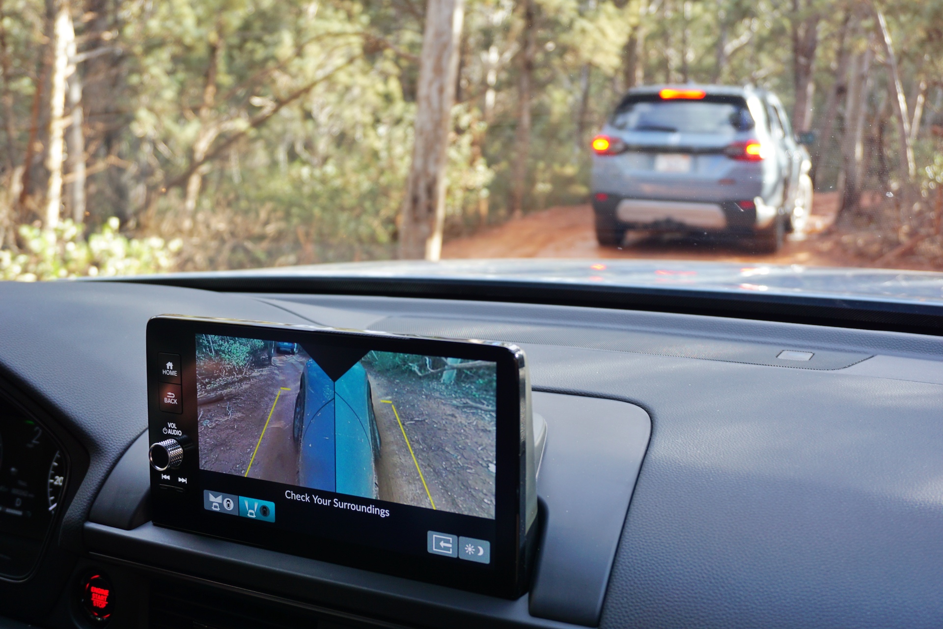 Tech enhancements include a new Trail driving mode, which allows the Pilot’s newly-tuned i-VTM4 all-wheel-drive system to send the majority of the torque to the wheel with the most traction. The rear differential is also more powerful than in the regular Pilot, boasting 3,000 Nm of torque compared to 2,500. A Hill Descent system is also new, but more helpful during my off-roading expedition was Honda’s new Trailwatch System. It employs the Pilot’s front, rear, and side cameras to provide various angles to aid in maneuvering through tight spots, or when approaching hills, steep drop-offs, etc.