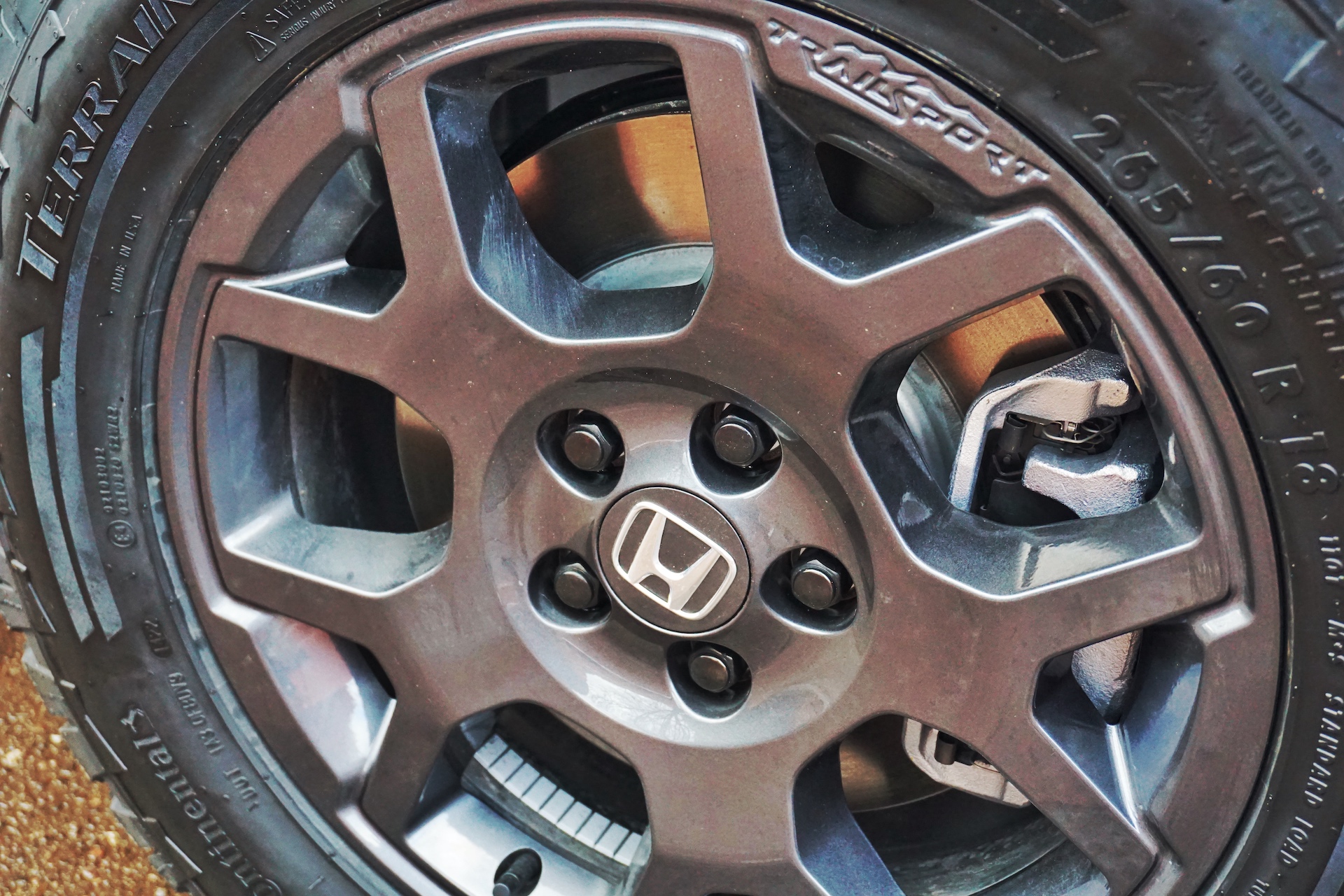 Suspension performance is also revised for Trailsport, featuring specific shock and stabilizer bar tuning to maximize traction when venturing off the pavement. Continental 265/60 All-Terrain tires wrap around trim-specific 18-inch wheels with flared spokes. Two heavy-duty skid plates—one for the engine and one for the fuel tank—were designed with the help of Honda Powersport engineers. These can reportedly withstand the full weight of the vehicle crashing down on the plate without causing any damage. Lastly, a high-strength steel rear hitch with built-in recovery points is standard, and it can sustain two times the Pilot’s weight.