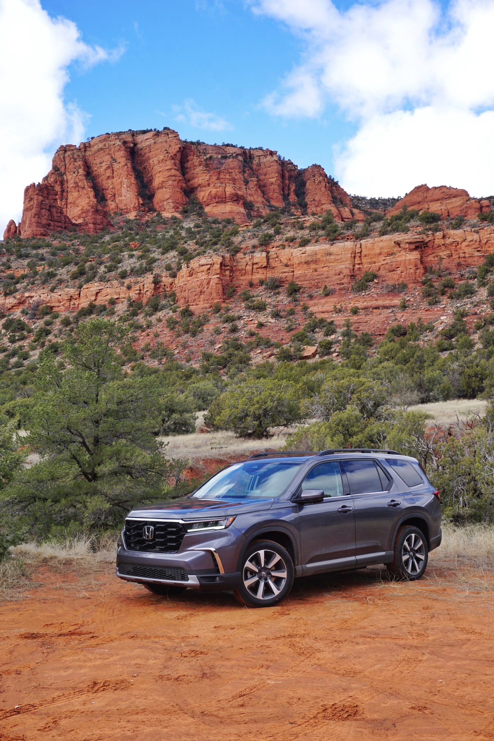 The steering, I gotta say, is fantastic. The amount of feedback it provides to the driver is slightly more than you’d expect in a three-row SUV, but it’s not so much that it becomes tiring. It’s not as sporty as that of a Mazda CX-9, but lightyears ahead of what you’d find in a Ford Explorer or Toyota Highlander. Driving through mountain roads around Sedona, Arizona can be intimidating, especially after an overnight snowfall made roads slippery in the early hours of my test drive. The Pilot kept its composure as it made its way through tight bends and mud-splashed roads. The newly-tuned i-VTM4 all-wheel-drive system can send up to 70% of the torque to the rear, and 100% of that to either the right or left wheel. It can also do so 30% faster than the outgoing Pilot. I could certainly feel it working overtime to make sure I stayed planted on the road and off the sticky red mud the area is famous for.
