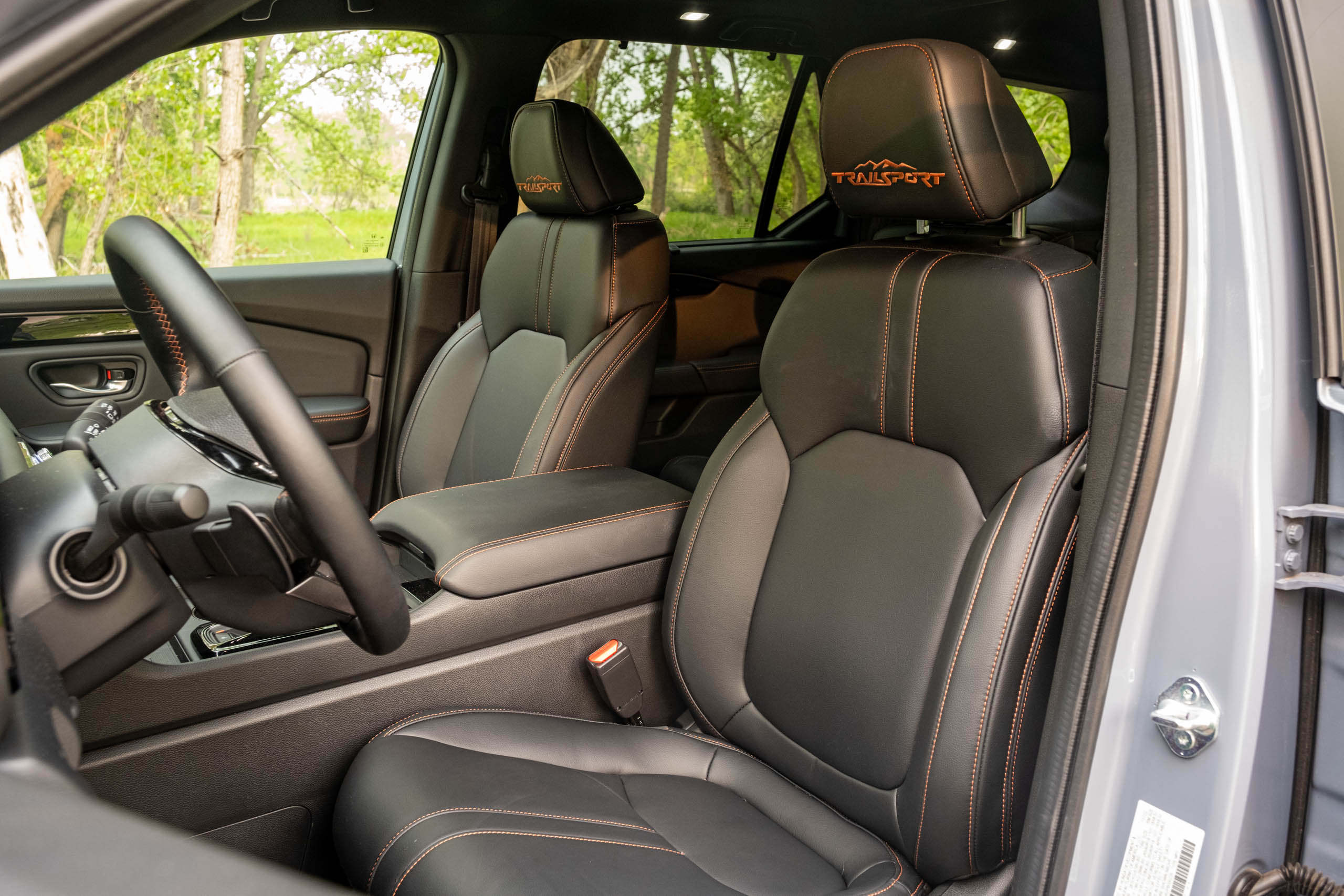 The Pilot uses a new 3.5-liter V6 that sure feels like the old one. It’s saddled with a 10-speed automatic that’s eager to upshift and an all-wheel-drive system that sends up to 70% of available torque rearward. The TrailSport gets a one-inch lift compared to the rest of the Pilot lineup, which is almost an afterthought compared to the A/T rubber wrapped around its 18-inch wheels. If you hadn’t told me the TrailSport was taller, I’m not sure I would’ve known.