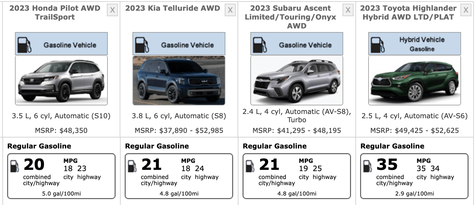 The Pilot TrailSport’s sin is one it doesn’t commit alone: many competitors don’t offer hybrids in three-row crossovers yet. The Toyota Highlander does, and it returns much better fuel economy when it’s equipped. Although it’s hard to fault Honda for something few other automakers do yet, it feels like we’re close to seeing more electrified competitors among family vehicles and the TrailSport won’t be mid-pack for much longer.