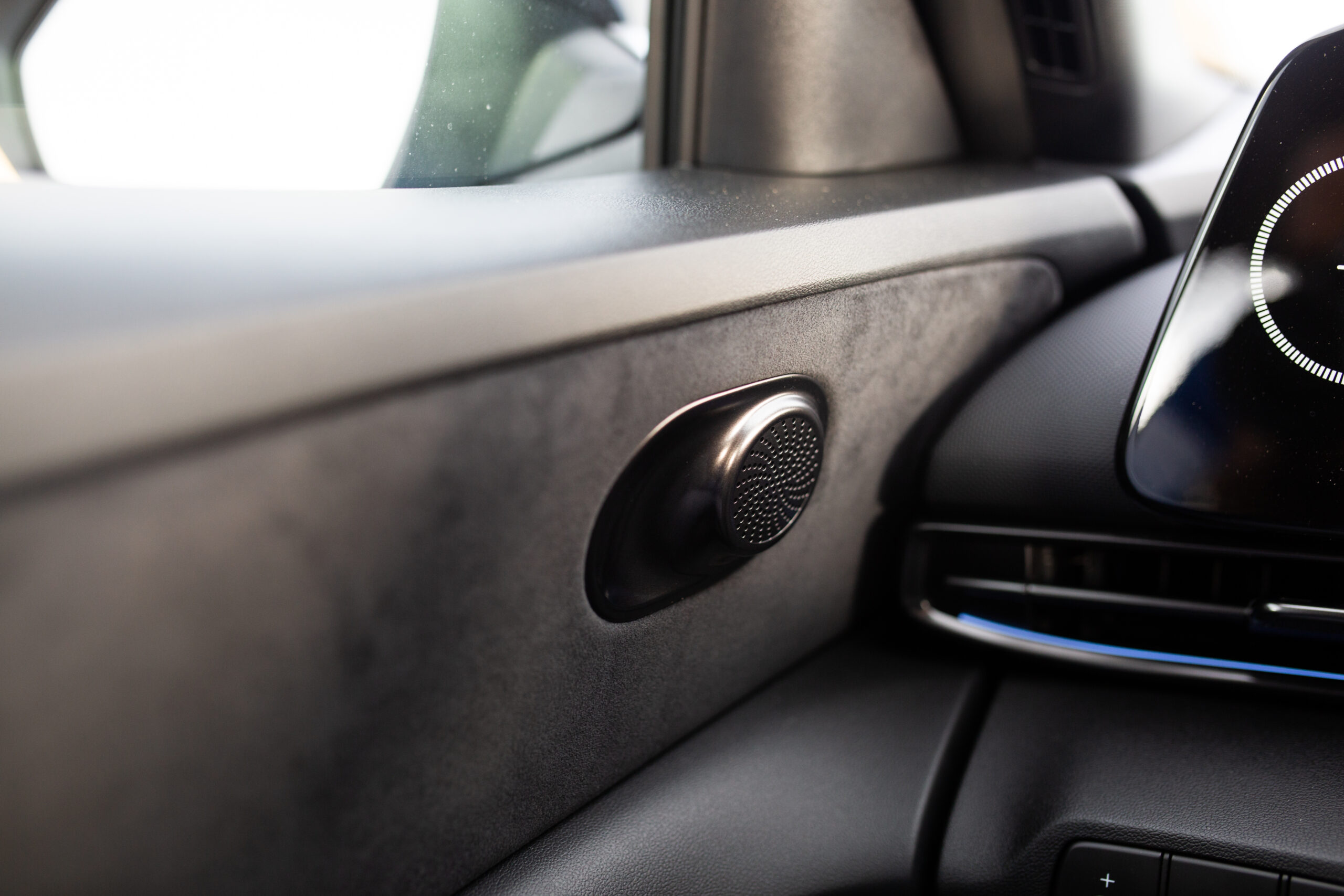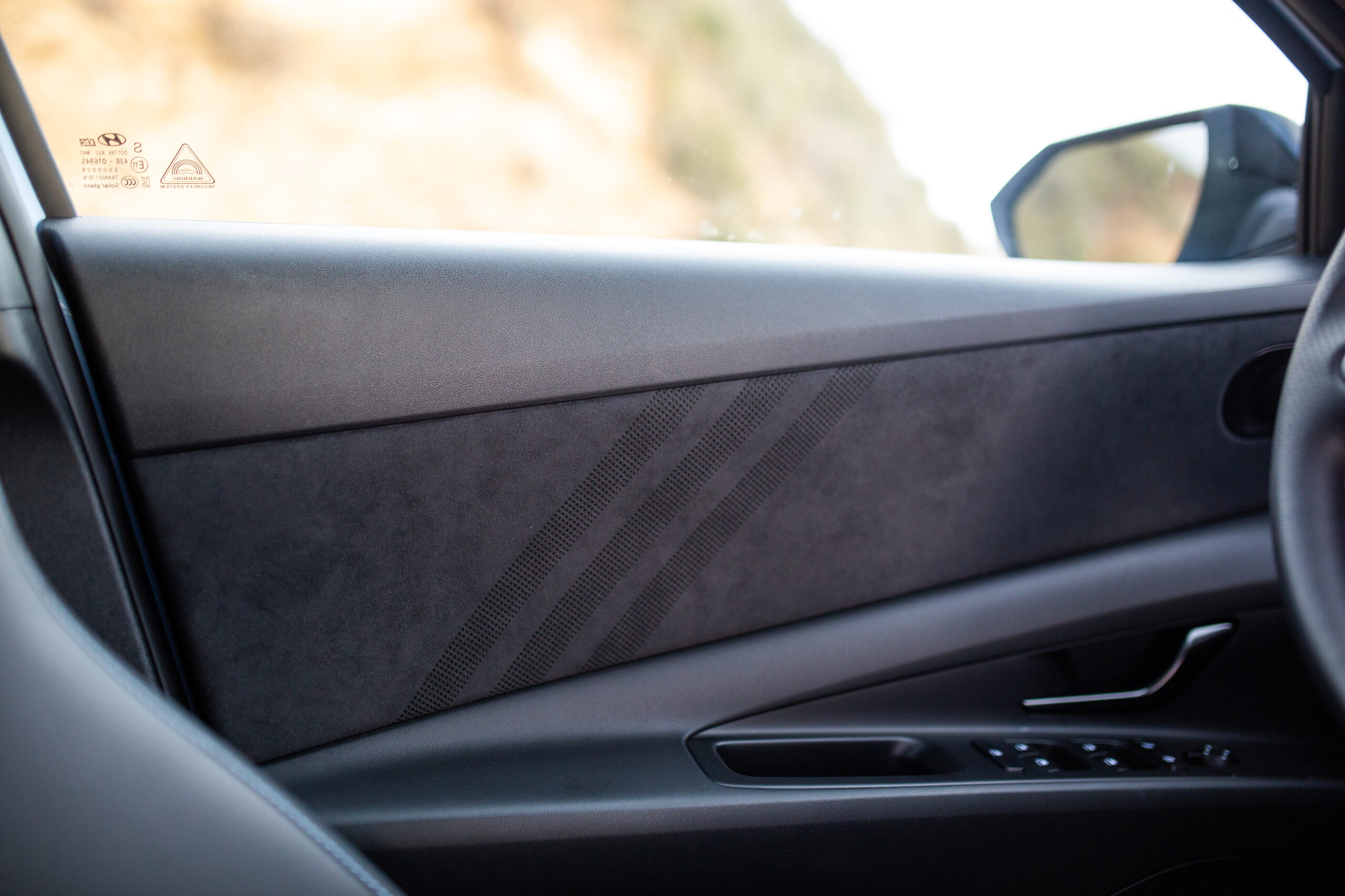 However, it’s offset by neat performance car design details dotted throughout the cabin. The three stripes in the Alcantara section of the door cards are made of tiny perforations. My favorite detail work is in the covers for the tweeters, which have a nice mix of concavity and convexity, along with pattern work that does a lot with fairly little real estate. And the N logos on the seats light up. It’s all very cool.
