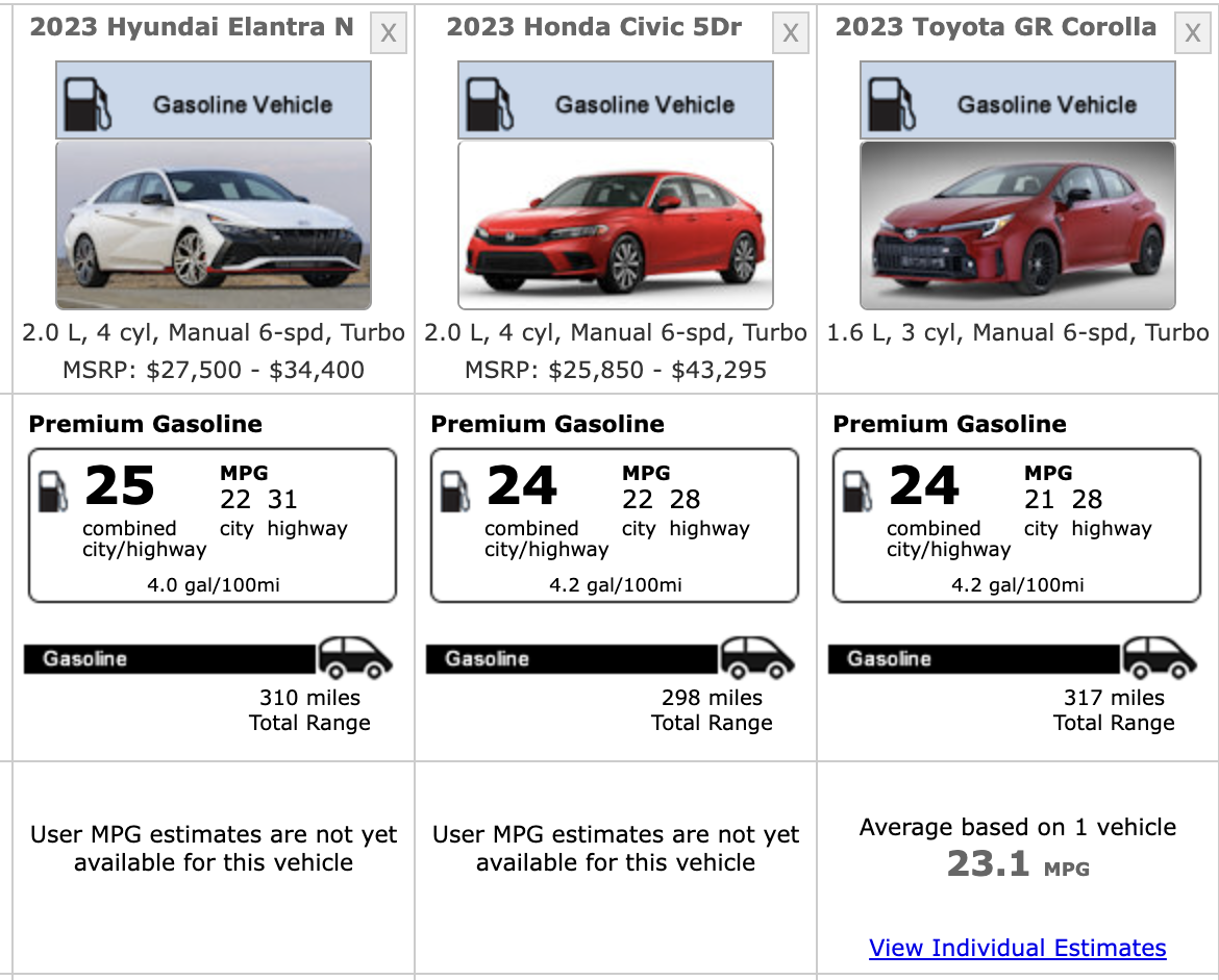 If you ask me, the Honda is admittedly the technically superior vehicle. It’s more refined, more capable, more complete. Is it $10,000 better than the arguably more charismatic Elantra N, though? Absolutely not. I’ve heard good things about the GR Corolla but have yet to pilot one myself, so I can’t quite speak to whether it justifies its mild price premium over this Hyundai. [Ed. note: It doesn’t. -CT]