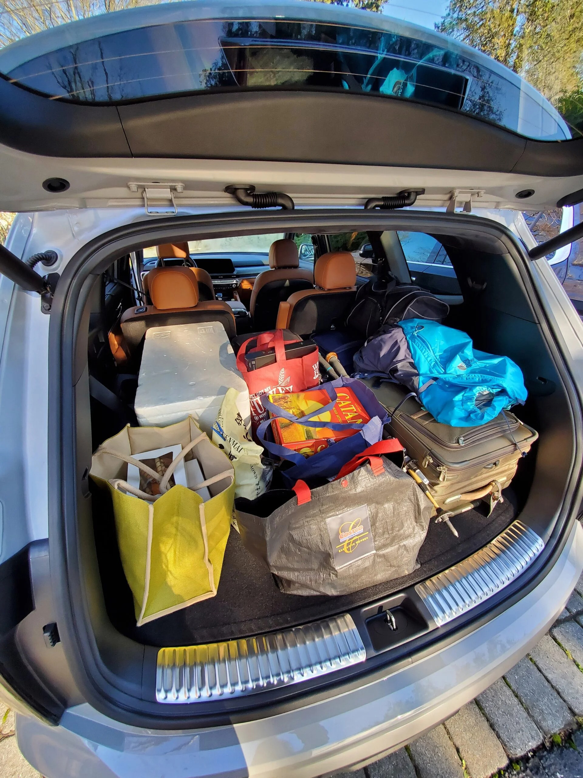 “This is like a Range Rover!” were my dad’s first words when he climbed into the passenger seat. Indeed, the test car was covered in plush tan leather, brushed metal accents, and what appeared to be open-pore wood. The whole thing was incredibly upscale to the sight and touch, and it was with a certain smugness that I reminded myself that I was sitting in a Kia. The interior layout was intuitive and accommodating, and the wide, single-slab screen offered clear and easy-to-read displays. As with the Kia Sorento I tested earlier this year, the second row offered lots of room and relaxing seats. All in all, this is not a place you’d mind spending a few hours in as the miles fell away.