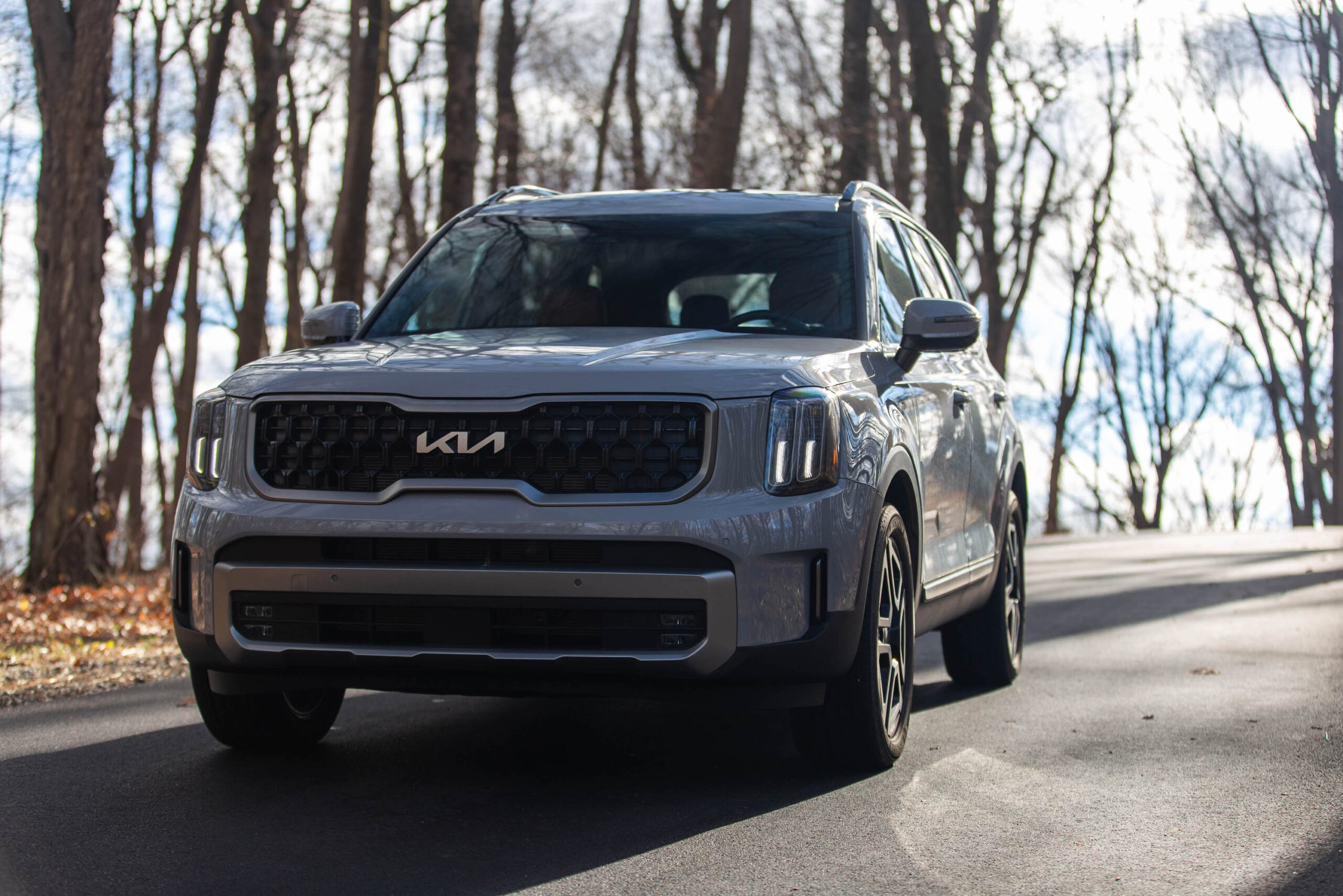 Base LX-trim Tellurides come with the V6, the eight-speed transmission, front-wheel drive, the 12.3-inch touchscreen, cruise control, a suite of driver safety features, and can seat eight passengers via a second-row bench seat. MSRP for those starts at $37,025. The test car came in the upper-tier SX X-Line AWD trim—which includes 20-inch black alloy wheels, X-Line exterior styling, a tow mode, and self-leveling rear suspension—and had a starting MSRP of $53,120. After options such as the Wolf Gray exterior paint ($495), Terracotta Interior Color Package ($295), and carpeted floor mats ($210), total vehicle MSRP came to $54,120.