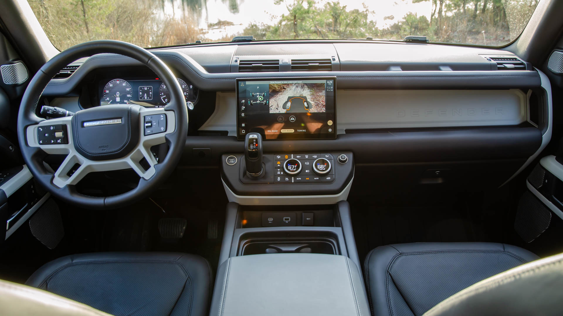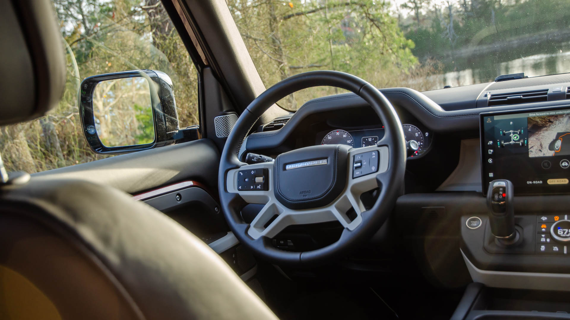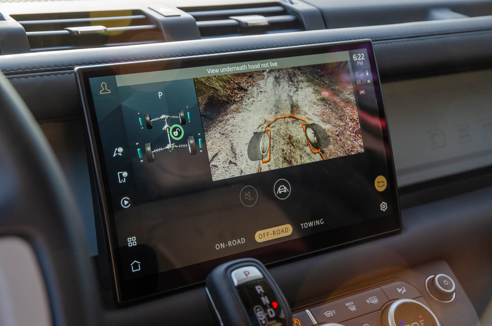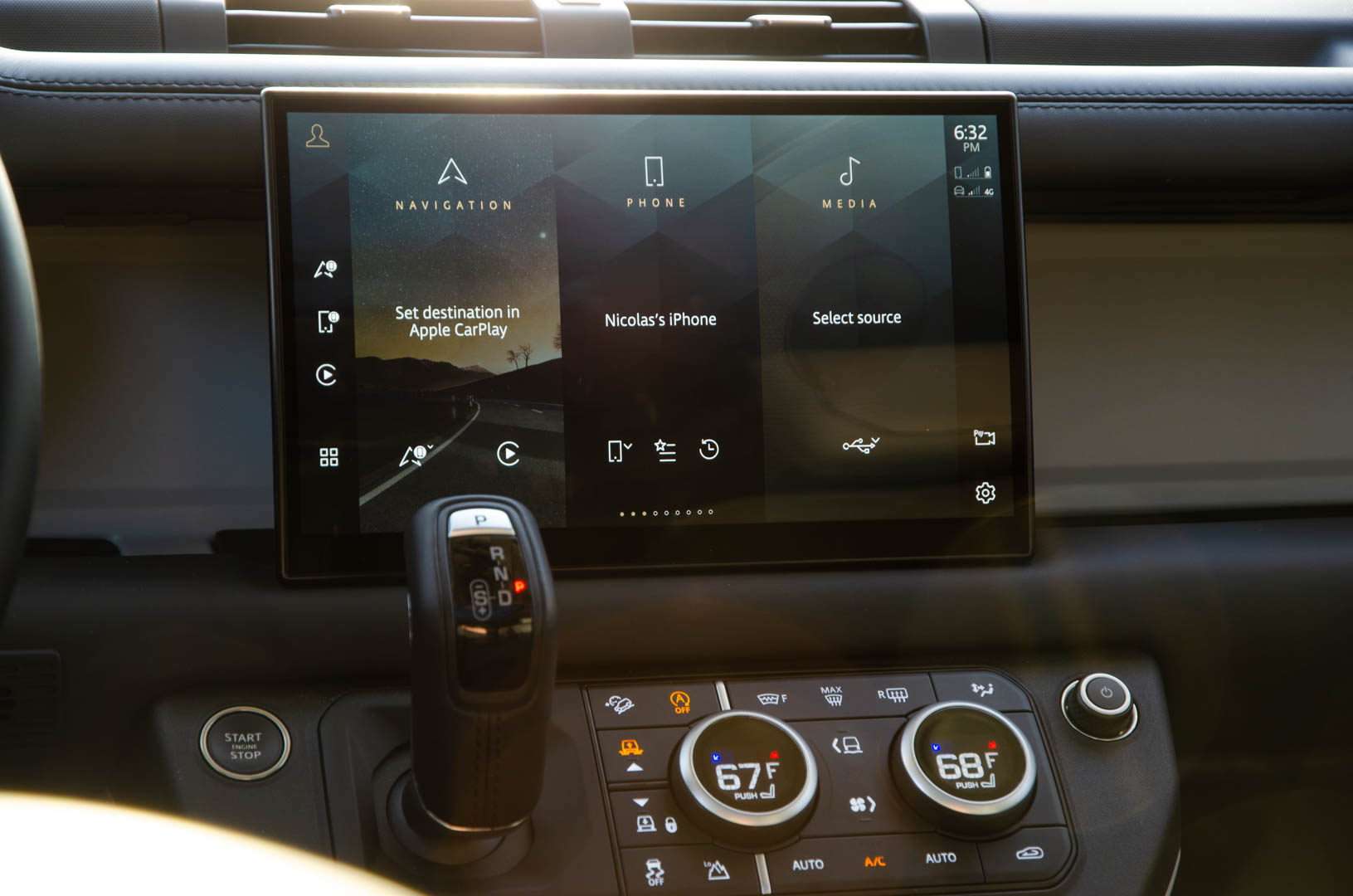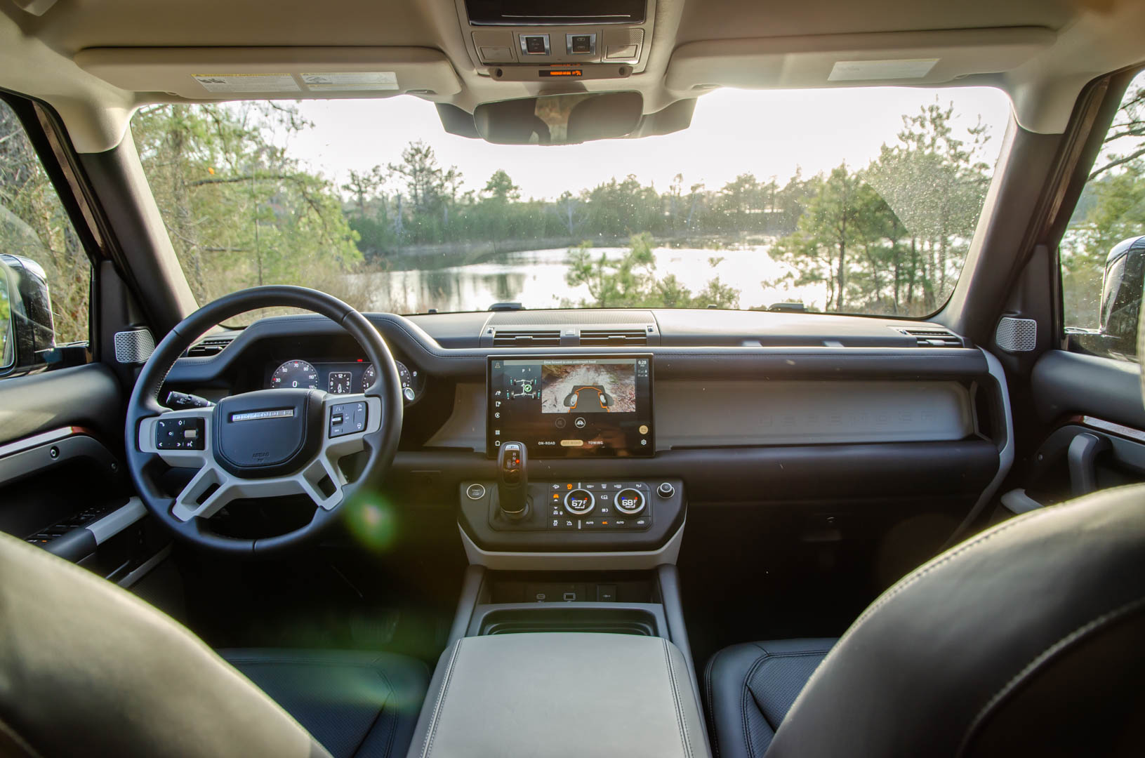 I was also pleasantly surprised by the quality of the Defender’s infotainment system. Jaguar and Land Rover products have been criticized in recent years for slow, clumsy touchscreen infotainment systems but Land Rover’s newest system is great. It’s intuitive, responsive, doesn’t require digging through many submenus, and most of its touch icons are large enough that they’re easy to use while driving. I love that there’s a fixed icon on the right side of the screen to pull up the exterior cameras, which makes parking in tight spaces a breeze. Also, Land Rover deserves credit for keeping physical climate controls.