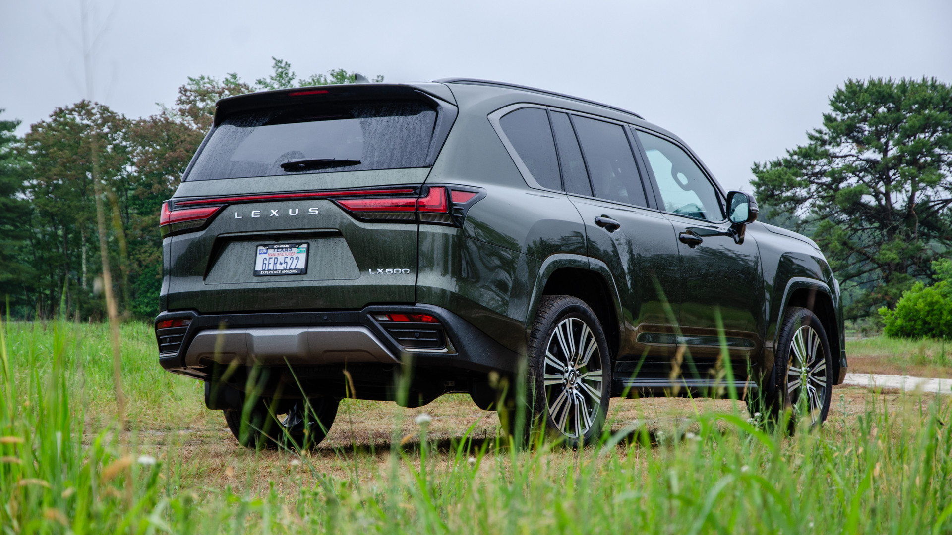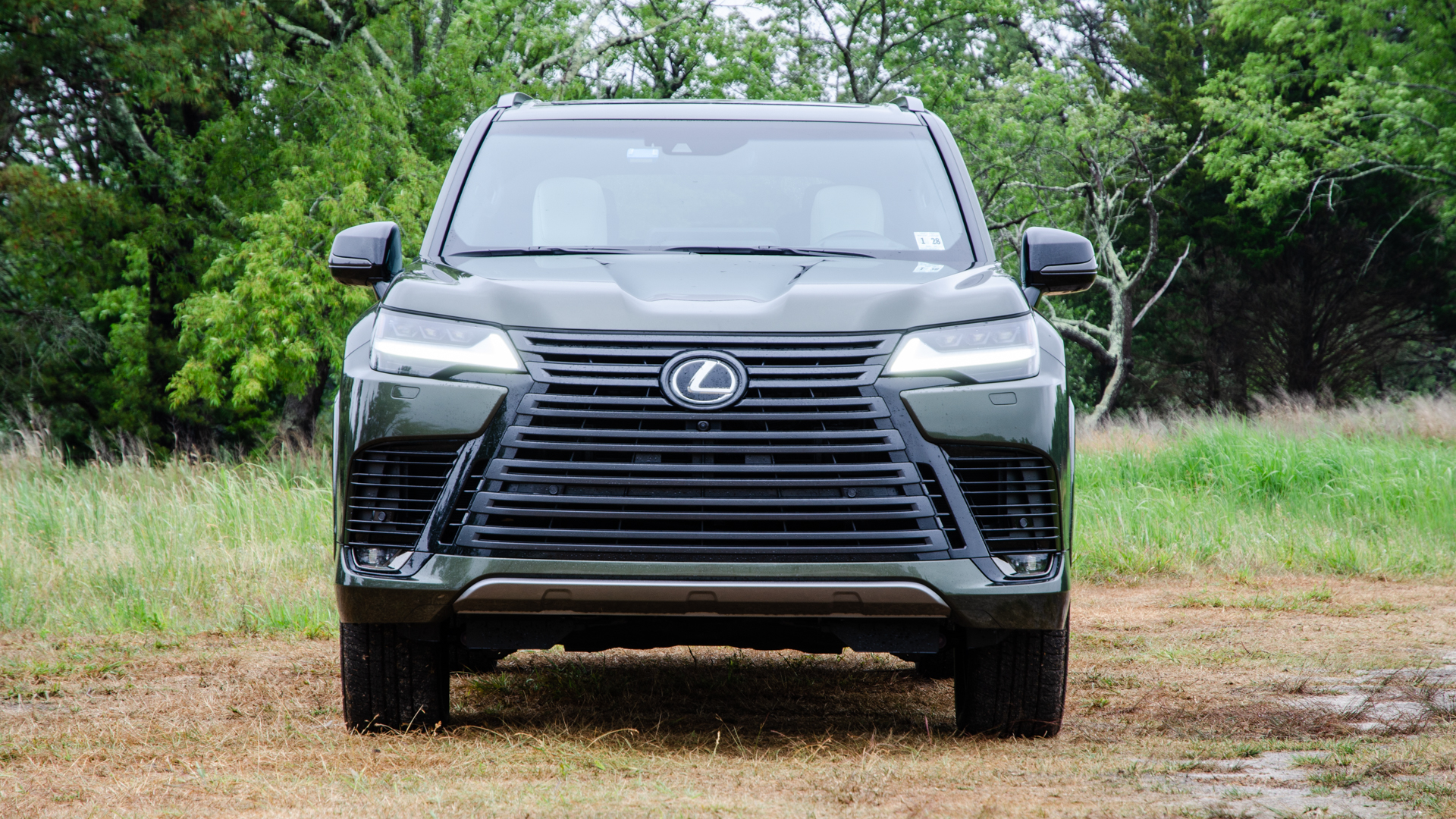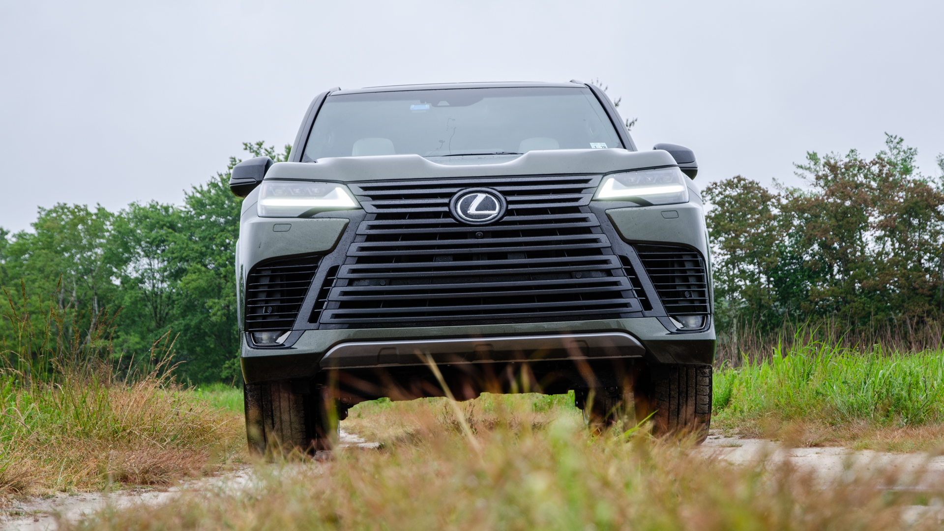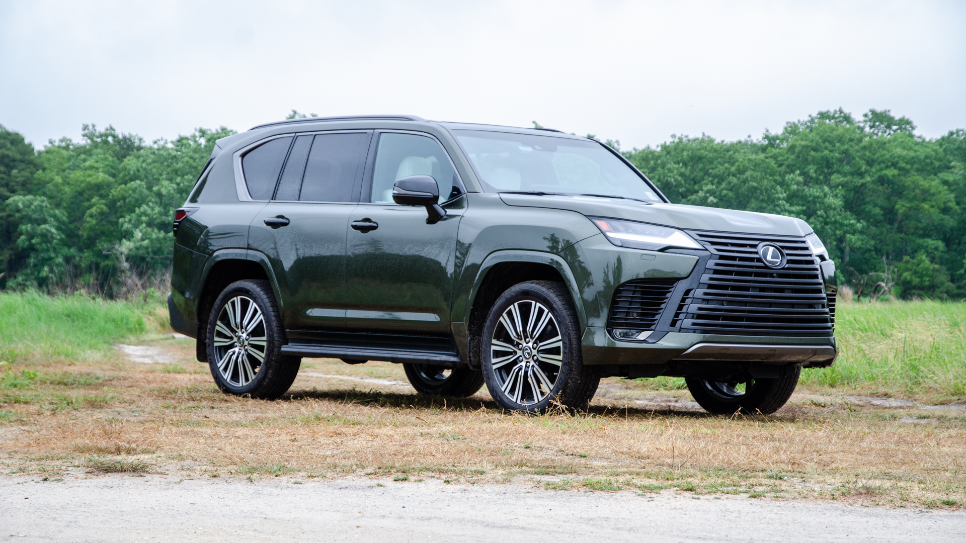 Looks-wise, the Lexus LX 600 can be a tough car to love. Its massive bumper-to-hood grille spans the entire height of the front end and almost takes up its entire width, too. There’s little purchase space up front that isn’t taken up by horizontal grille slats. My test car’s appearance package colored its grille and exterior trim a dark matte gray, which visually tones things down a bit but also makes it feel less expensive. However, I do think it looked good with my test car’s superb Nori Green Pearl paint. I’d like smaller wheels and chunkier tires, though, both for looks and a squishier ride.