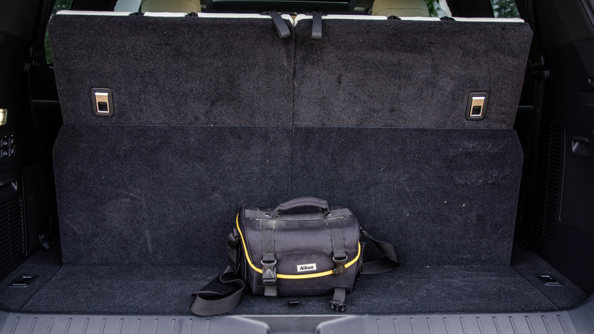 Being the Luxury trim, my test car had a few extra goodies, though. The standard car only has five seats while my car had seven. The Luxury package also brings quad-zone climate control, a neat “Cool Box” drinks fridge in the center console, and a typically kick-ass Mark Levinson surround sound system. The $1,295 Appearance Package swapped the normal chrome trim with dark gray trim on things like the grille, door trim, and roof rails. Active air suspension costs an additional $1,300 and the dual-screen rear entertainment system was a pricey $2,240. All of which brought its as-tested price to a hefty $109,945.