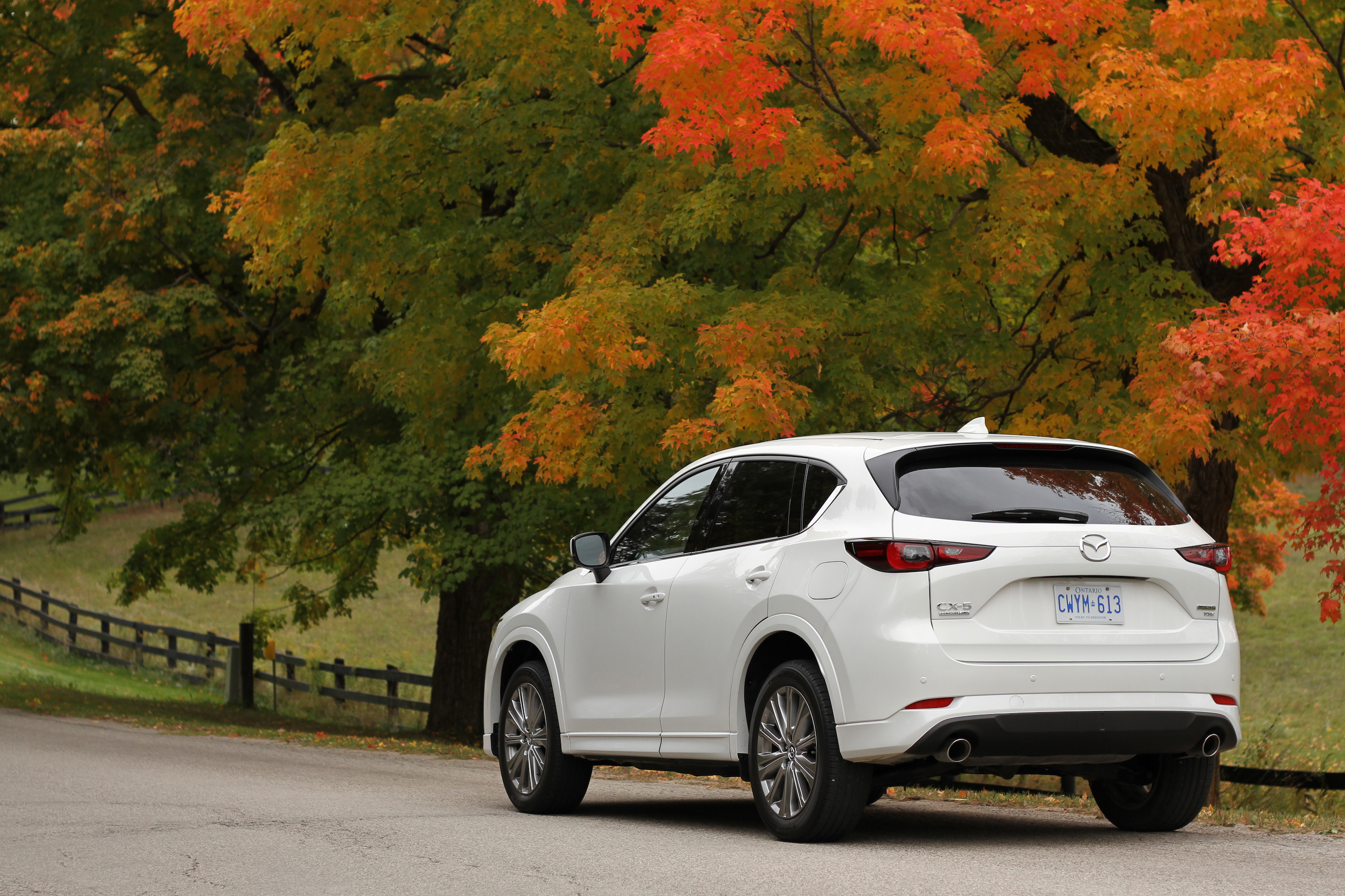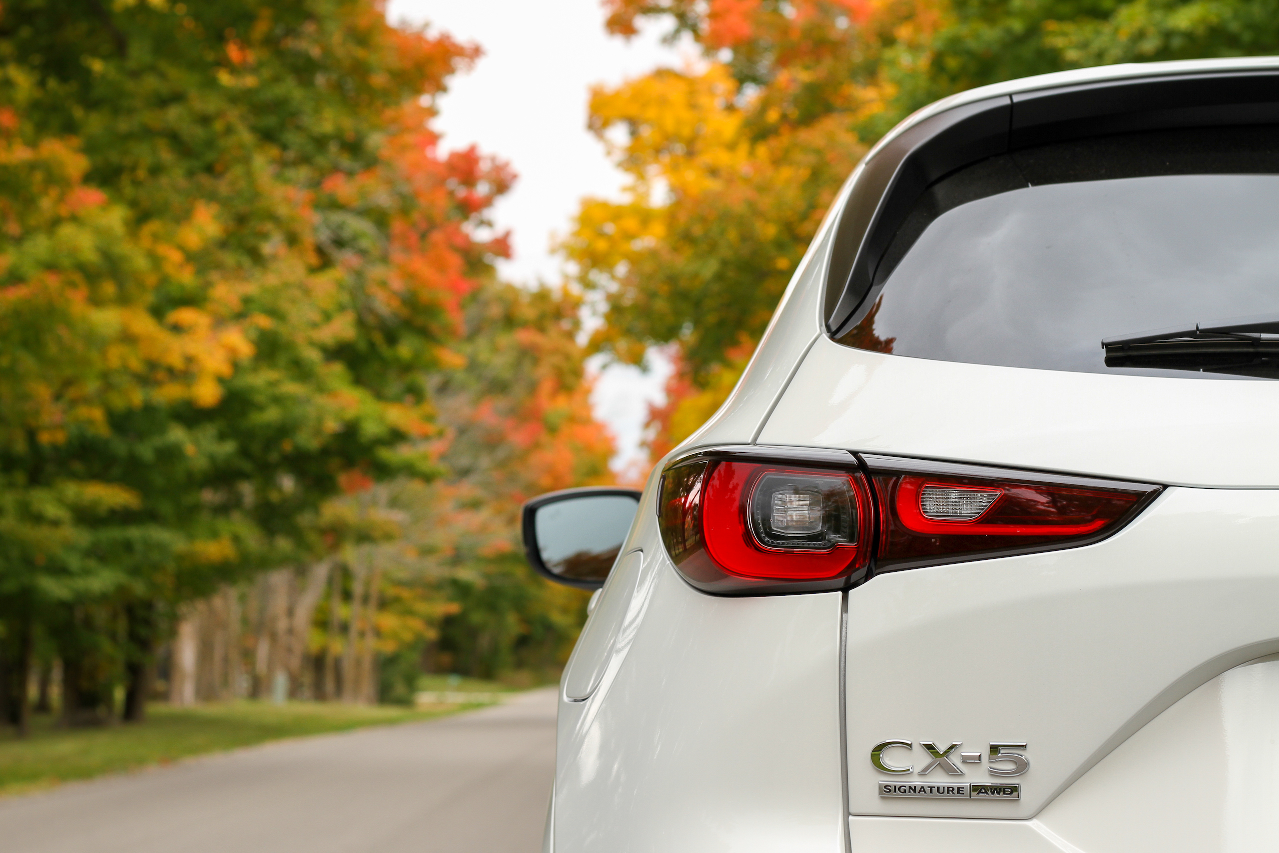 The 2023 Mazda CX-5 starts at $27,975 for the base 2.5 S model but the top-of-the-line Turbo Signature car tested starts at $40,925. There’s quite an extensive trim walk with many price levels and options to choose from but features exclusive to the Signature include the swanky brown leather, what Mazda claims is genuine wood interior trim, and a 360-degree camera system. The Signature also appears to be the only CX-5 to come with body-colored fenders.