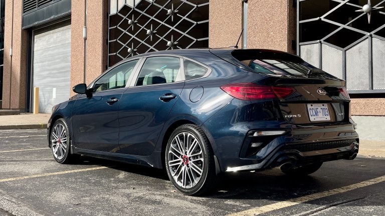 Otherwise, the interior was quite nicely appointed with comfortable leather seats, leather stitching across the dash, a small-yet-well-placed seven-inch infotainment screen, and very sharp analog gauges. The distance between the shifter and wheel was plenty close, and I was able to telescope the latter within a reasonable distance to my torso. Its nine-speaker Bose sound system had excellent audio quality and included speakers in the headrests that made Bluetooth phone calls a tad disorienting at first while Apple CarPlay quickly and easily connected.