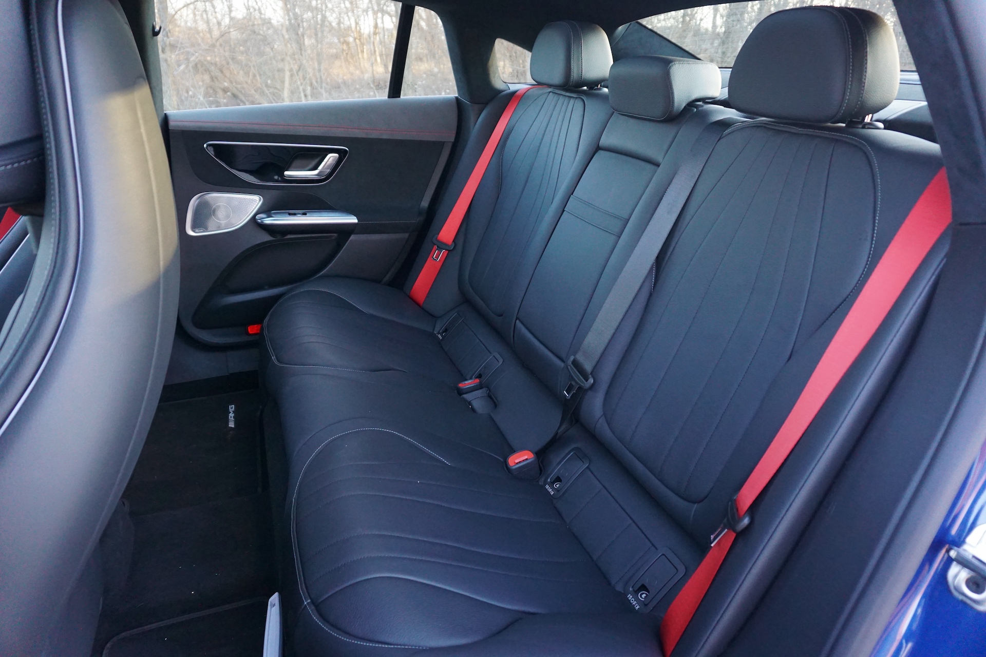 As is the case with many vehicles nowadays, electric or otherwise, portions of the EQE’s interior are crafted from synthetic leatherette, further boosting the sedan’s green credentials. Other materials used throughout are also synthetic and not actual leather, especially in the case of my specific tester, which was fitted with the AMG interior package.