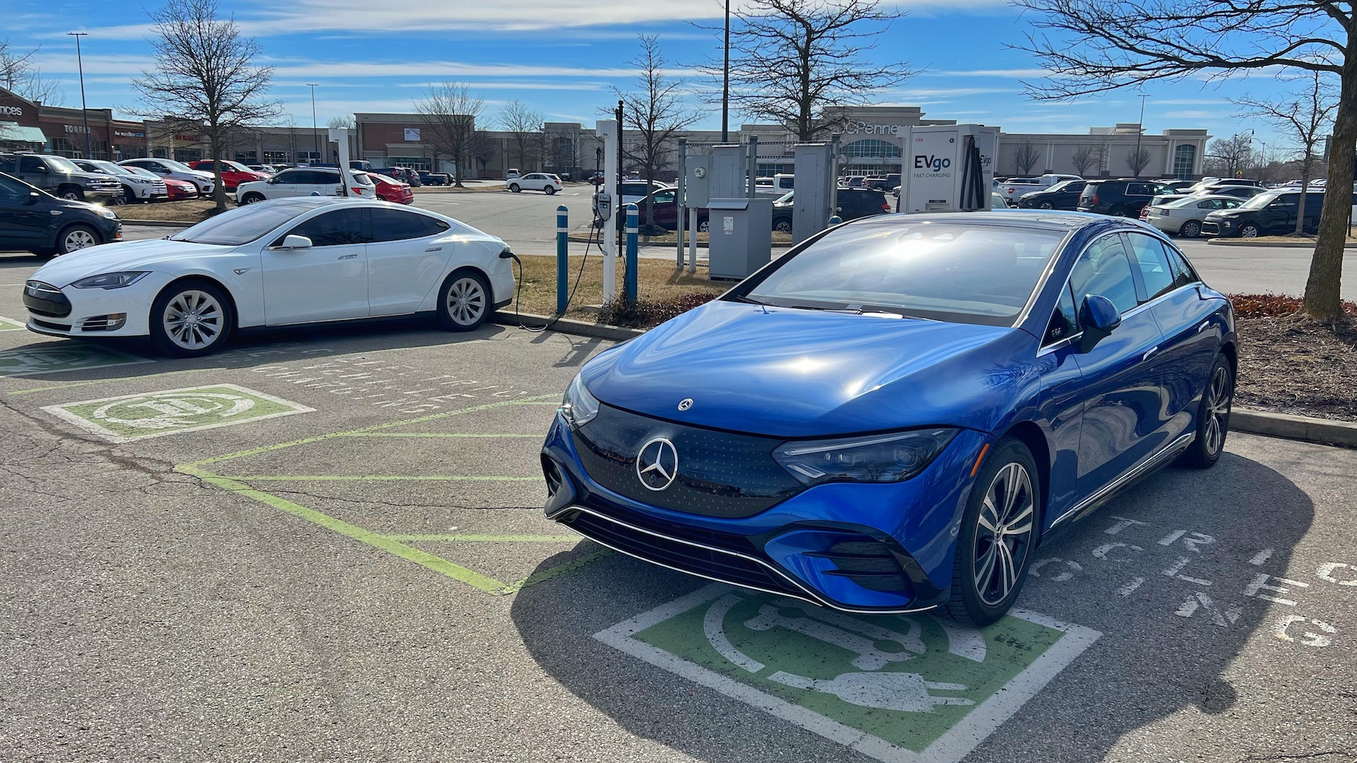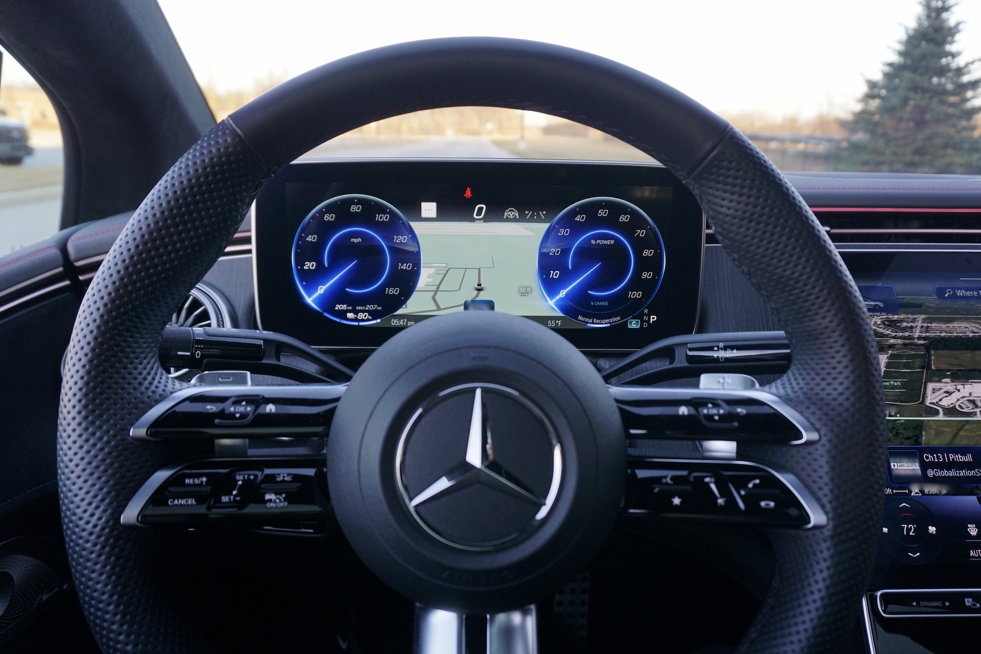 I used a variety of chargers ranging from the slowest Level 1 to DC fast chargers during my week with the EQE, and I didn’t experience any issues. ChargePoint, EVgo, and Electrify America had their stuff together in Indianapolis. The biggest number I ever saw on the dash was 255 miles of range, though it showed a potential 266 miles had I let the car charge a while longer. The fastest charging rate I experienced was about 125 kW, though it would average somewhere in the 90s at a DC fast charger. Despite temps hovering around in the low 30s during my test, I didn’t experience any drastic parasitic battery loss overnight, and most of my journeys resulted in average range loss unless my right foot was feeling happy.