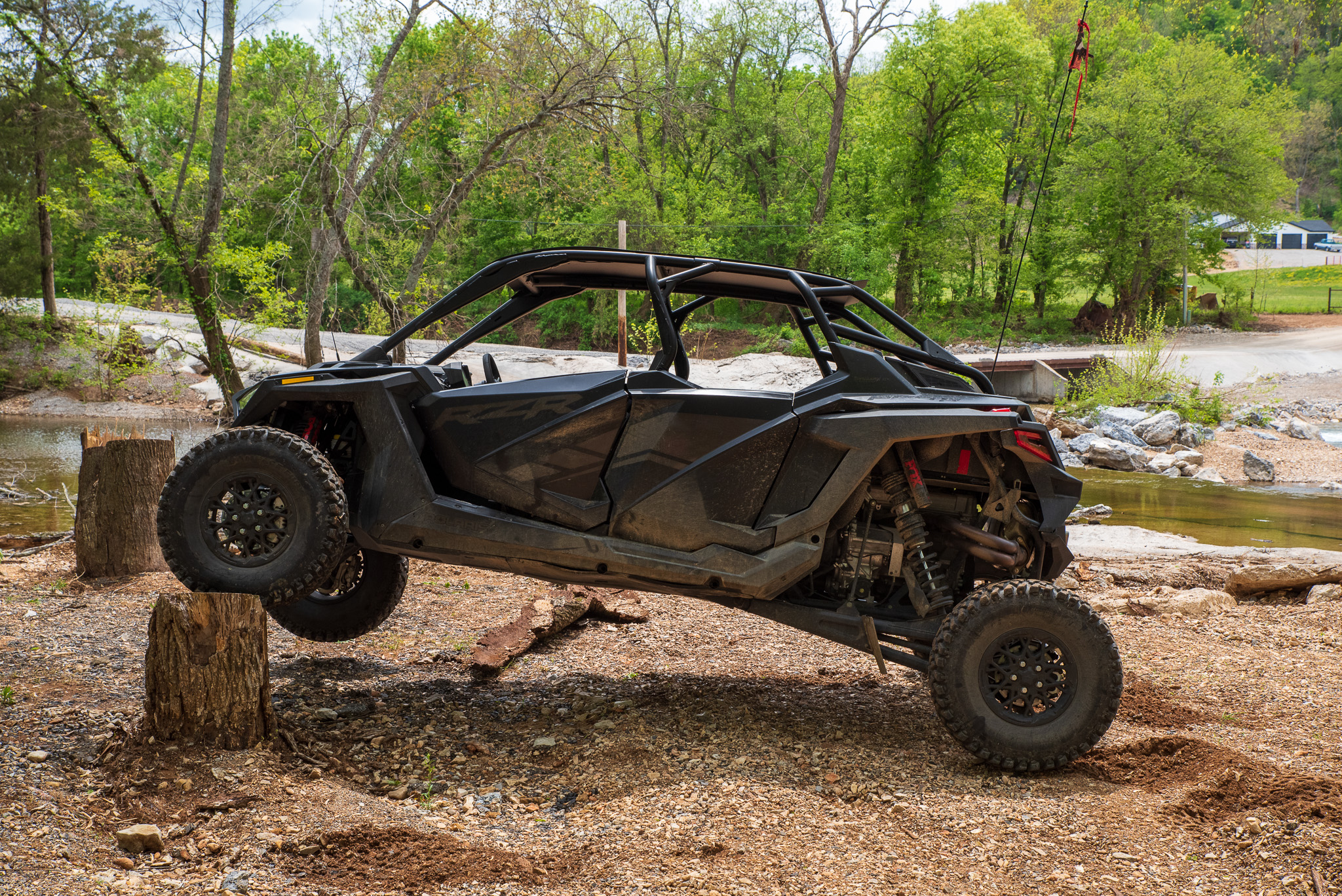 If you aren’t winding it out, you might as well be tackling stupid obstacles in it. I could hardly find a spot to stump it at our creekside property—and yes, I tried with a literal tree stump. Even at a little more than two feet tall, the Pro R climbed up it with one tire while the other sat a few inches above the ground at full droop. It almost can’t be bothered.