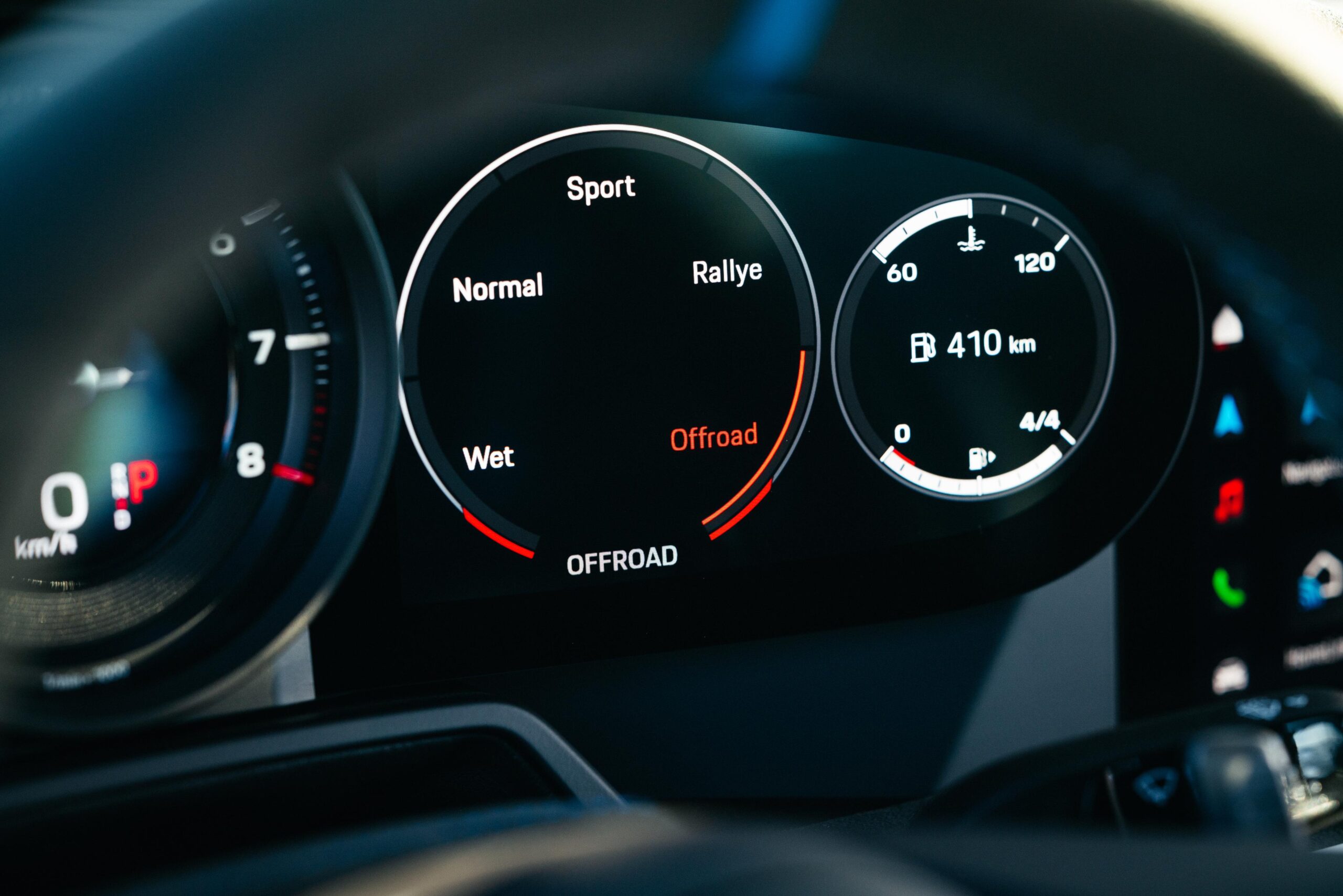 Rallye mode is another Dakar-exclusive party trick, where the all-wheel-drive system switches to a much stronger rear bias. This is great for sliding around on dirt roads and gravel tracks; if you want to cosplay as a rallycross driver, this is the way to go. Switching to Rallye mode also changes the transmission mapping to hold gears for longer periods of time, letting you keep the flat-six running in the heart of its powerband, but an overriding up- or downshift is just a pull of a paddle shifter away.