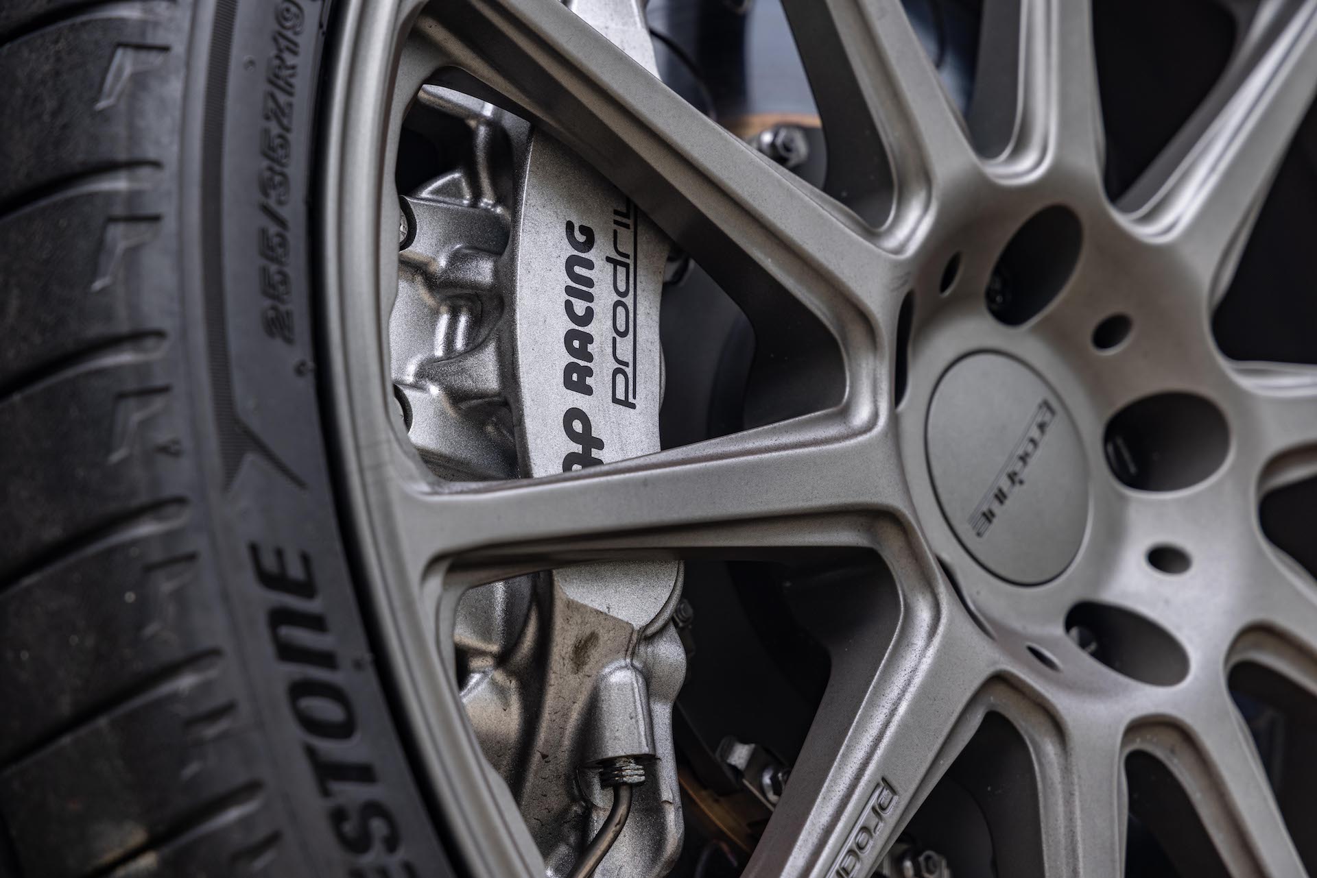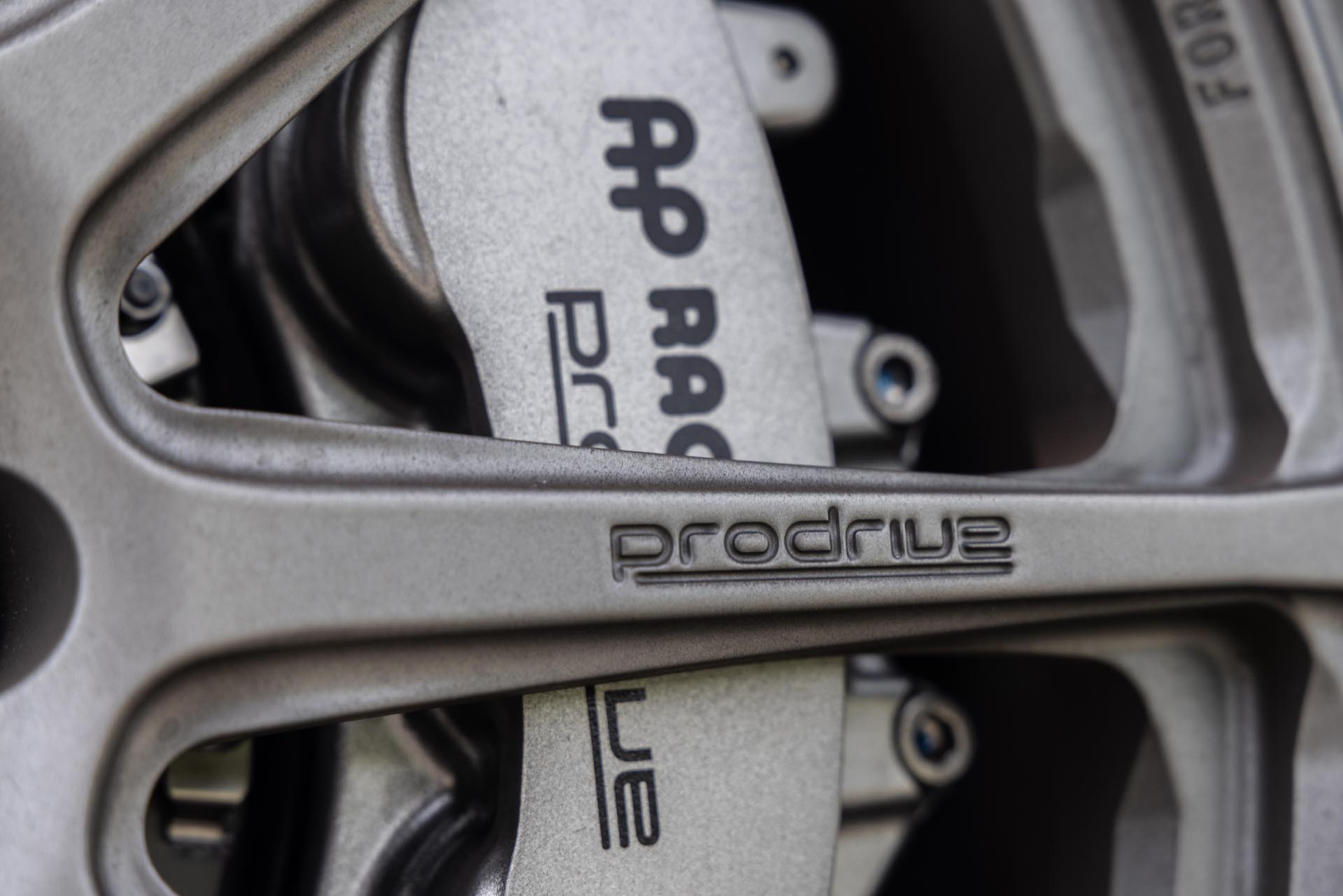 While the front end was left alone, the car’s profile got plenty of love from Prodrive. Custom fender flares widen the car by 30 mm and are painted to match, giving the car more visual oomph. Of course, there’s also a sweet set of gunmetal gray Prodrive wheels also borrowed from the P25. These are wrapped in 255/35 R19 Bridgestone Potenza Sport tires which provide exceptional grip without sacrificing ride comfort or multi-season performance. Peeking out from behind those Prodrive wheels is another considerable upgrade to the WRX: AP Racing brakes. The front gets six-piston calipers clamping down on 380-mm rotors while the rear gets four-piston units with 343-mm rotors. All four corners get sport pads for better braking performance.