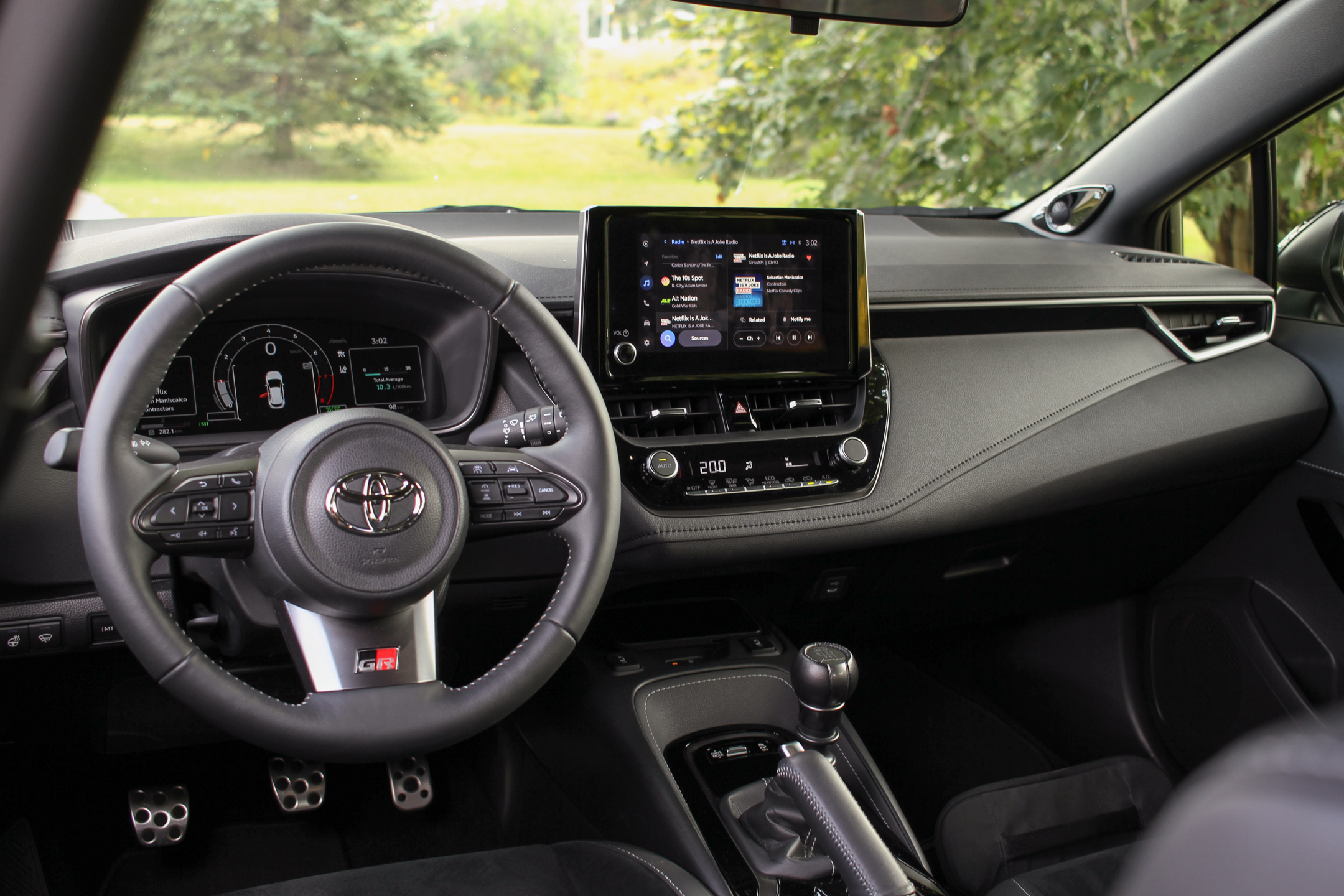 In short, sitting in a stationary GR Corolla mostly feels like, well, sitting in a stationary Corolla. Fire up that three-cylinder, though, and things get a little more special.