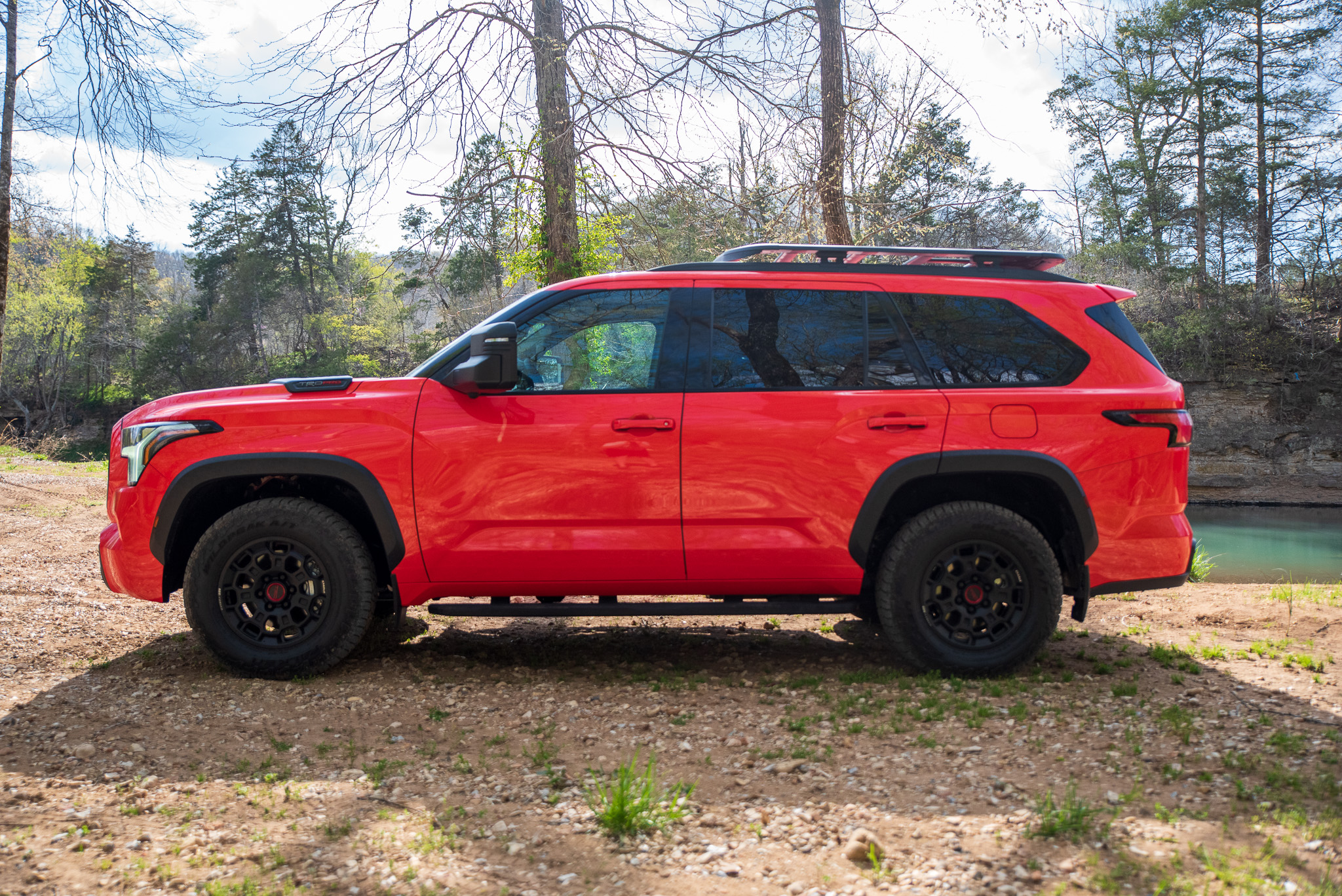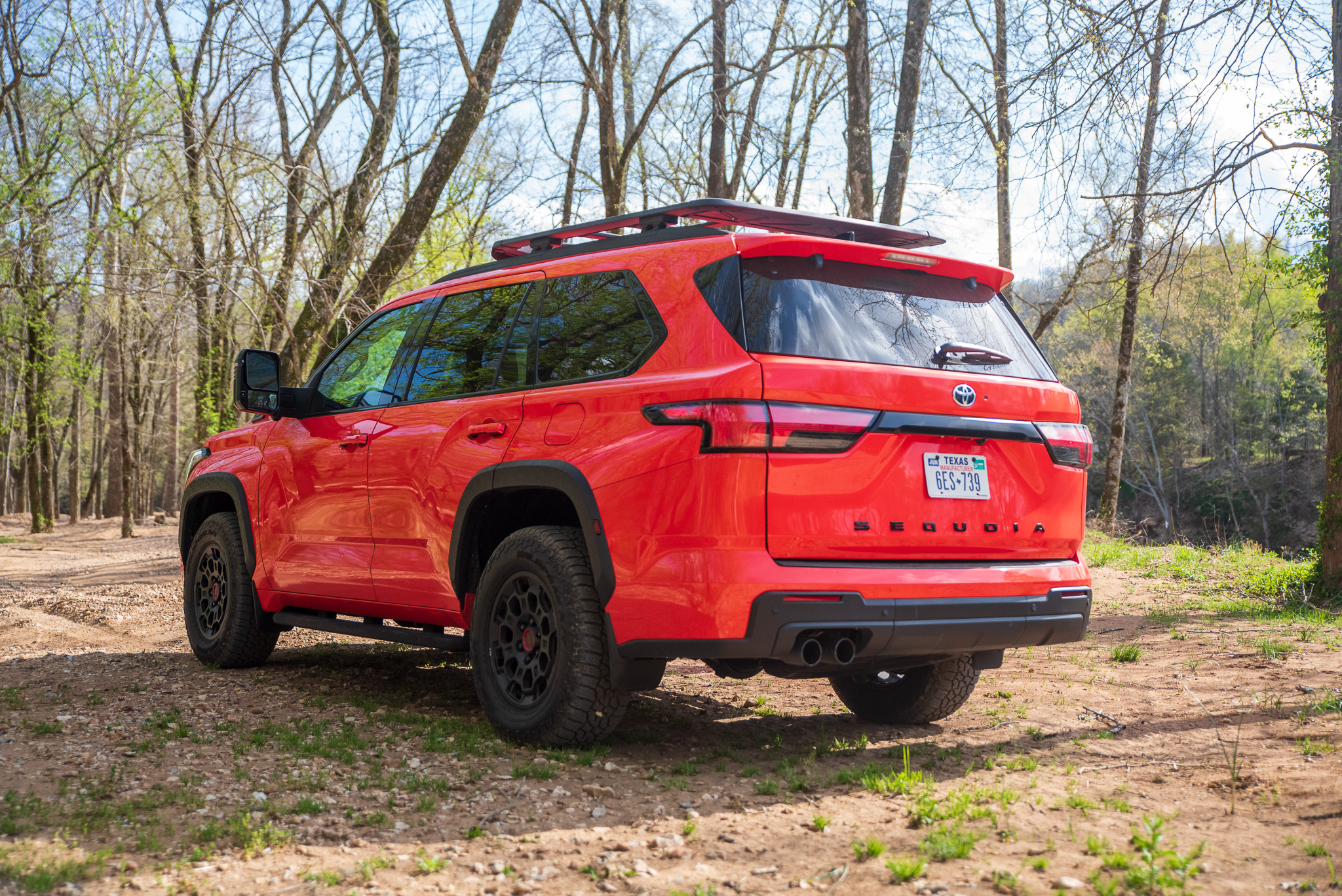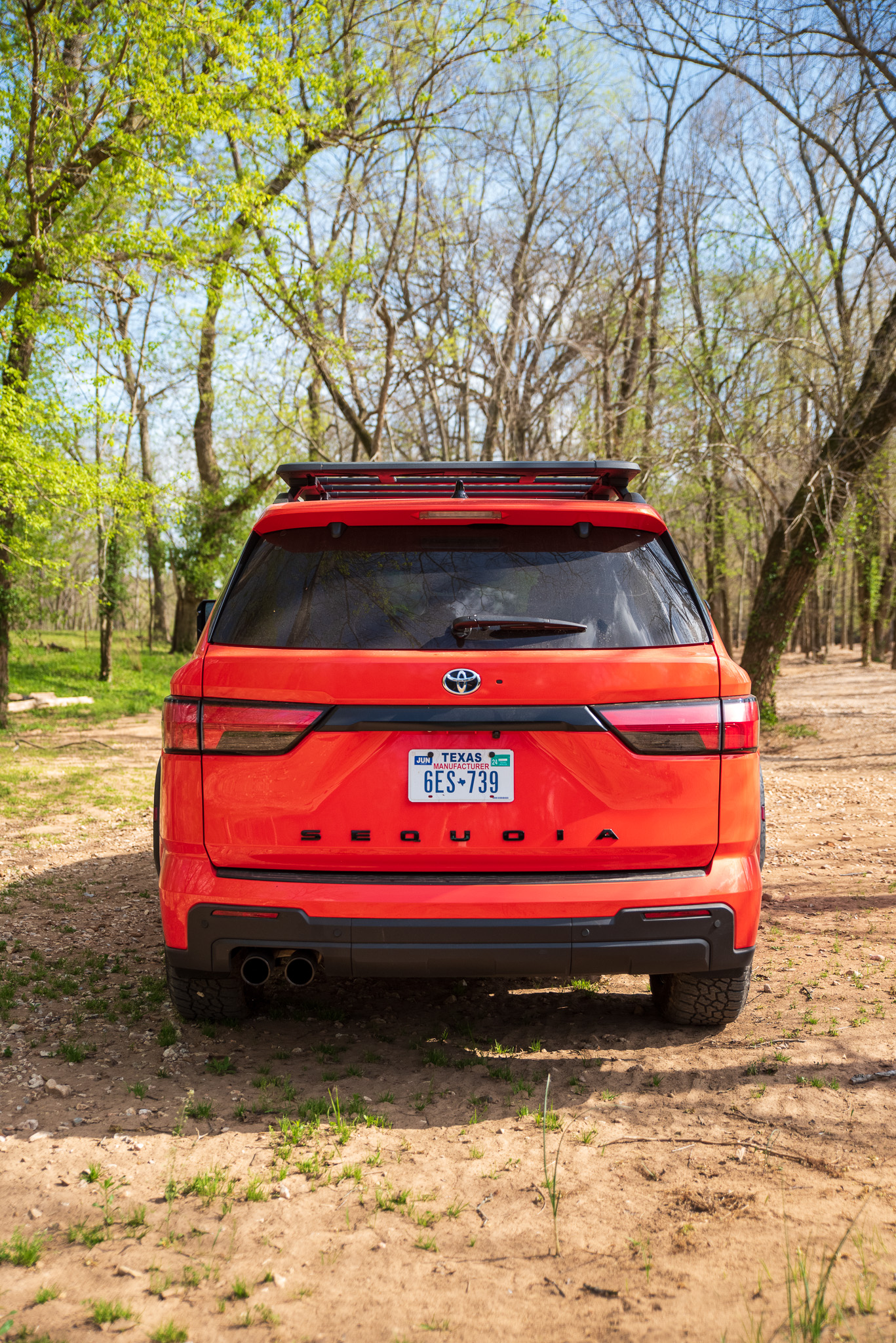 Most everything on the Sequoia TRD Pro comes standard, save for a few features like the power tow mirrors ($290), panoramic roof ($500), and roof rack ($1,695). The Solar Octane paint job on my tester also cost an additional $425, though the other colors that don’t clash with the red TRD accents are $0 and look better.