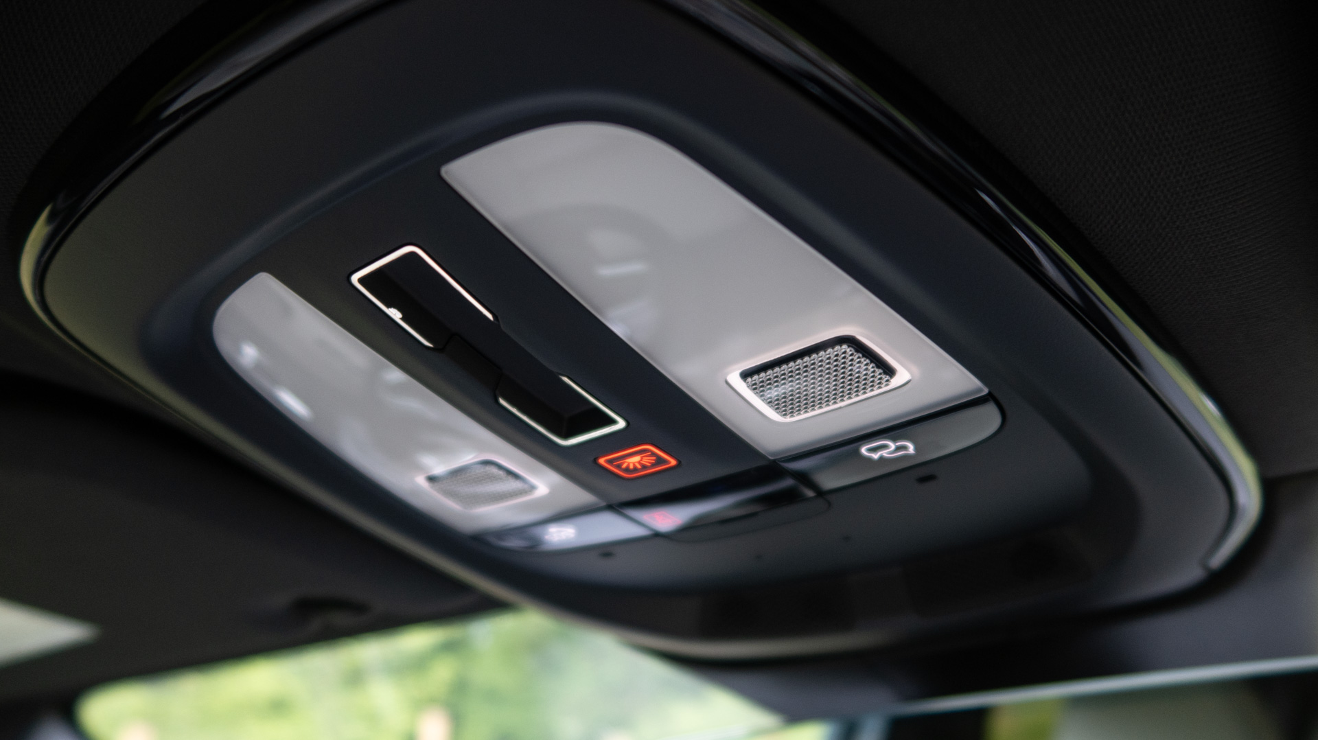 More specifically, the shifter is an illuminated crystal (literal jewelry), and the door handles are gorgeous things that are almost shaped organically, like symmetrical pieces of tree, but chrome. The seat bolsters are shaped a little like cartoon clouds and just the absolute perfect tautness—sliding into them hit me with the joy of cool, freshly-washed bed sheets but they feel so thick you might think they’re knife-proof. They certainly seemed dog-claw proof, though I did run a cover between our animals’ paws and the seats just to be safe.