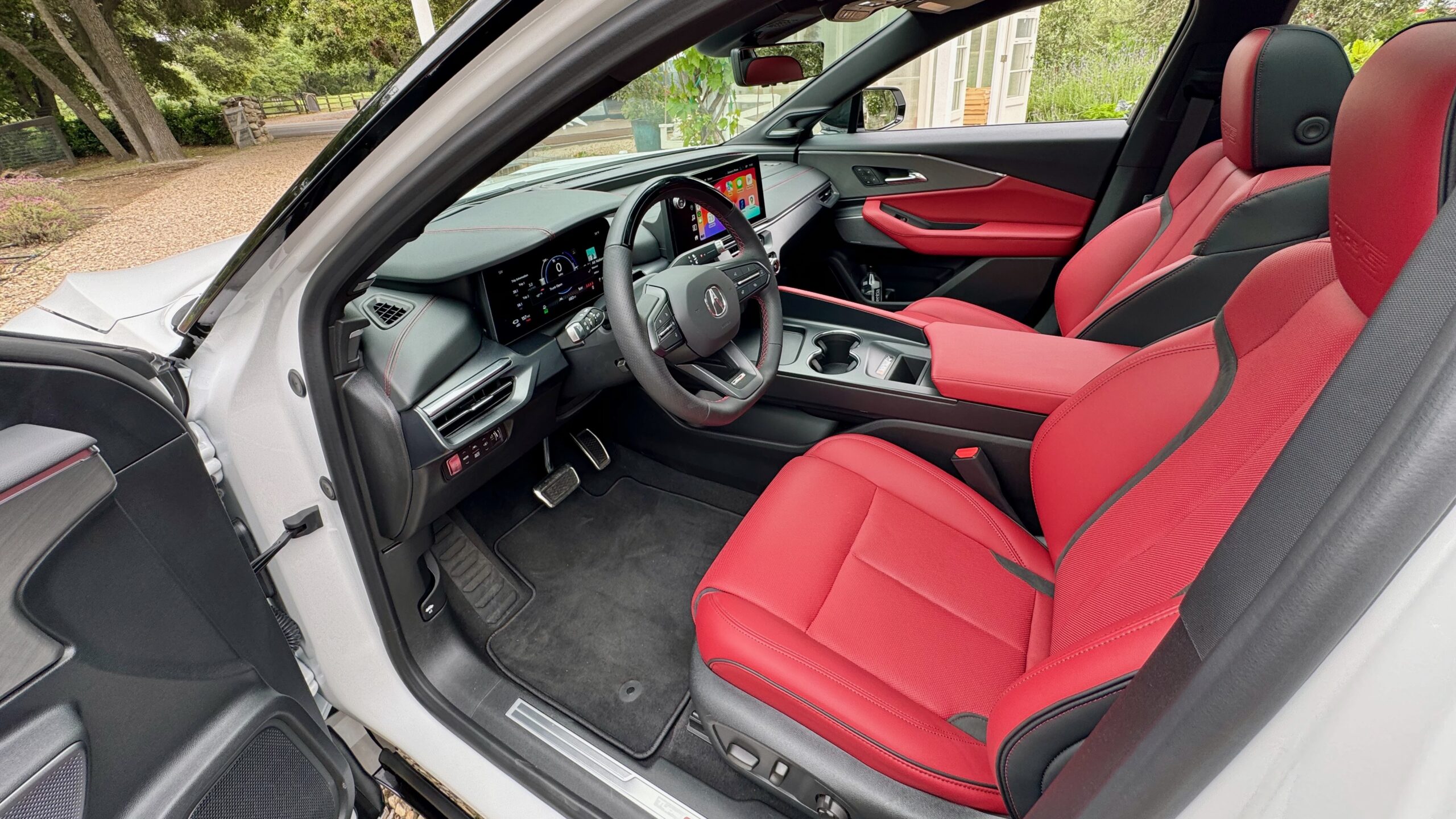 Inside is another mixed bag. The interior of the original ZDX was referred to by one of my old coworkers as a “button orgy” after counting 83 physical interfaces—excluding window, mirror, and windshield-wiper switches. Luckily, the new ZDX features a perfectly sized get-together of buttons on the center stack. Things like HVAC, seat heating and ventilation, and even the volume for the 18-speaker Bang & Olufsen stereo are done by individual physical controls. The seats are well-shaped and covered in soft leather. There are more interior surfaces and colors than I cared to count. Some are actual aluminum and chrome, others are various colors and molded textures of hard plastics. It makes for an excessive amount of visual noise, especially on the door panels. It blends together more cohesively on the black interior, and I’m guessing if you opt for white or red leather, you’re OK with some contrast.