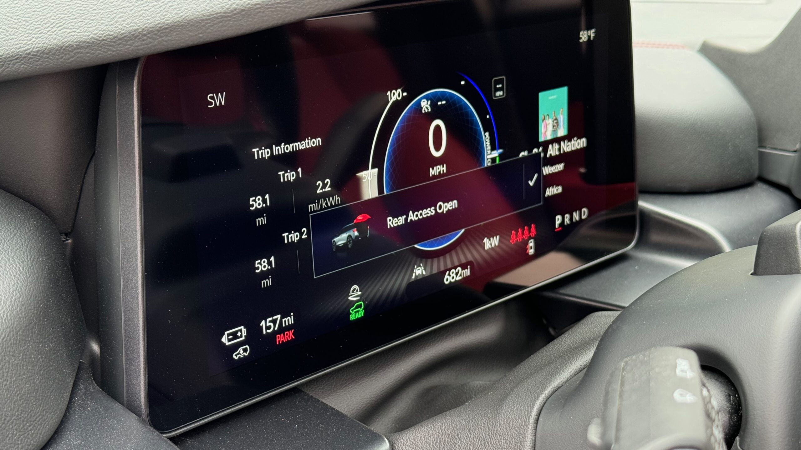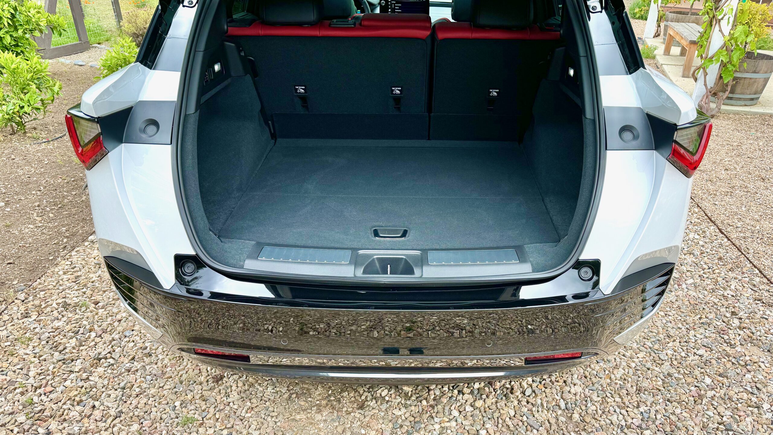 The backseat is more than large enough for adults, though only two comfortably. The trunk is decent-sized, with nearly 30 cubic feet of cargo space behind the second row, and double that with those seats folded down. There are USB-C ports—two front, two rear—along with a wireless phone charger up front. Apple CarPlay and Android Auto are both wireless and the car comes with three years of Google Built-In service, for whoever uses that. My actual time in the car was under three hours. It was perfectly comfortable for that amount of time, and I would imagine, even twice that.