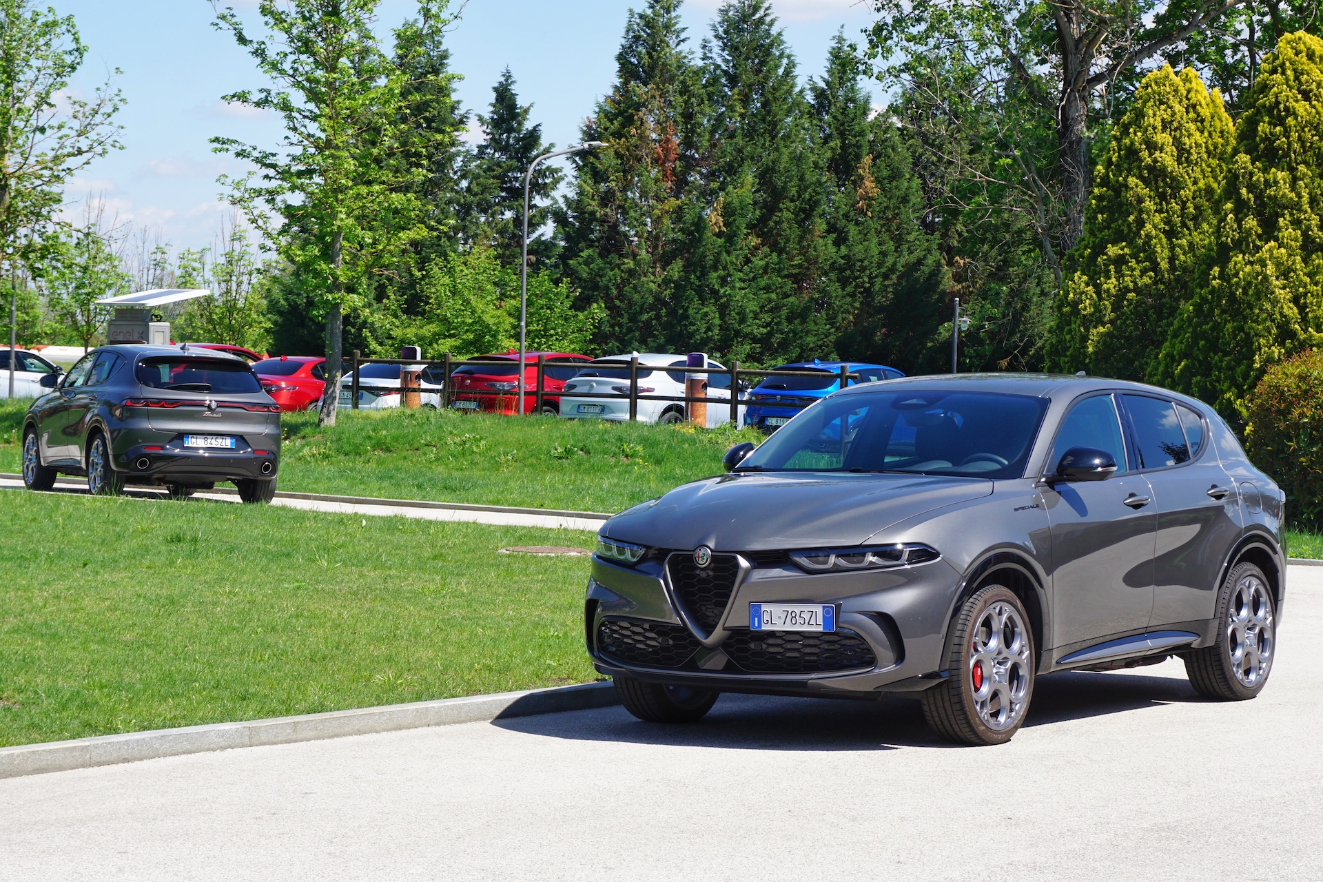 I peeked at the speedo right before he flicked the steering wheel hard to the left and into a blind corner. It read 141 km/h or 87 mph. Two seconds later, I flew forward after a brutal stab of the brakes heading into the track’s slowest corner, a hairpin taken at about 30 mph. I heard the tires scream for another while and my helmet smack the B-pillar a few more times before he finally said a word: “This is a copy of Curva Grande, from Monza, but we added this next chicane while developing the 8C Competizione.” Downshift, downshift, brake, turn right, turn left, full gas. The car? The 2024 Alfa Romeo Tonale plug-in hybrid crossover. The driver? Domenico Bagnasco, head of Alfa’s high-performance vehicles. The track? The brand’s own test track nestled in the mountains between Milan and Turin.