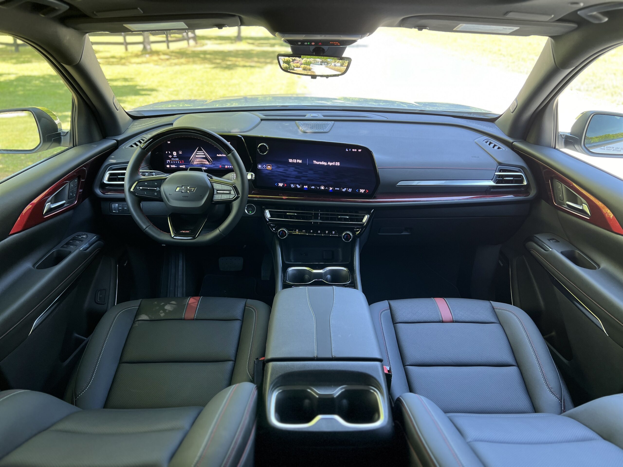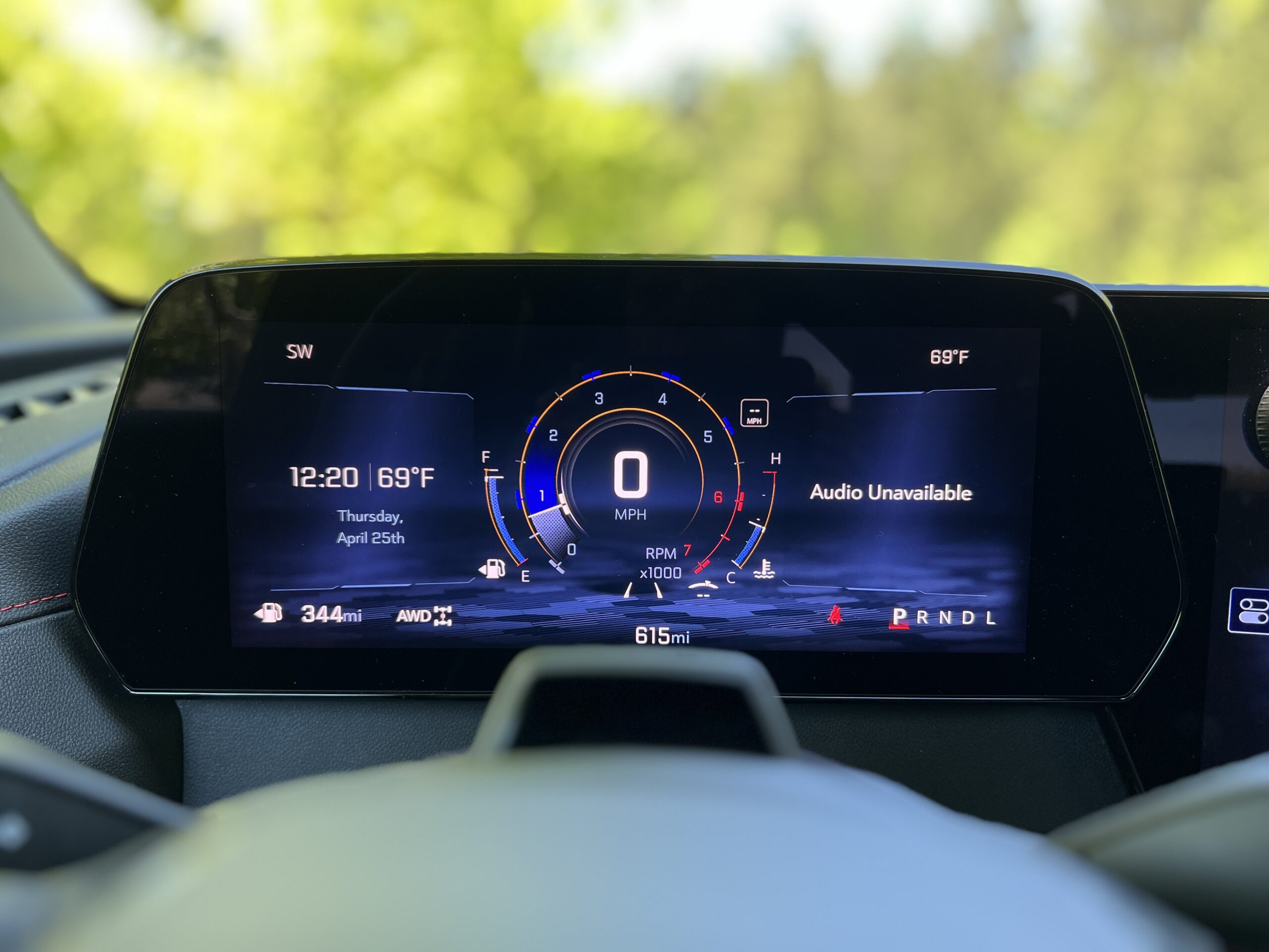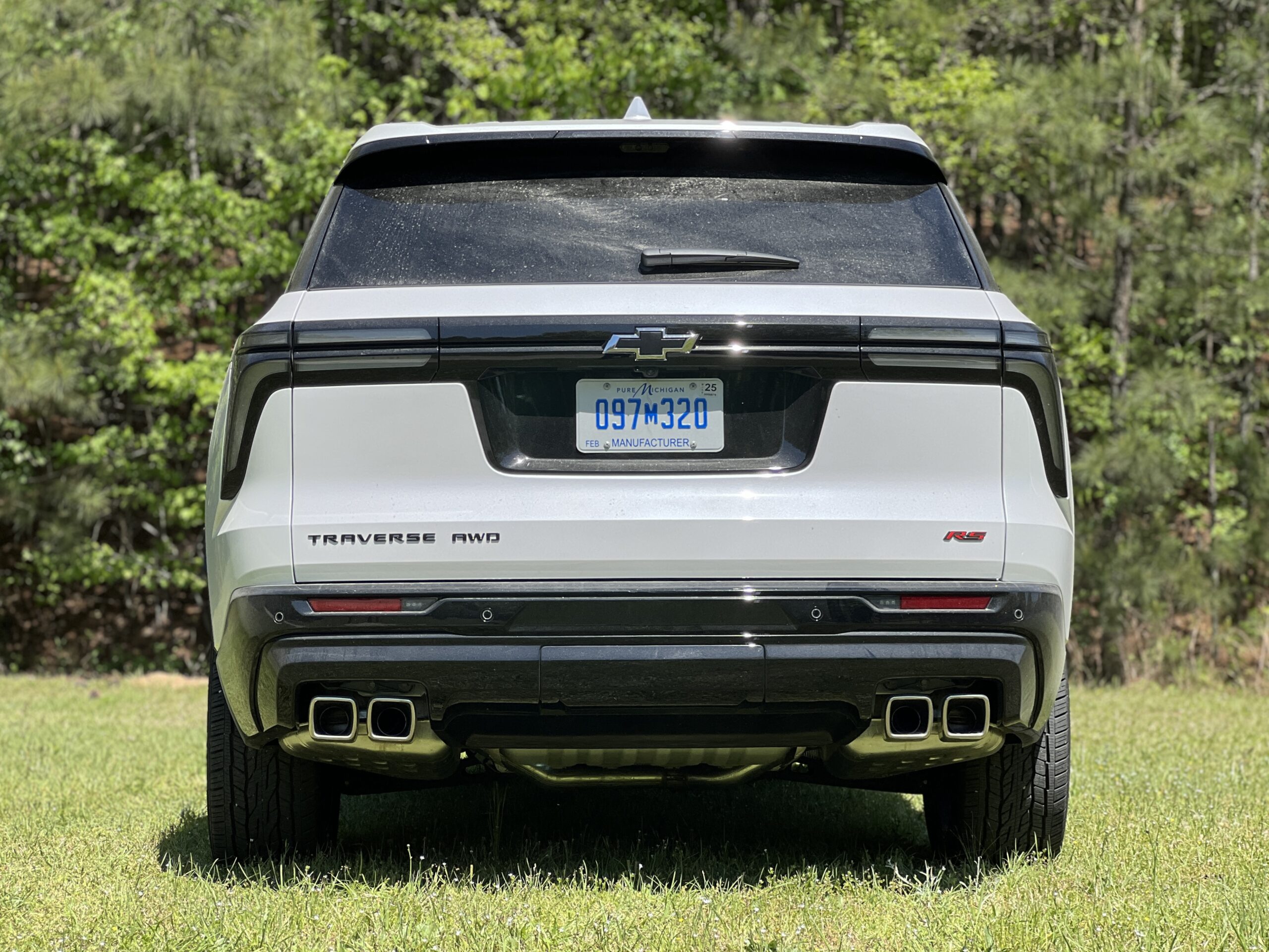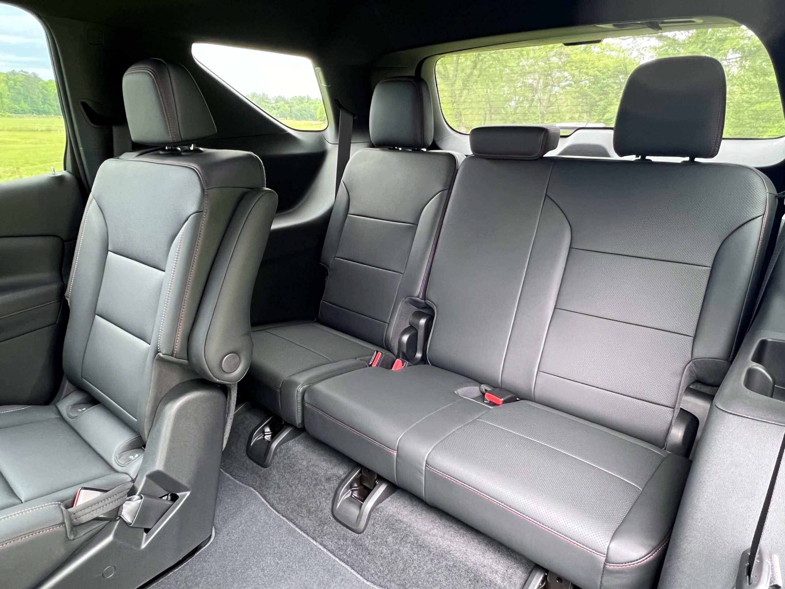 I’ll preface this by saying that every Traverse I tested was an early production model. The biggest letdown with the new engine is the sound. V6s traditionally offer a relatively guttural growl. Even if it’s not powerful, it sounds like it is! But in a large vehicle with a cavernous engine bay such as the Traverse, the four-banger sounds distant. Off the line at low rpm, regardless of drive mode, its whine and whirr is more befitting of a small sedan, not a three-row crossover. Its aural aspirations are just that: wishful thinking. To be fair, yes, the 2024 Traverse has more power, but it’s also nearly 200 pounds heavier than before. The RS AWD which weighed 4,602 pounds last year now weighs 4,792. Might as well put “+18 hp” on a sticker and call it even.