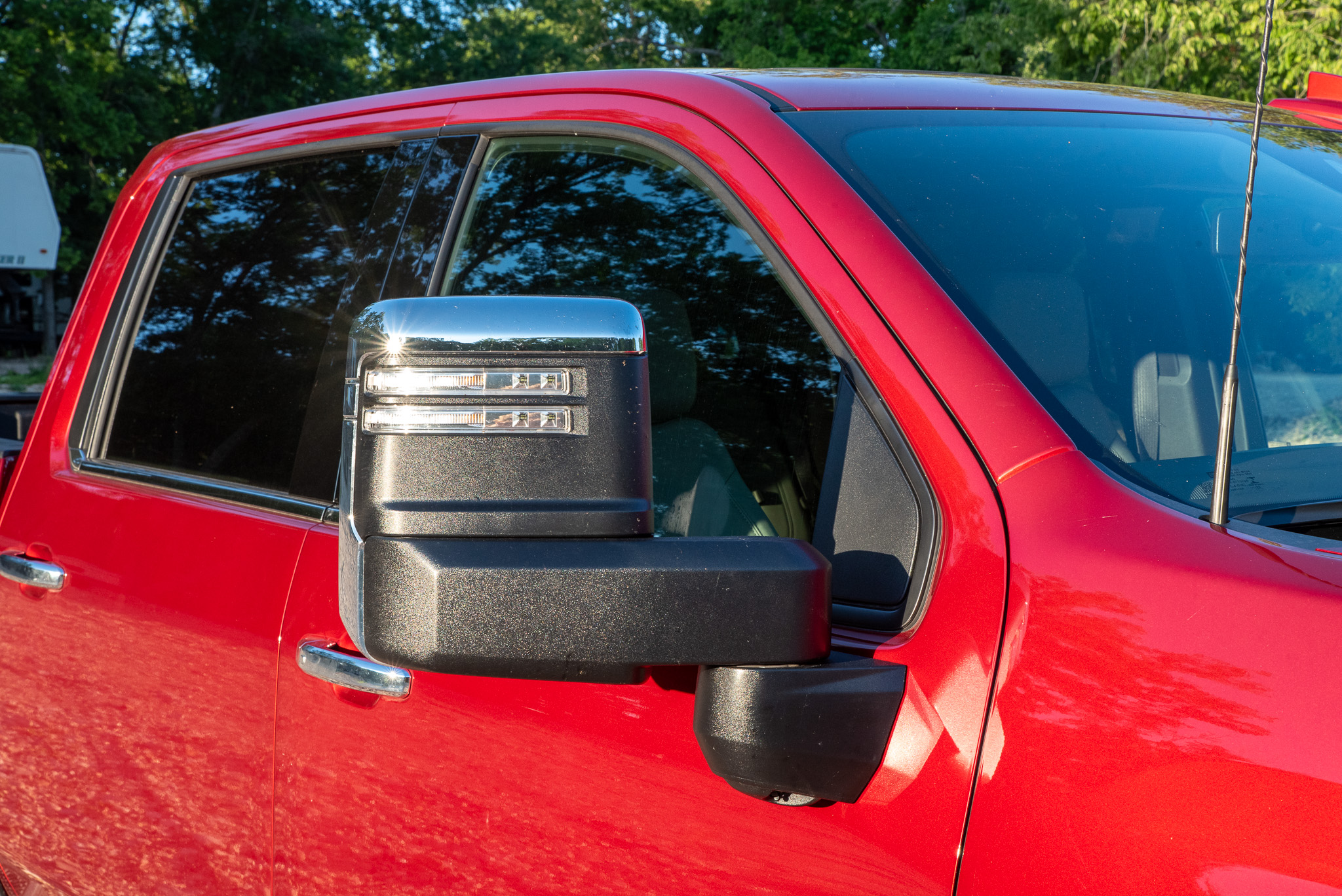 The Duramax diesel engine was the most expensive add-on at $9,490 right off the bat. Then there were the power steps ($2,295); LTZ Convenience Package which added ventilated front seats, wireless charging, and a Bose premium sound system ($1,595); 20-inch chrome wheels ($1,400); a safety package with park assist, trailer blind zone alert, rear cross-traffic alert, and surround-view cameras ($1,395); gooseneck and fifth-wheel prep package ($1,090); the cleverly named LTZ Convenience Package II with rear-sliding window, heated second-row seats, and adaptive cruise control ($1,050); power sunroof ($995); Radiant Red paint ($435); Multiflex tailgate ($445); and finally, all-terrain tires ($200).