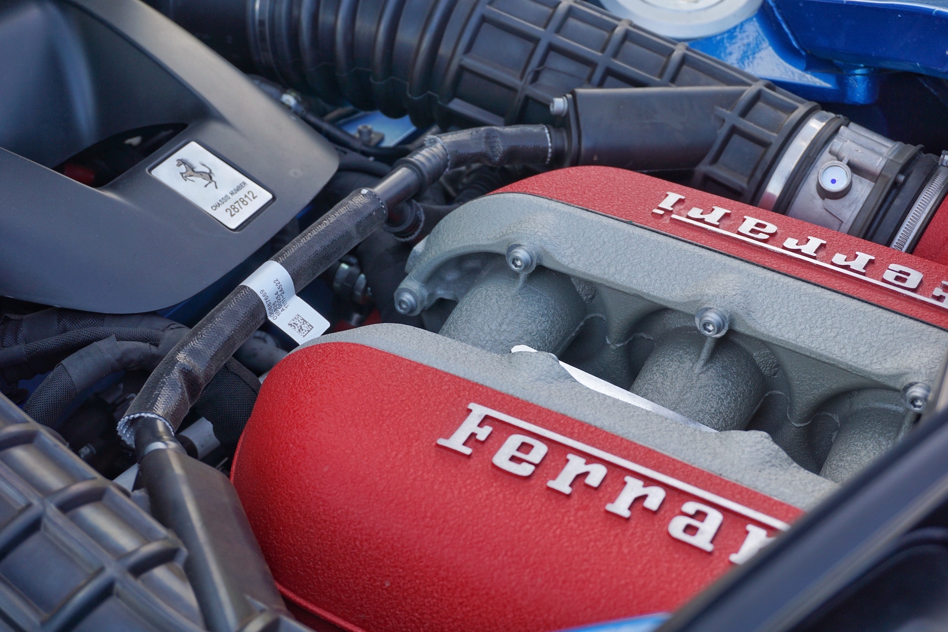 The low-sitting front end allows the massive V12 to breathe, but more specifically, it directs airflow in a number of ways and for multiple purposes. The air intakes around the DRLs guide air through the top of the tires, while the “floating” fender walls and flares serve as exhaust to excess air that might otherwise generate lift. The grille feeds air to the V12 so it can sing its song all the way up to 8,250 rpm while the smaller lateral intakes help with wake management by channeling air around the wheels. Then there’s the hood, which is a massive, sculpted piece of cold-stamped aluminum. Seriously, it’s hard to understand how enormous the hood (hinged at the front, of course) is until it’s fully open before you. I’m six feet tall and it towered over me by another foot, if not more. The hood itself has two air inlets that carry over onto the side of the car à la F12—Ferrari actually calls this an “aerobridge.”