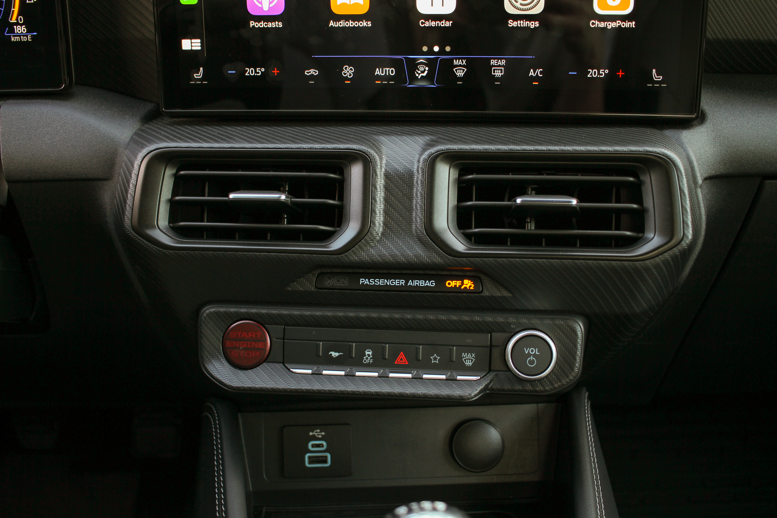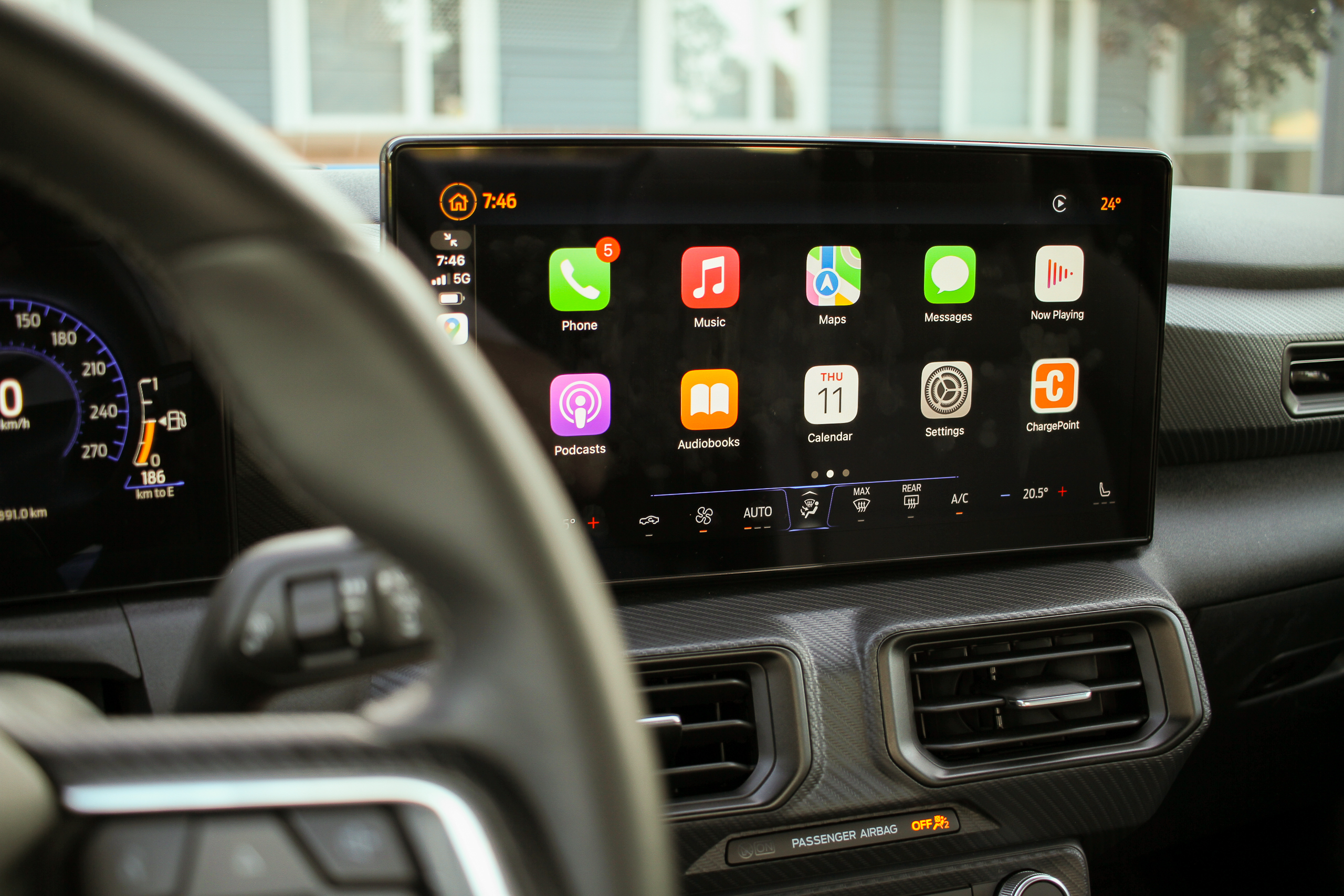 The overall UX of this car is also quite well-conceived. There’s a dedicated button on the steering wheel to adjust steering weight (normal, comfort, or sport), dedicated steering wheel buttons for drive modes, the volume knob is big, easy to find, and uncomplicated, the screens are straightforward to navigate, and Apple CarPlay is huge. HVAC is controlled within the touchscreen too, which is a shame, but you can’t win ’em all, I guess.