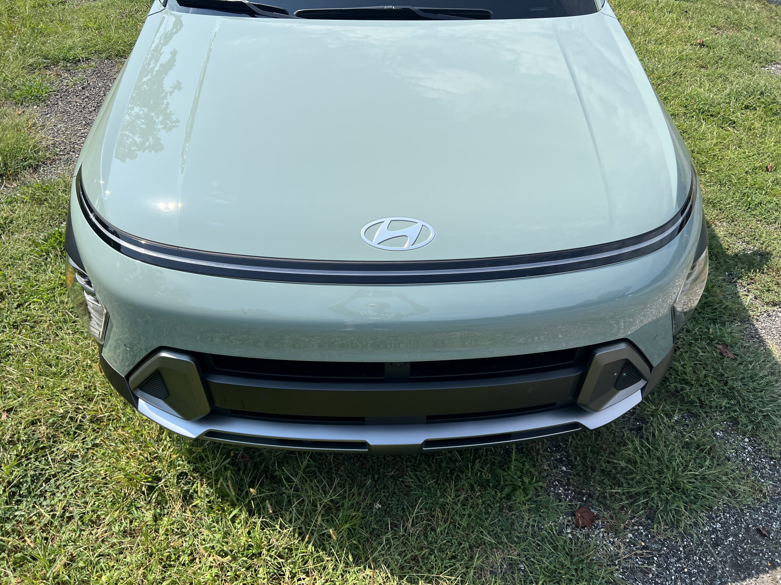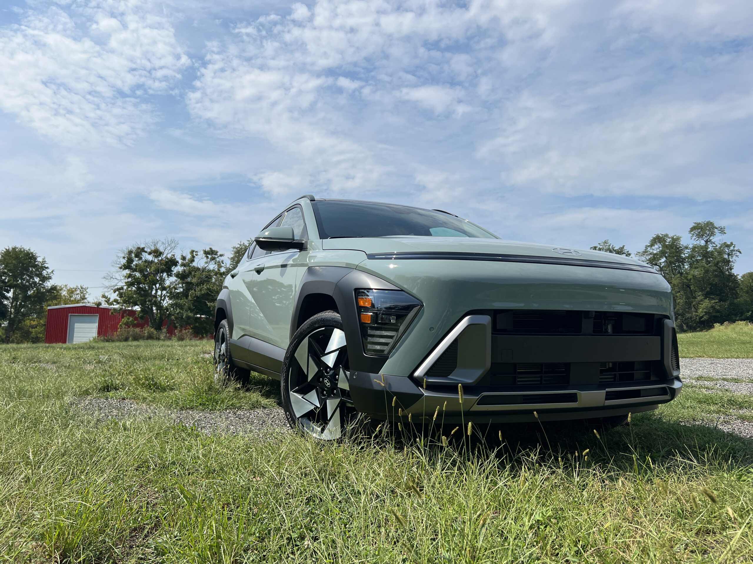 Outside, the Kona grows 5.7 inches in length over the previous model, an inch in width, and 2.5 inches in height. That gain contributes to longer overhangs, as the wheelbase stretches just 2.3 inches. Its exterior design is somehow sharp and smooth, preserving the original Kona’s signature reverse-shark C-pillar and composite light design at the front and rear. I think it looks great, particularly in tennis ball (Neoteric) yellow and Mirage Green.
