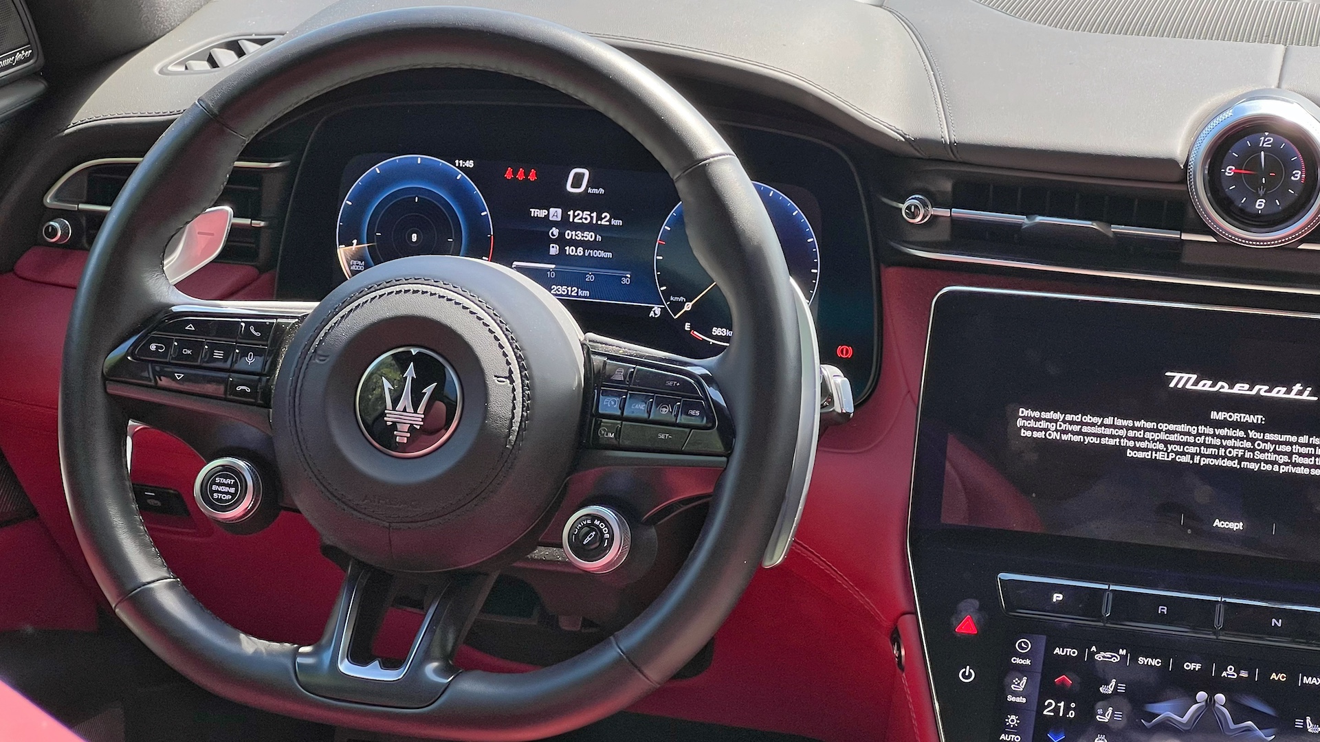 The Levante Trofeo I drove years ago had a Ferrari-derived twin-turbo V8. This wasn’t that, and my ears could tell the difference. However, this is a great-sounding V6 by all standards. It’s throaty, it’s loud, and if you play your cards right with the accelerator and paddle shifters, it’ll sing like an adolescent Pavarotti. Set to Corsa mode, the engine is loud and brash and full of attitude. Even on the highway, its personality changes as you flip through the drive modes. Corsa is a bit overkill for most driving situations, but it does squeeze everything out of the Grecale Trofeo. It took me by surprise the first time I gave it the full rigatoni on Corsa, slamming me into the back of my seat.