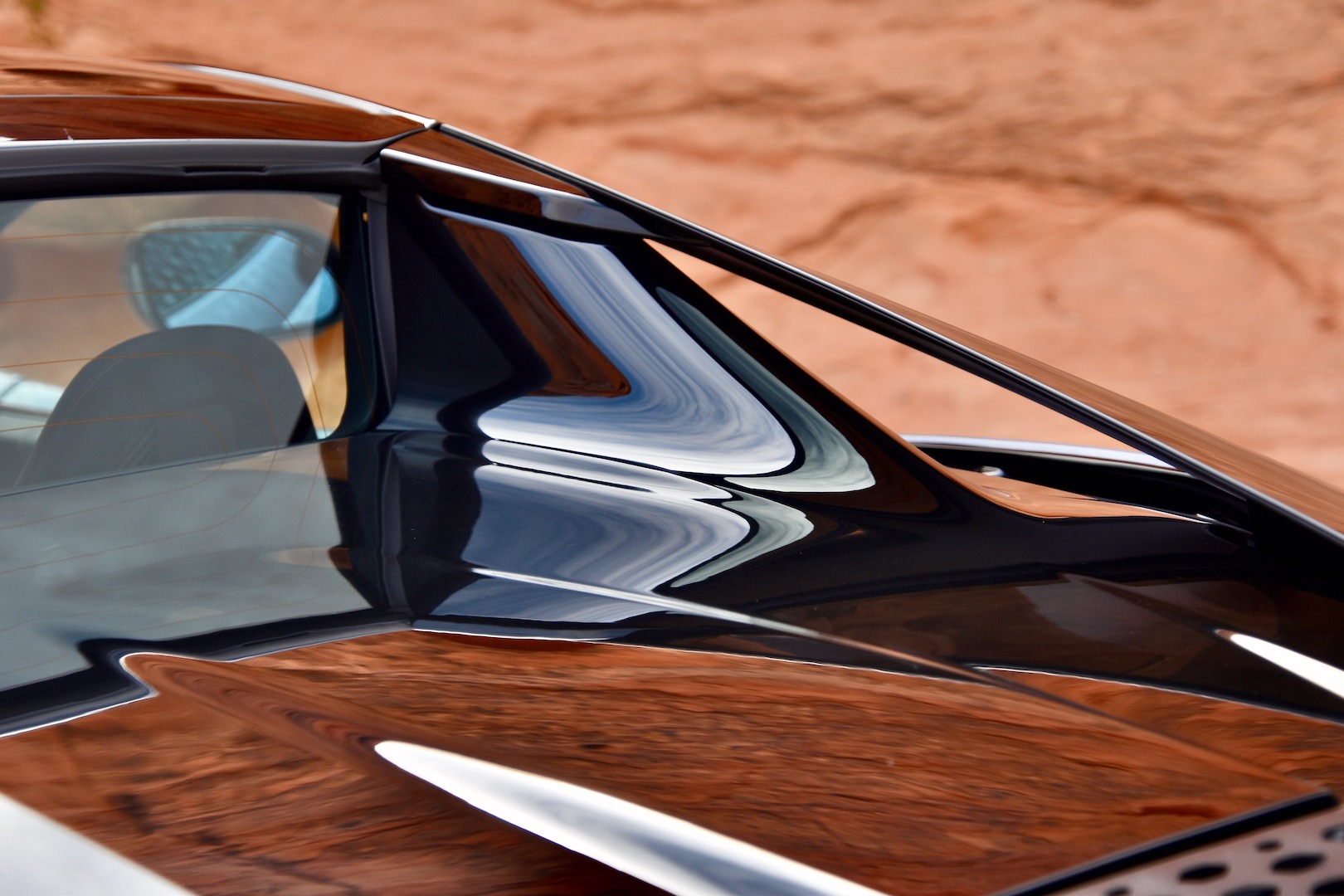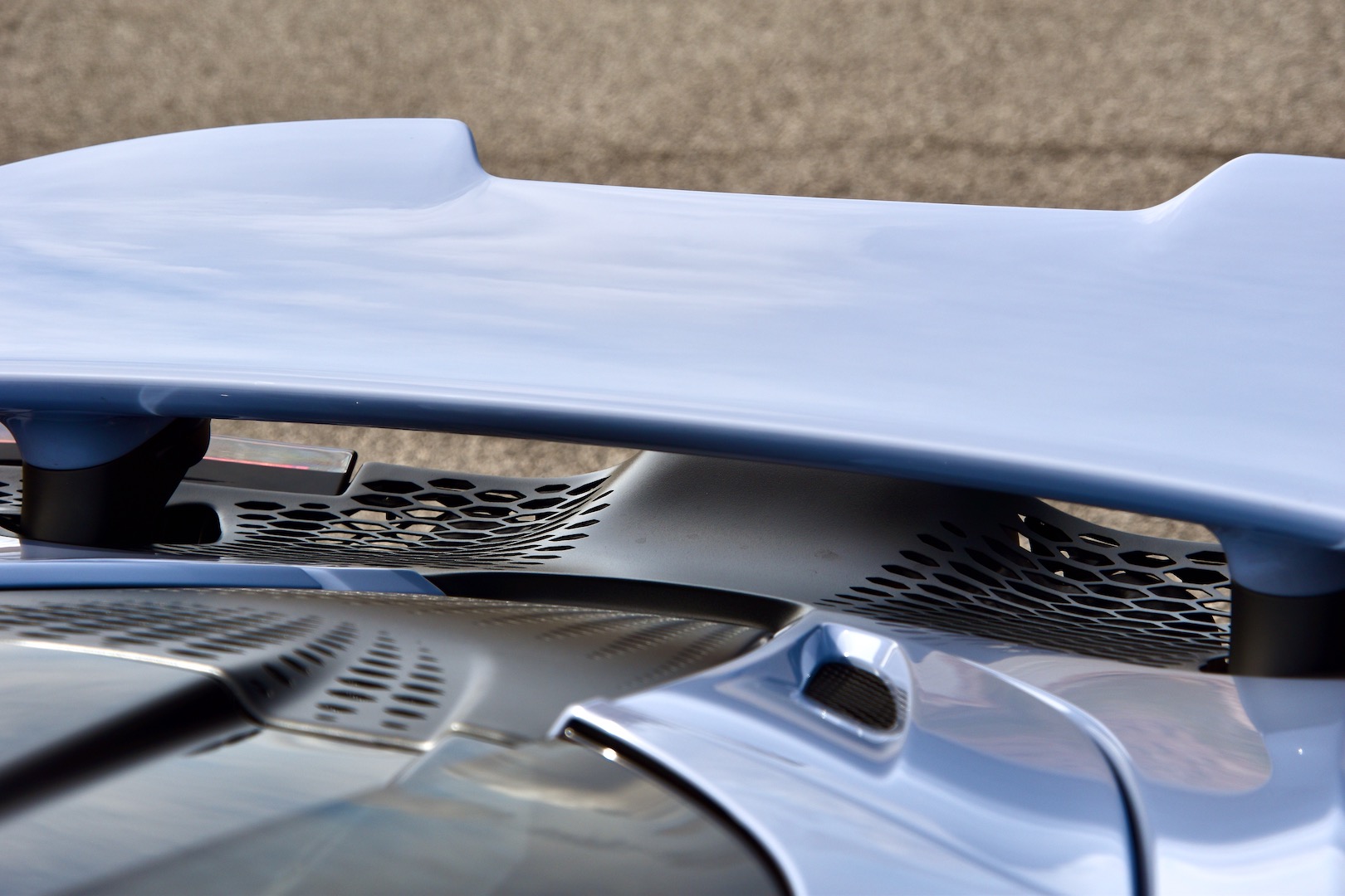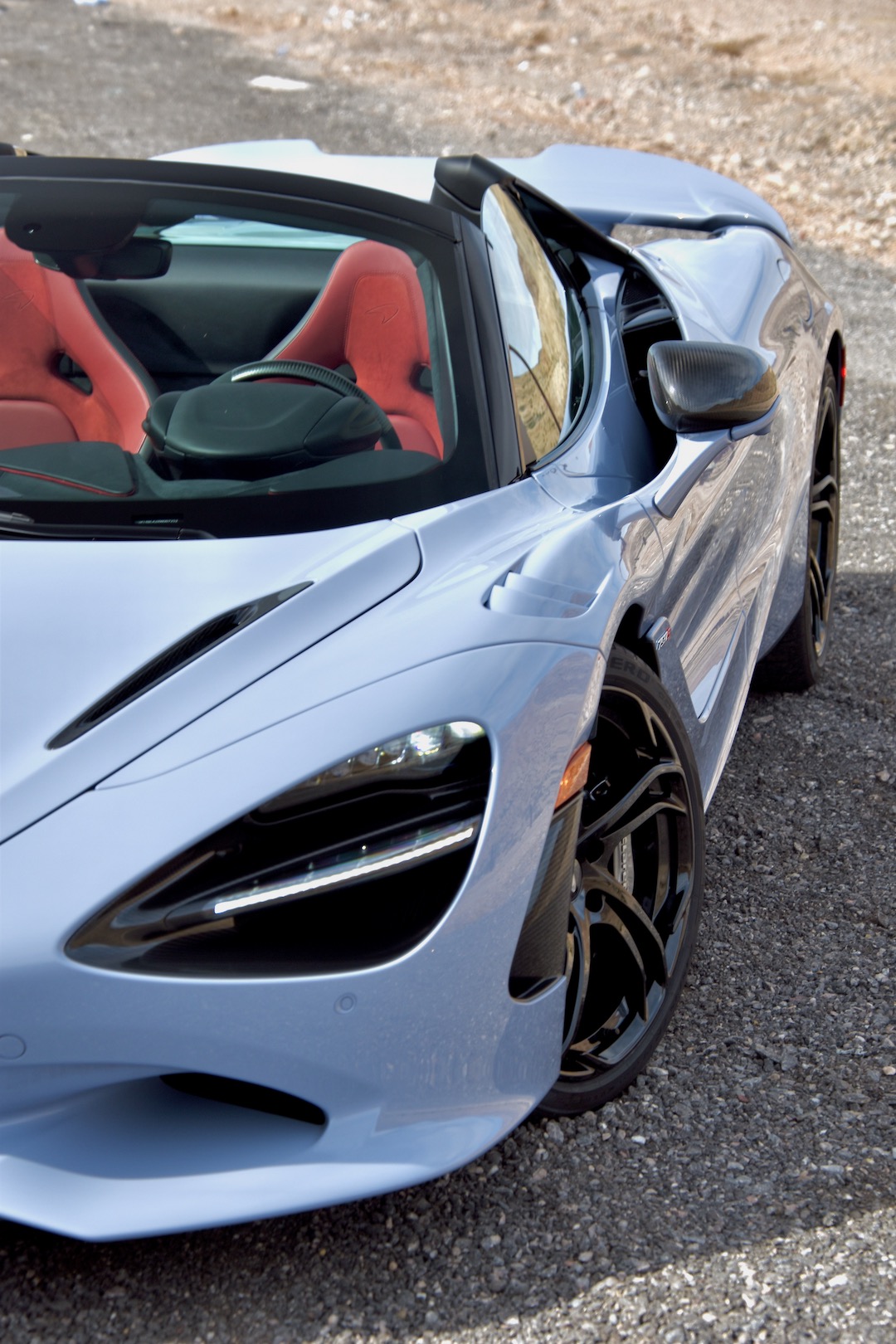 The 750S’s headlights peek out as if they’re under a mask, like the real car lies behind a veneer. It kinda does: Getting up close reveals how much of the car’s aero is hidden in a channel running through the door, fed by creases from the hood and exiting through flying buttress B-pillars. The flow converges at the extended rear wing that dramatizes the 750S’s side profile, particularly the Spider’s with its roof down.