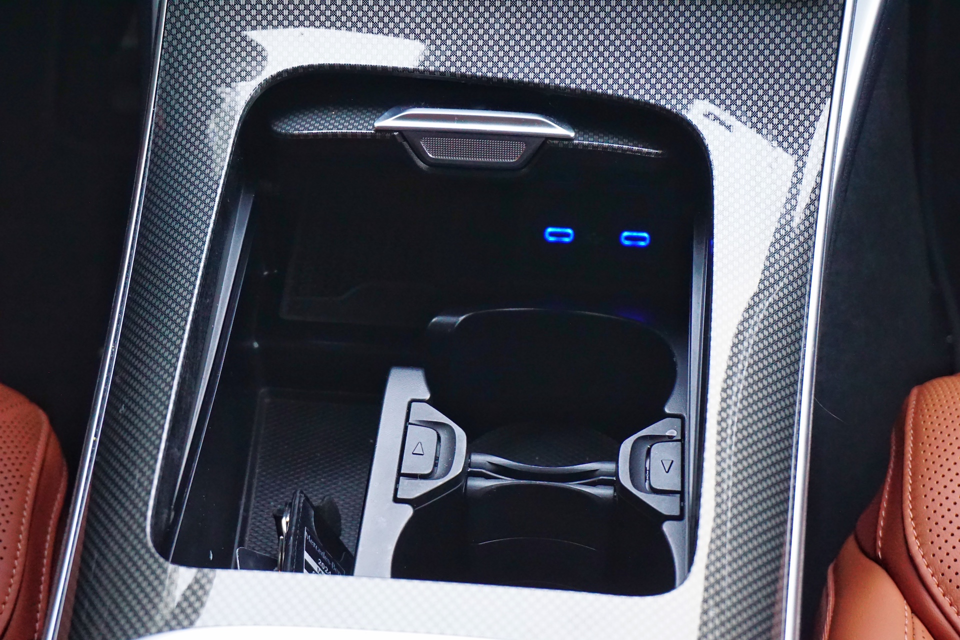 Like any modern Mercedes cabin, the focal point is the 19-inch portrait-style touchscreen in the center of the dash. It features a handful of physical buttons for controlling the driving modes, parking cameras, hazard lights, and volume, but that’s it. With the exception of the lights and wiper controls located in the stalks, everything else is relegated to the touchscreen and the MBUX operating system.
