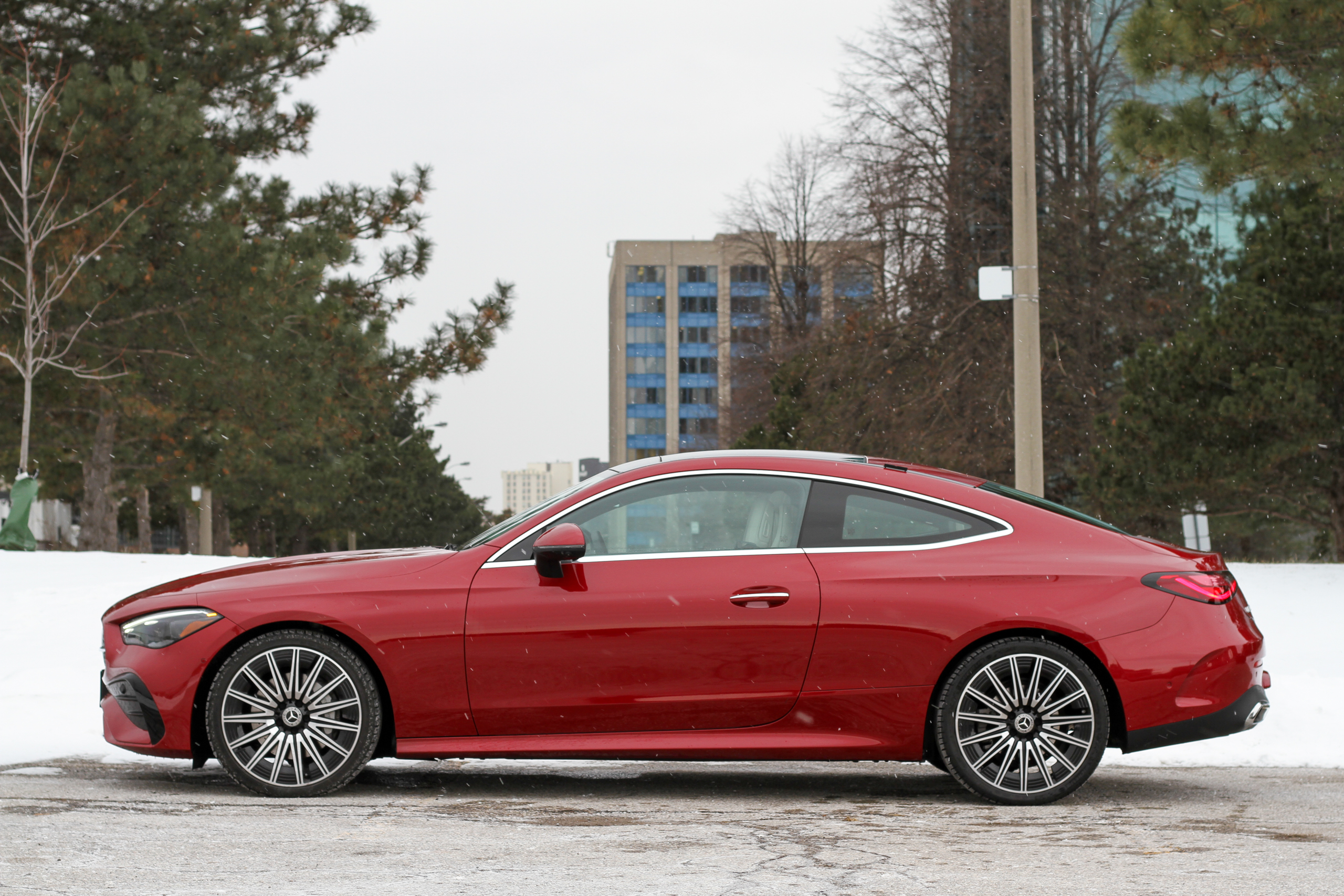 Powered by a 2.0-liter turbocharged four-cylinder making 255 horsepower (a 48-volt mild hybrid system adds up to 23 hp), the CLE300 is an enjoyably stable, capable highway cruiser. Zero to 60 mph is done in 6.2 seconds, which isn’t AMG quick but feels adequately quick as a daily driver. Decent pickup is joined by decent handling balance, too, and there’s a pleasantly effortless smoothness with which it both corners and accelerates. Highway cruising is very much this car’s strength, able to sit at over 80 mph comfortably and happily. If that’s the only sort of driving you do, the CLE300 is one of those cars that leaves you more refreshed after a drive than you were before.