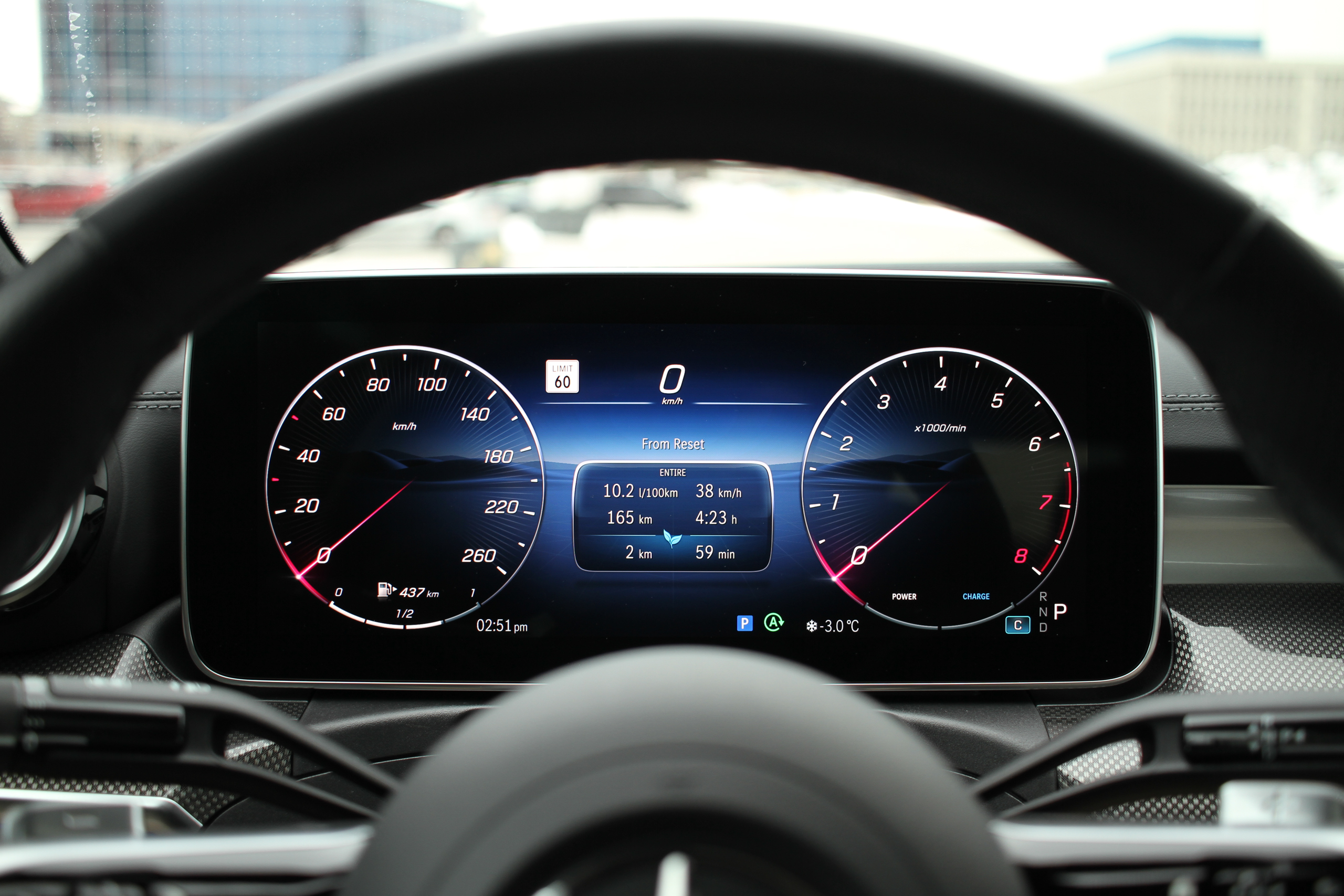 Two days into CLE possession, I got in, turned the car on, and neither of its screens turned on. In a less fancy car, this may not be that big of a deal but because Mercedes’ MBUX system relegates nearly every readout and a whole lotta input to those screens, pretty much every function outside of actual, physical driving was effectively unavailable. The engine was on, and I could put it into gear and drive around like normal. But there was no speedo, no climate controls, no backup camera, no fuel readout, no nav, no music, no HUD. This is, to put it kindly, Not Ideal. For reference, Mazda recently had to settle a class action lawsuit over infotainment systems that did this exact thing.