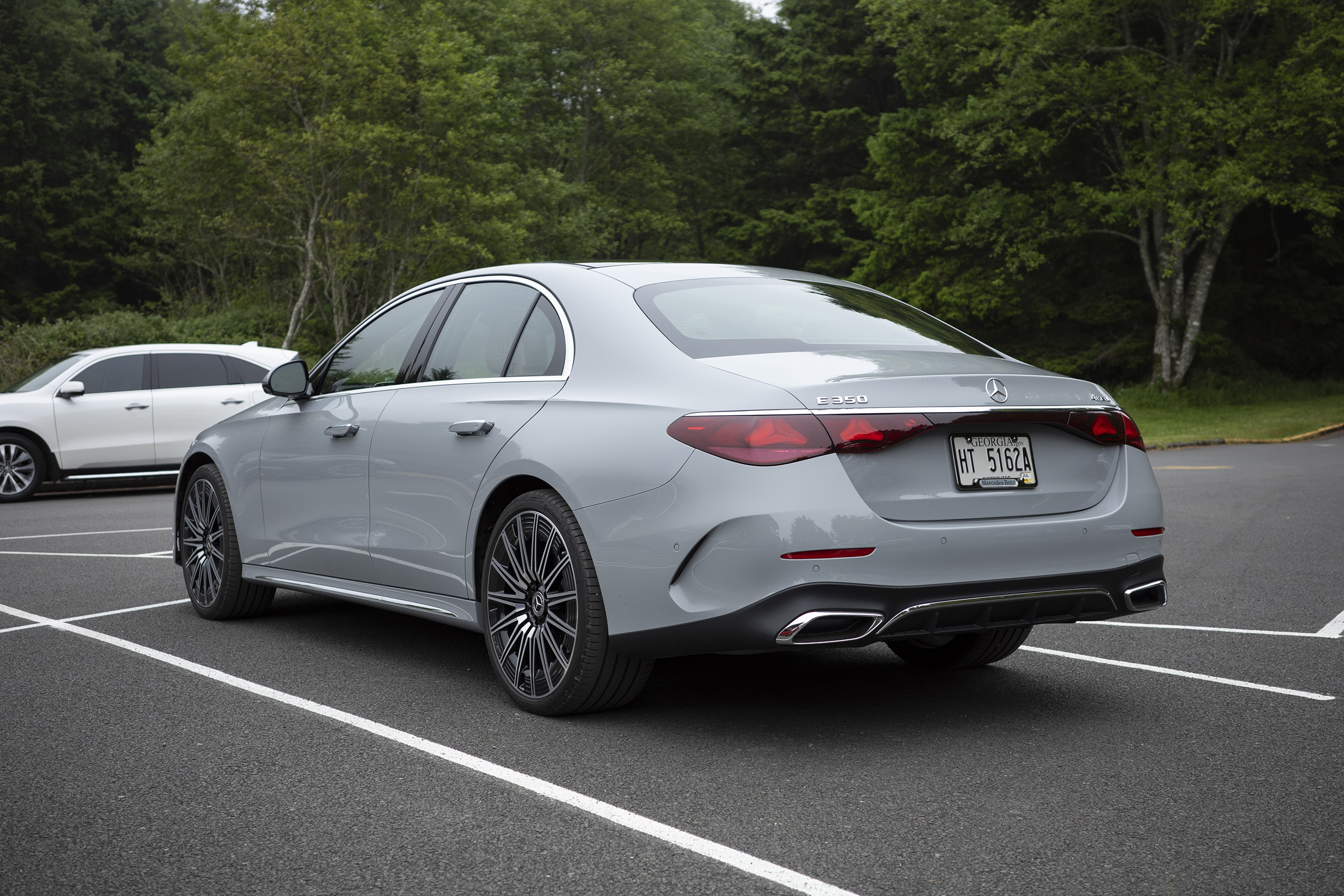 They look good, though, and the E-Class looks better with them. I have very little to say about the Merc’s exterior design, other than that I don’t actually mind the smoothed pebble look the brand’s gone for in recent years. It’s a tasteful foil to whatever in the not-so-fresh hell BMW’s been doing for far too long. The repeating Silver Arrows graphic in the LED tails is a nice touch worth a callout.