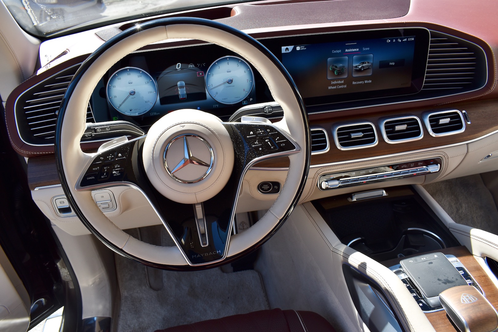 Such is the theme with the ride quality, which feels like levitation over all but the worst roads. The 23-inch wheels’ reduced sidewall made them harder to hide, though the Maybach never came close to being harsh. Two drive modes determine where the cushiness is focused: regular Comfort mode aims to make life comfortable for all passengers while a Maybach-branded mode prioritizes rear-seat passengers. For what it’s worth, my passengers and I agreed that Comfort mode was the comfier of the two.